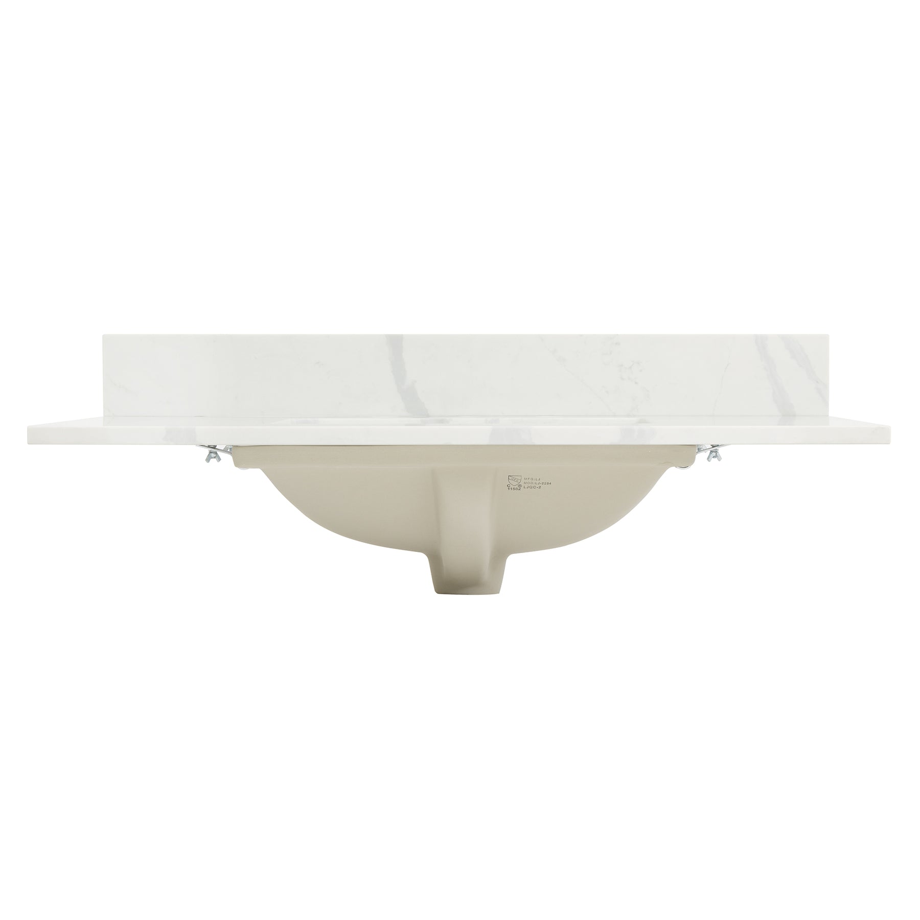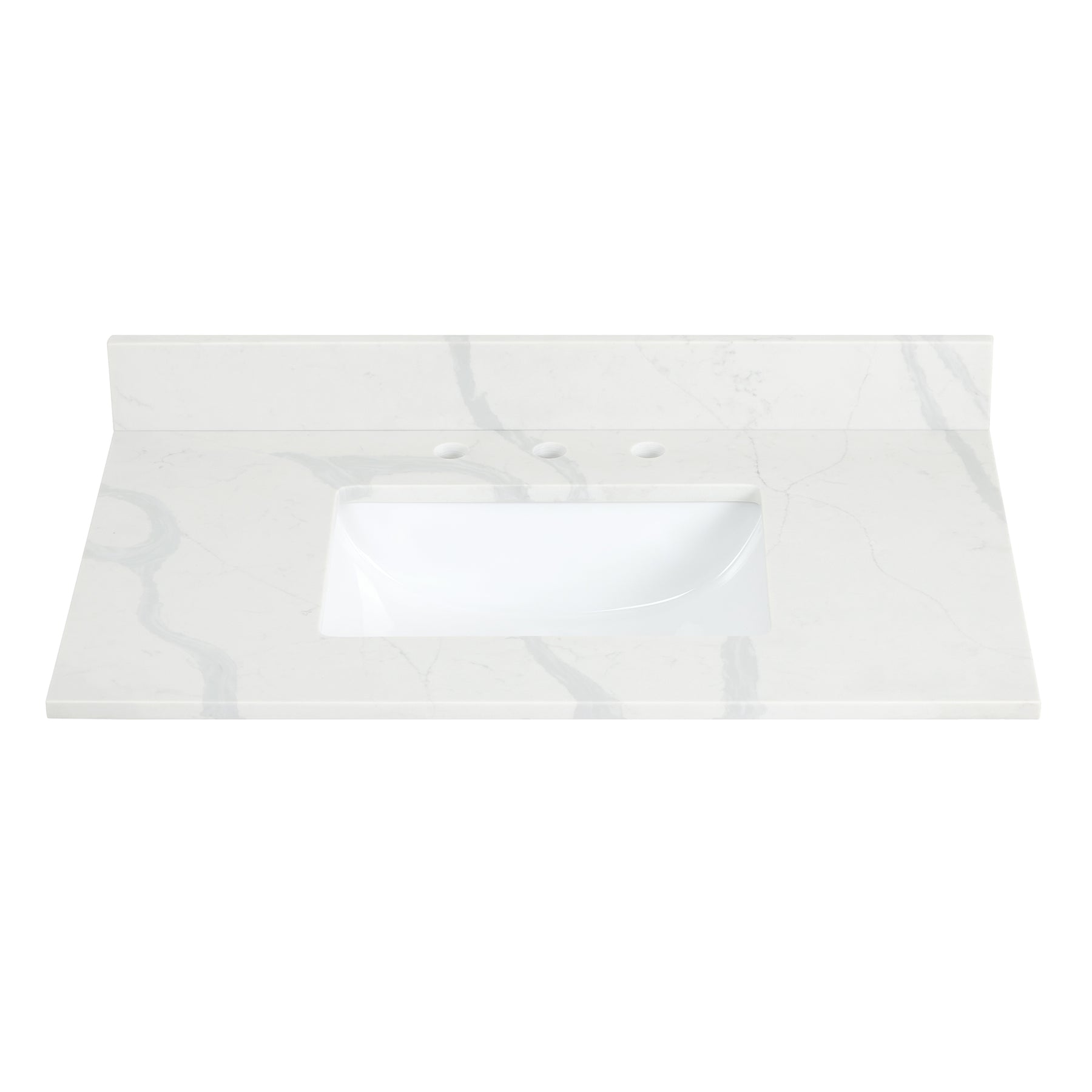 Color: Elegant Calacatta White finish adds a touch of sophistication to bathroom decor