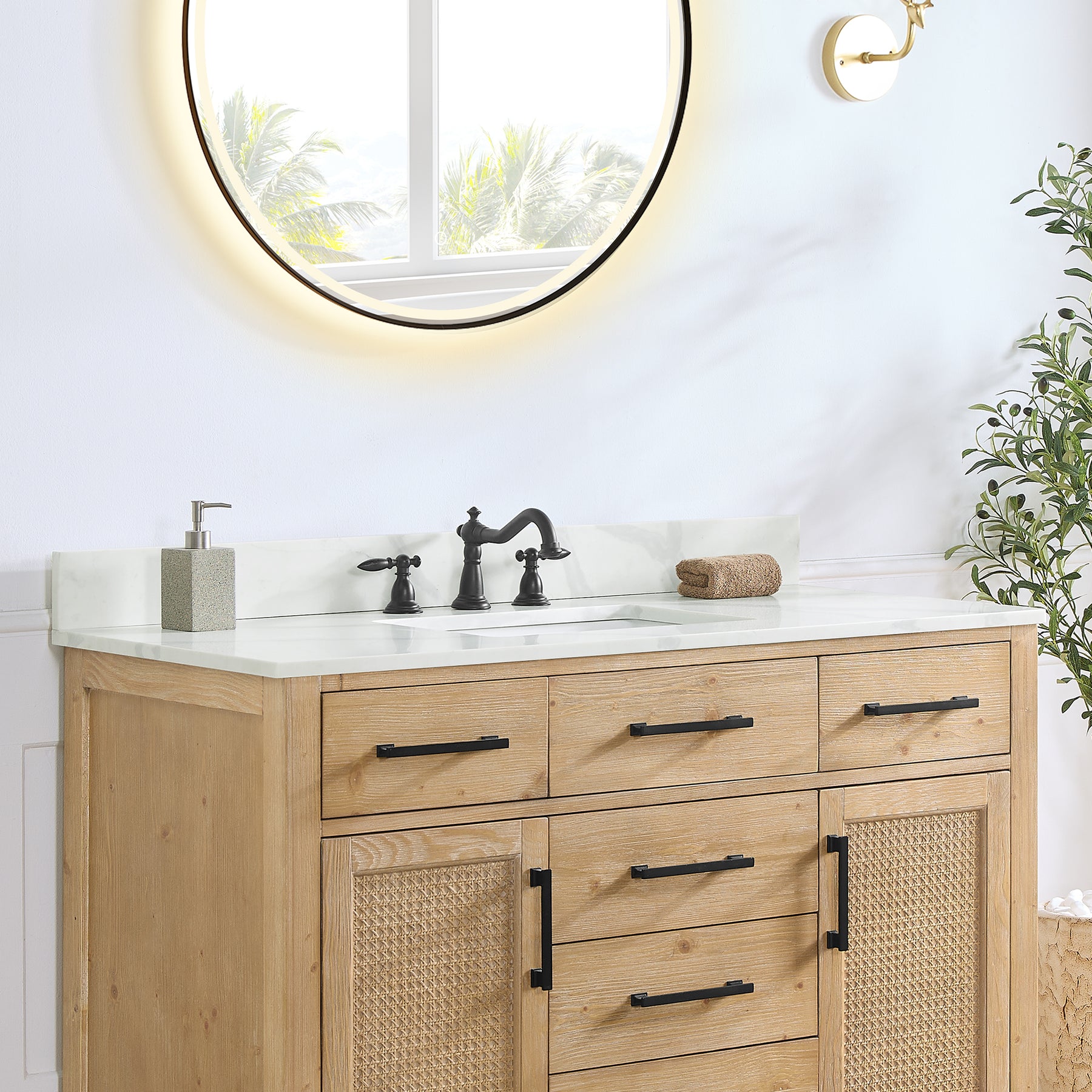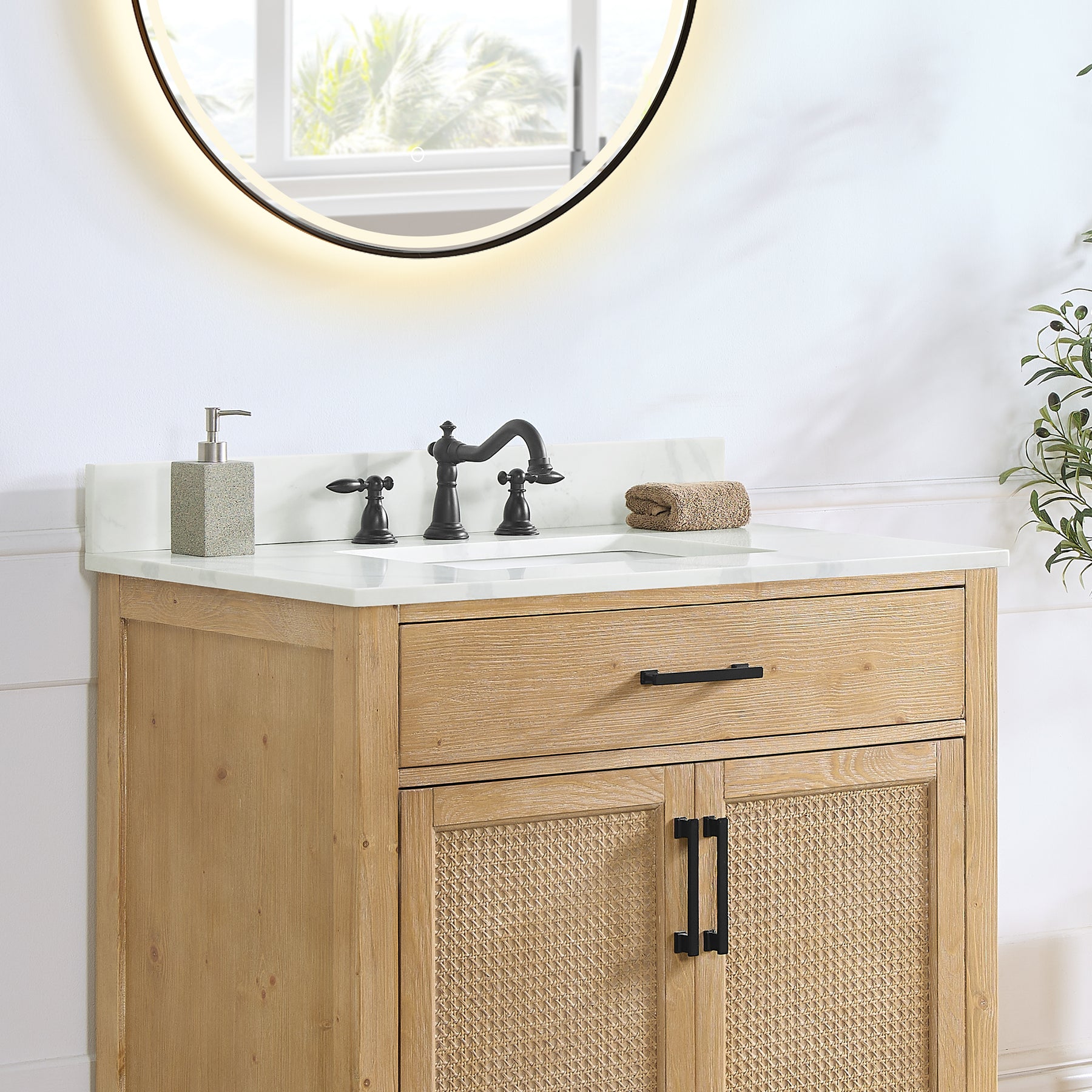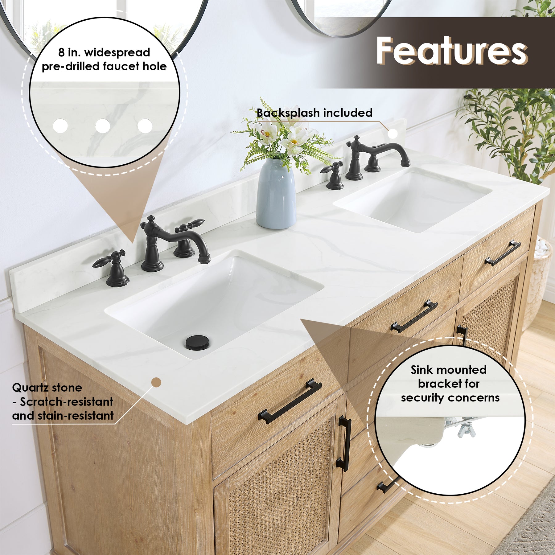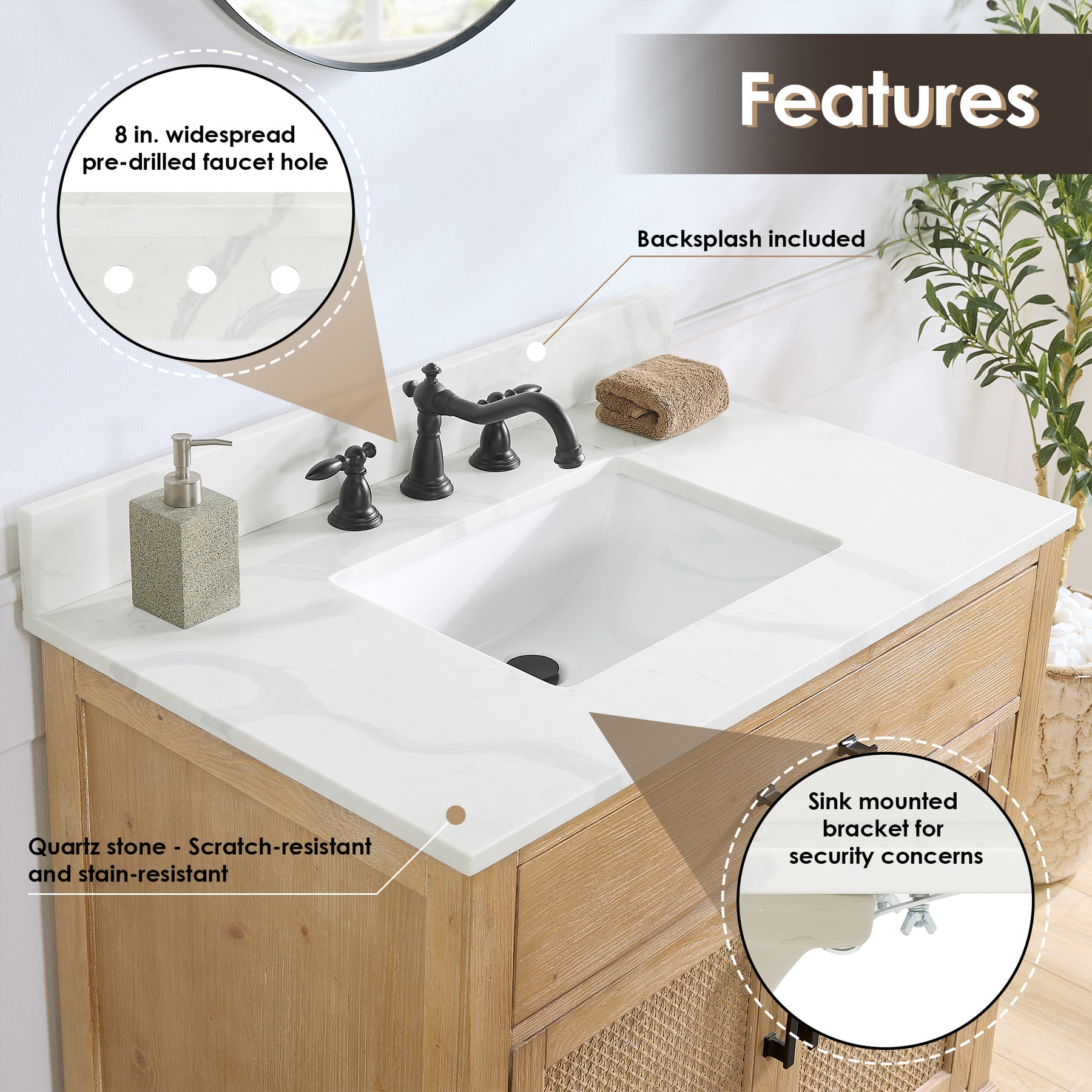 Renovate your bathroom with our elegant bathroom vanity top? Our Arbios quartz countertop marries the timeless allure of Calacatta marble design with all the unbeatable benefits of quartz. Featuring an exclusive unified gray veining that graces both the countertop and backsplash, it adds a contemporary touch and a harmonious visual flow in your space. Enjoy the beauty of marble with the strength of quartz, as the Arbios resists stains and scratches. This surface confidently enhances the enduring beauty and functionality of your space, making it an ideal fit for those who seek both.