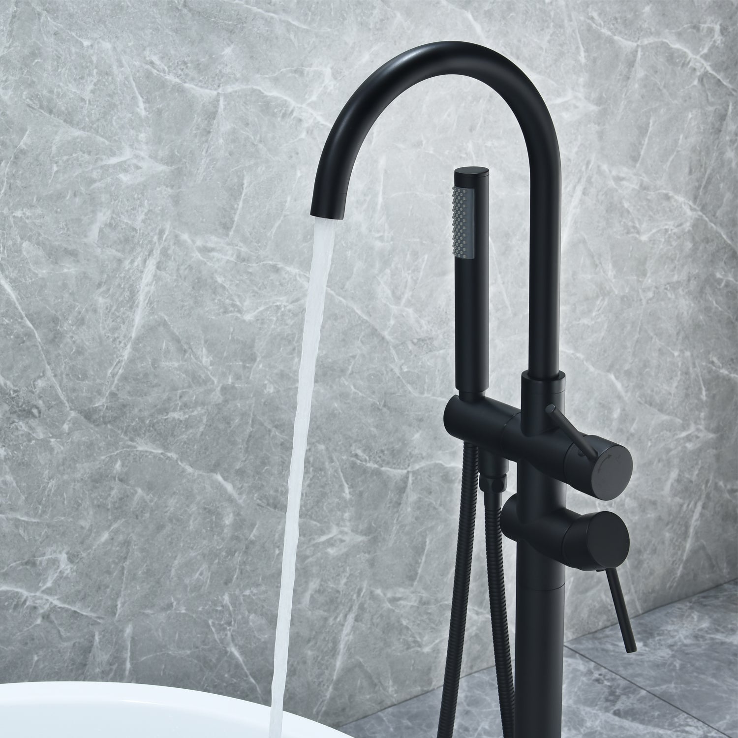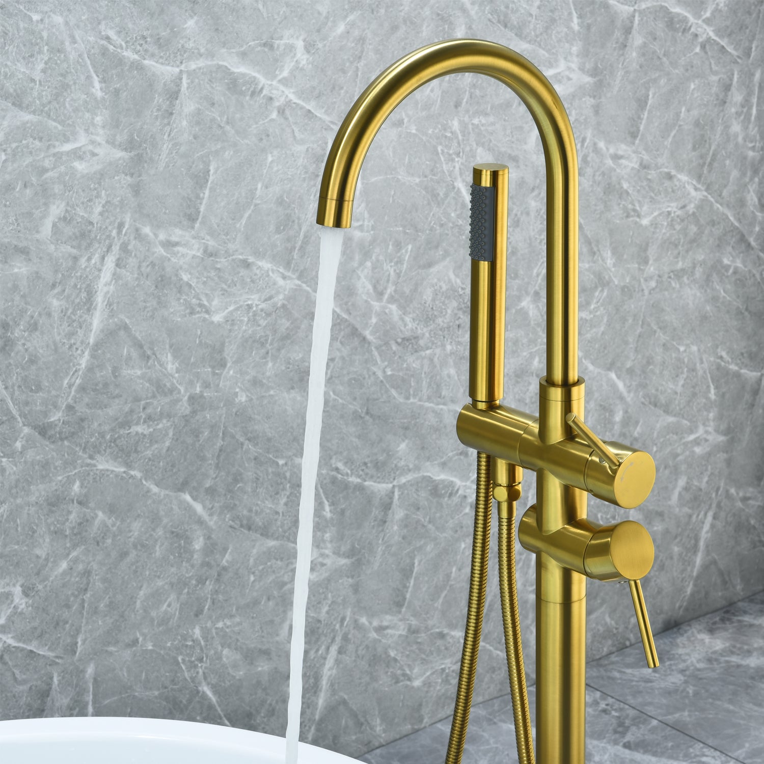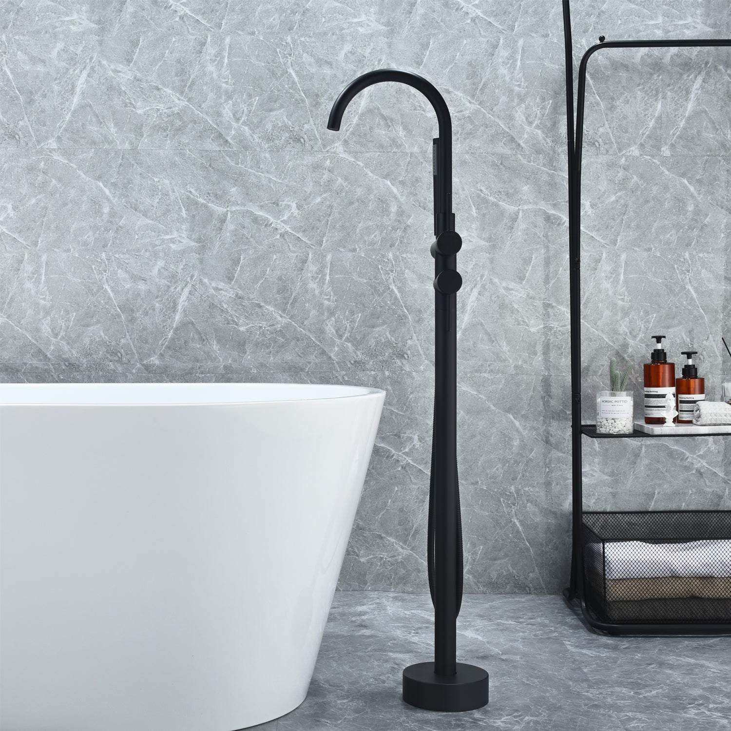 Featuring a graceful gooseneck spout, our Assens Freestanding Bathtub Faucet makes a stunning addition to a classic or contemporary bathroom. Its sleek, handheld shower wand is attached to a stainless-steel hose, giving you the convenience and luxury of directable water flow. Durable, double-lever handles allow for smooth and precise temperature adjustment. Indulge in a spa-like bathing experience in the comfort of home.