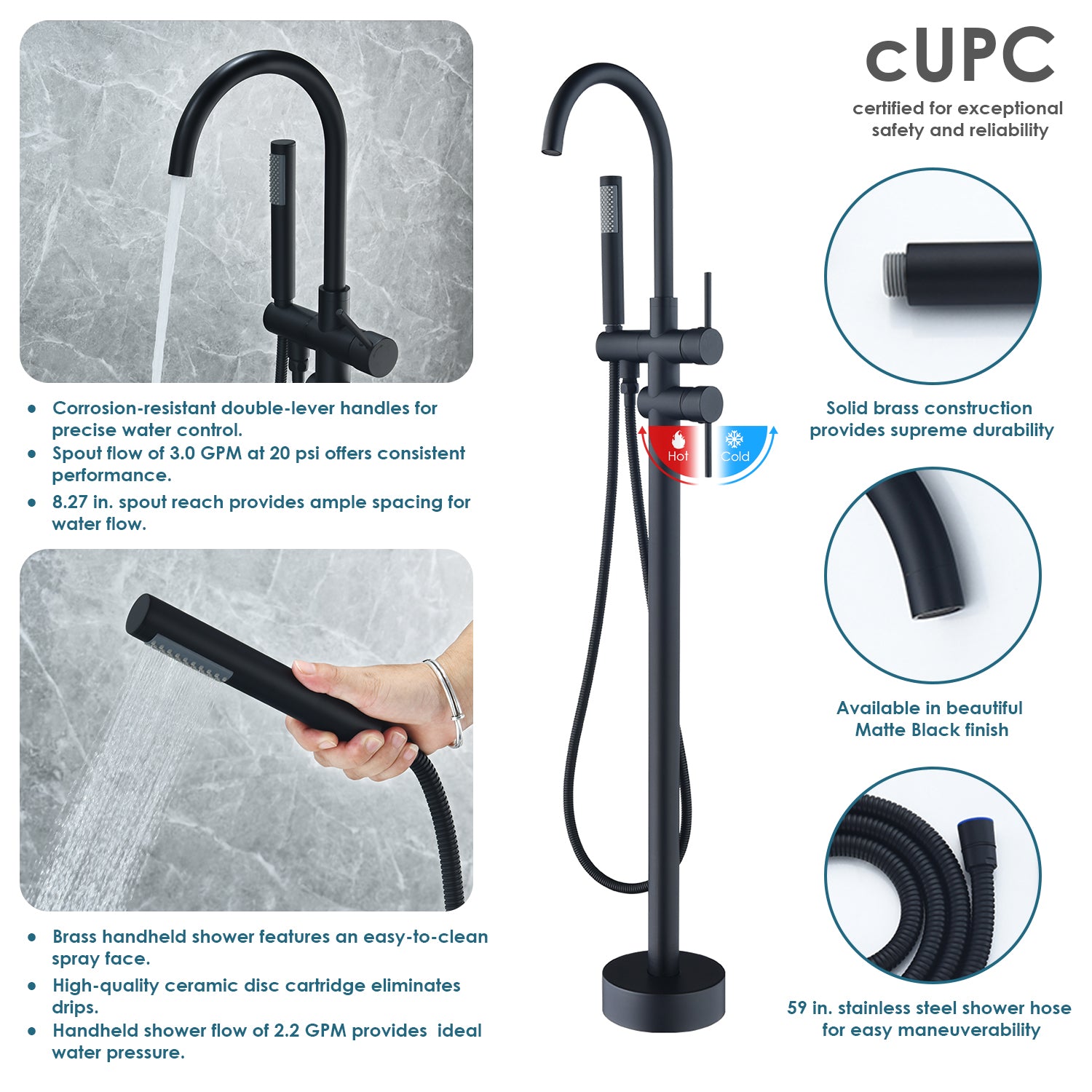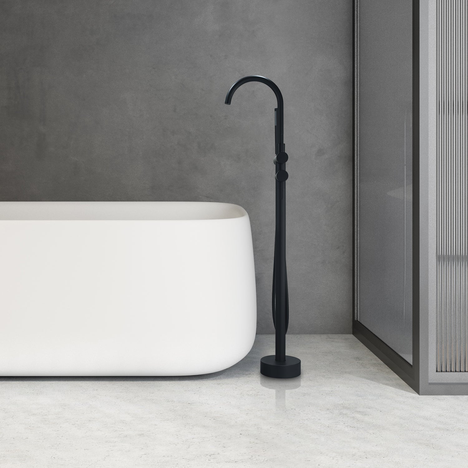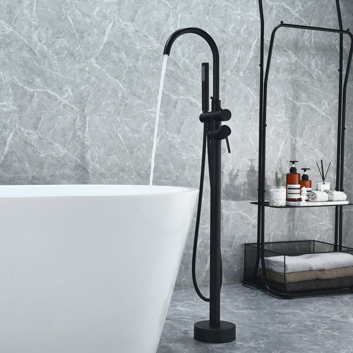 Featuring a graceful gooseneck spout, our Assens Freestanding Bathtub Faucet makes a stunning addition to a classic or contemporary bathroom. Its sleek, handheld shower wand is attached to a stainless-steel hose, giving you the convenience and luxury of directable water flow. Durable, double-lever handles allow for smooth and precise temperature adjustment. Indulge in a spa-like bathing experience in the comfort of home.