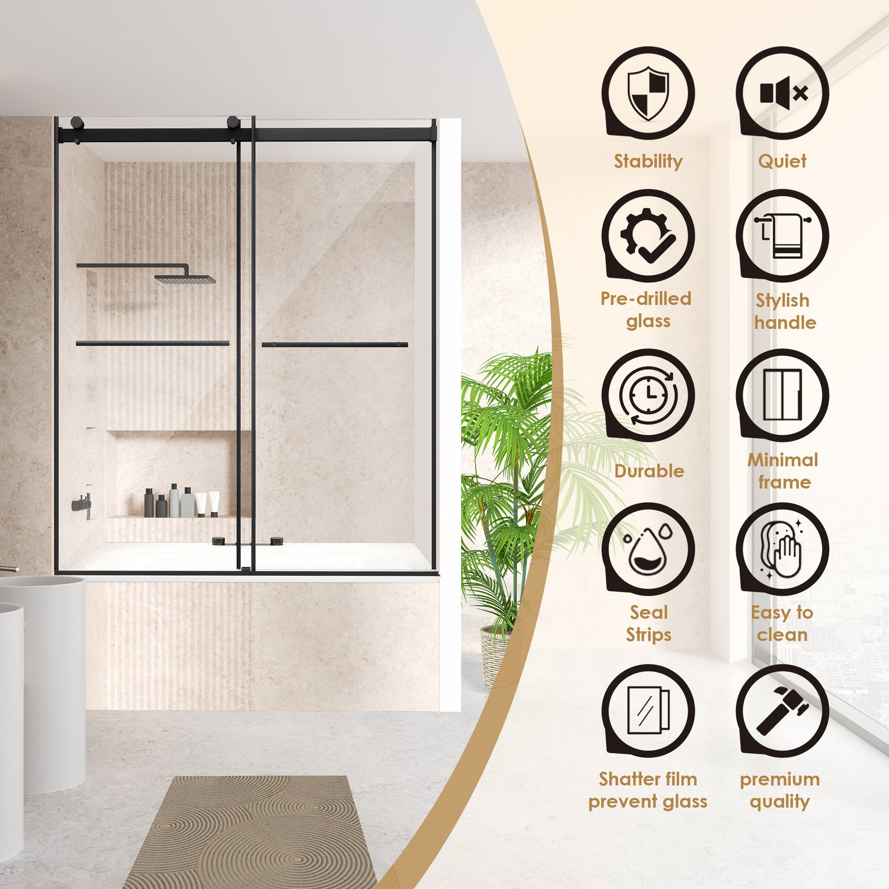 Looking to transform your bathroom with the perfect fusion of industrial chic and practical functionality? The Belizzi Tub Door was crafted with both style and durability in mind. This sleek unit features an eye-catching aluminum rail paired with crystal-clear tempered glass to provide lasting elegance and strength. Its crisp, Matte Black finish elevates any bathroom aesthetic, while the ingenious removable bottom guide simplifies everyday cleaning.