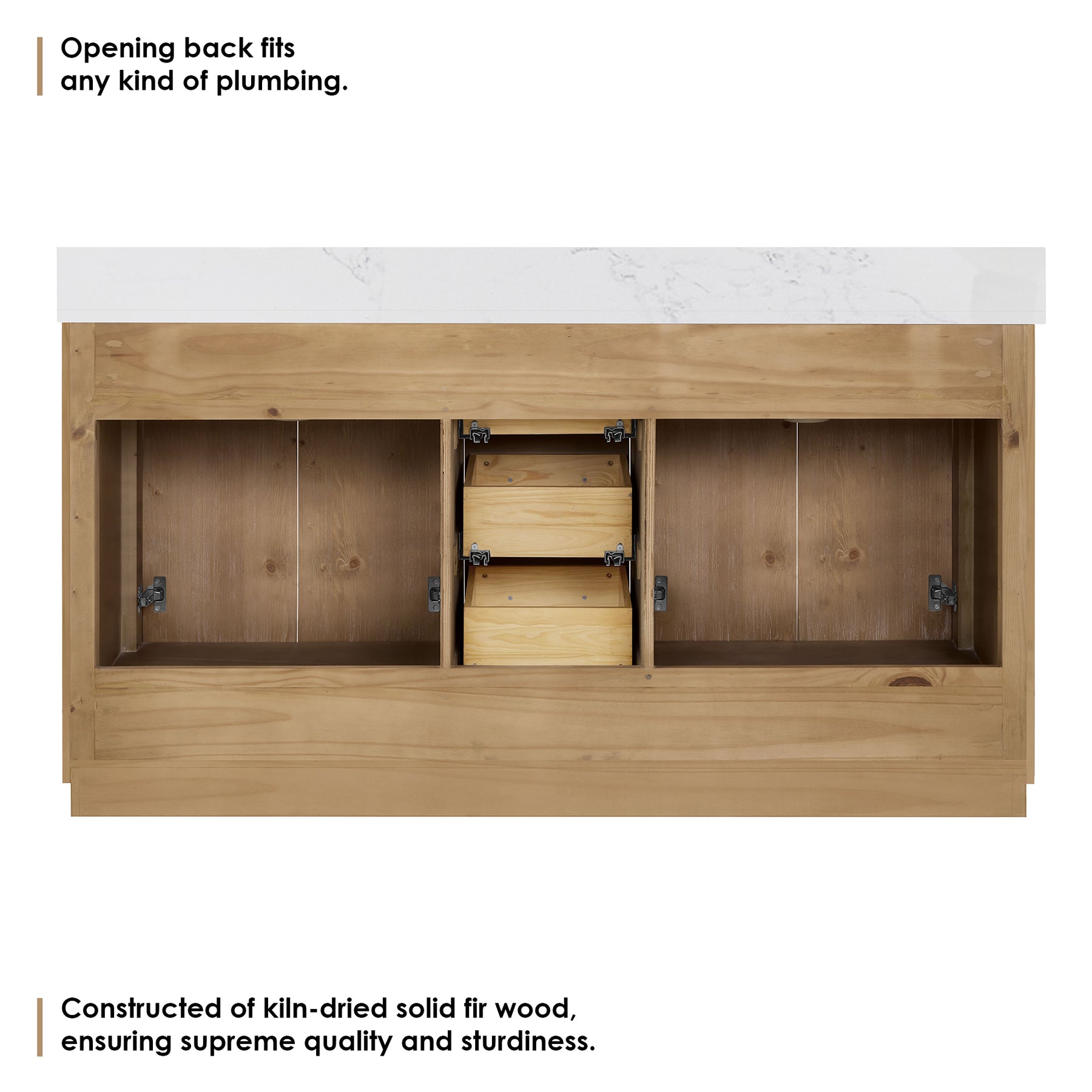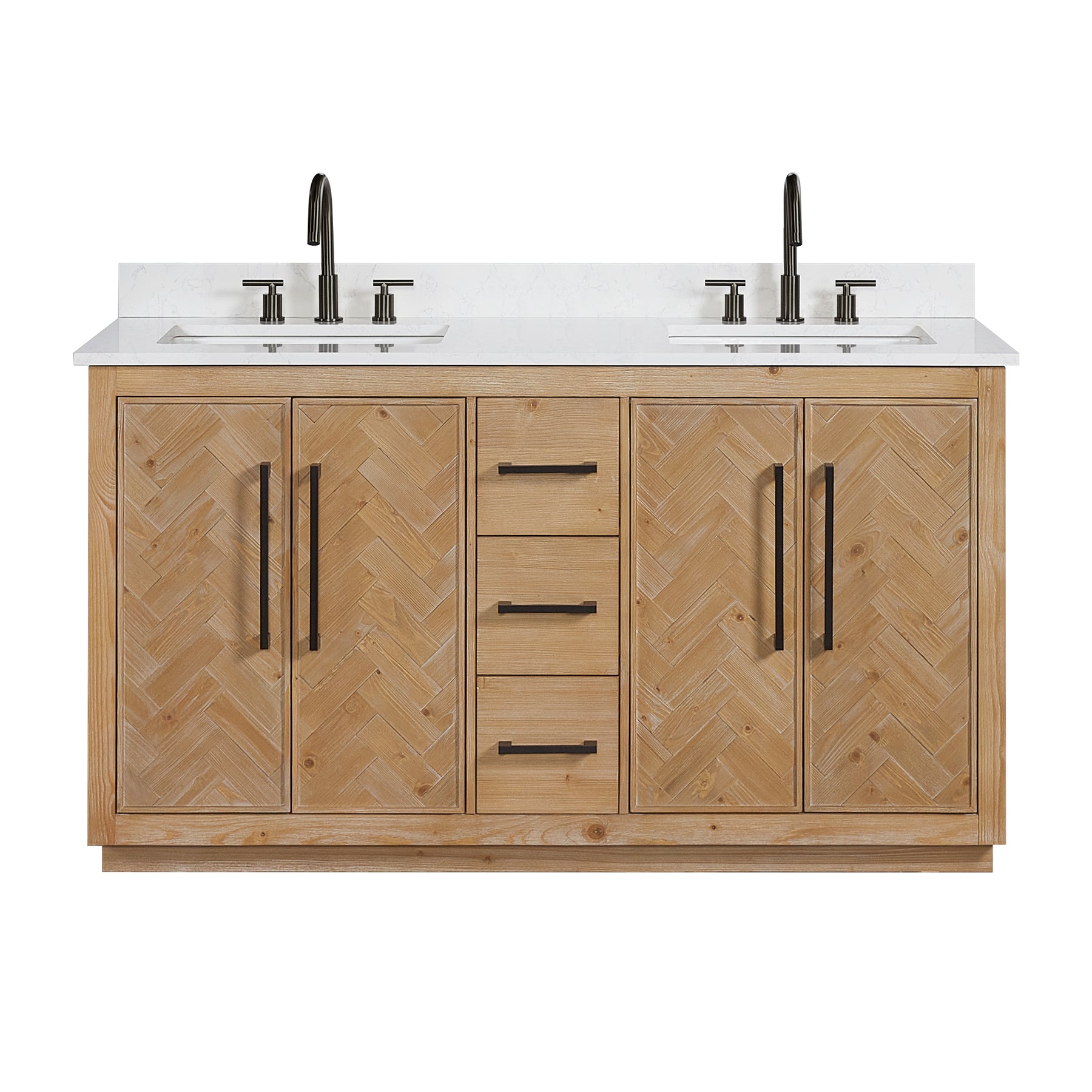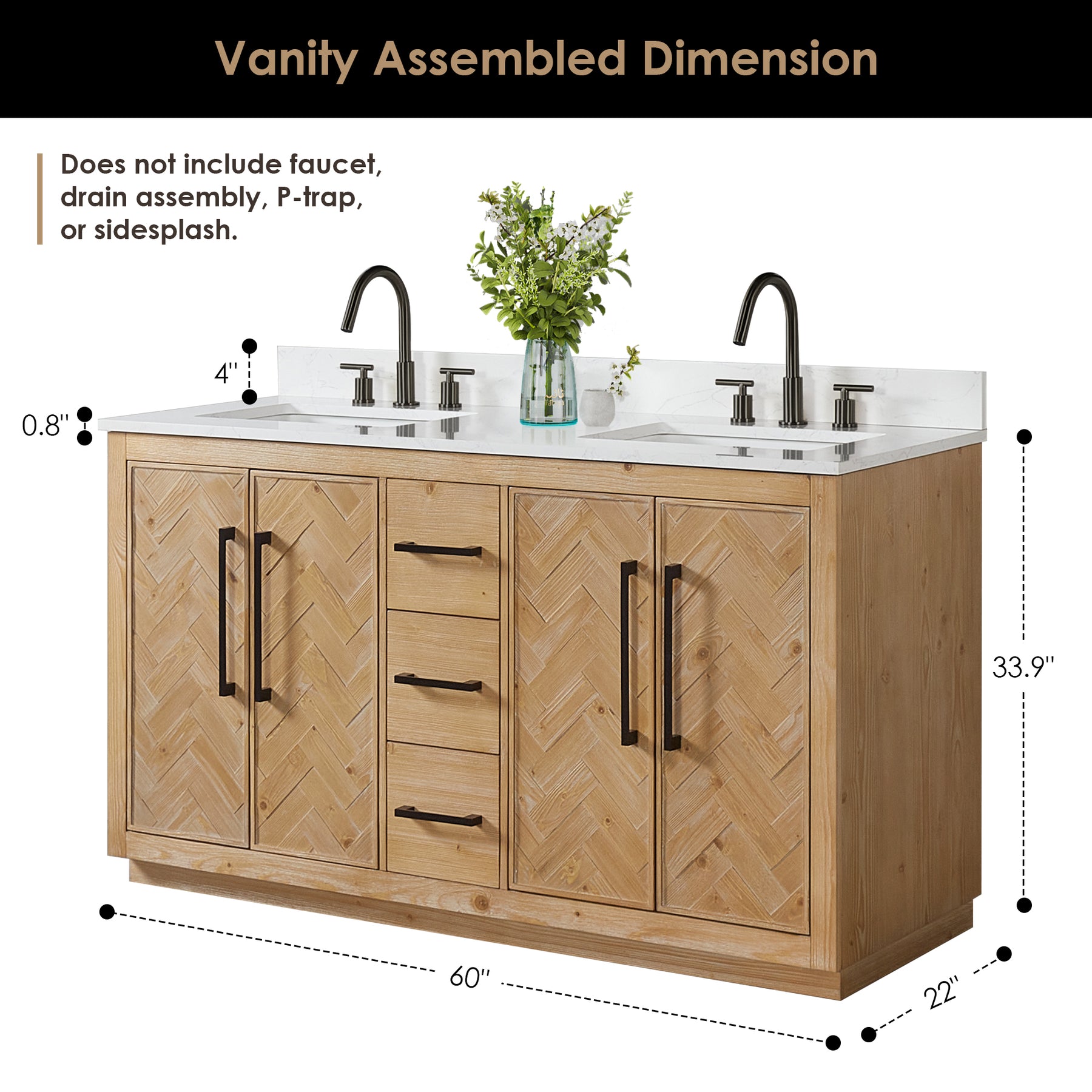 Looking for a light, bright, and natural sense of your bathroom? Our Bellavia vanity features with weathered fir that showcases a unique and rustic charm. Finely handcrafted jointing door front with a chic chevron pattern creates a modern and sophisticated aesthetic. By creating a recessed plinth base at the bottom, enhance the visual appeal and sophistication of space. With a beautifully marbled engineered stone countertop, our vanity adds class, distinction, and functionality to any guest or master bath in your home.