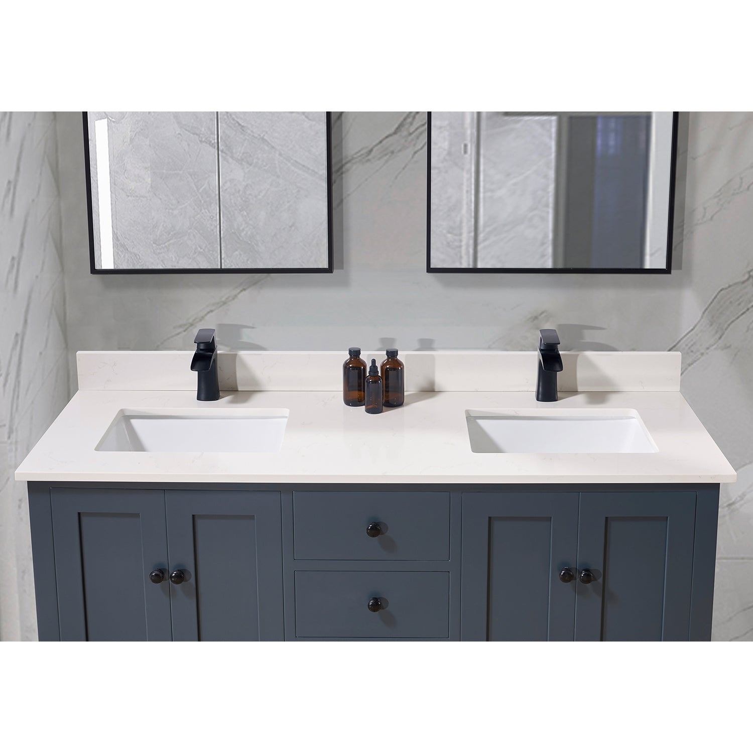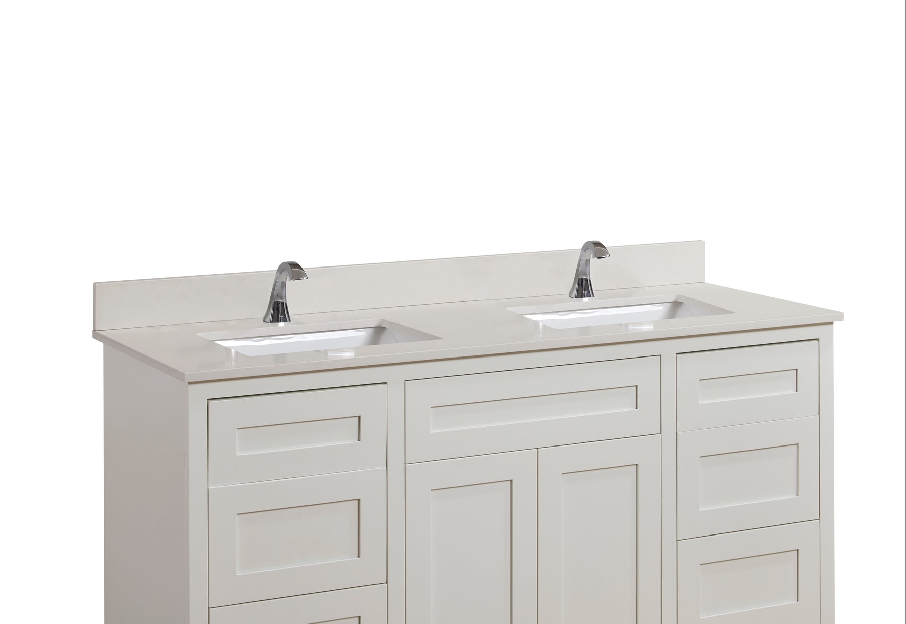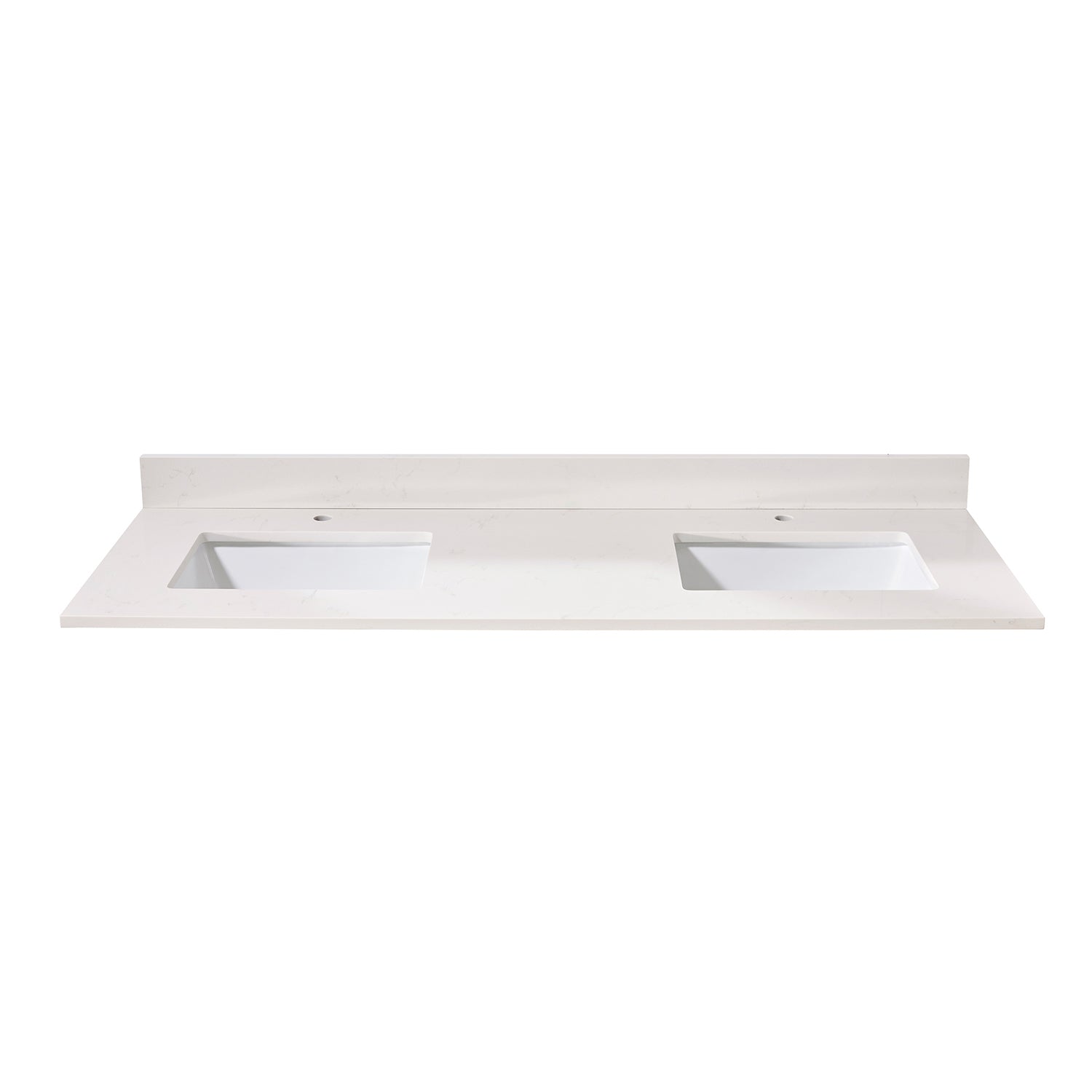 Stunning, refined engineered stone vanity top with undermount sink. Easy to install and perfect for bathroom remodel. It's simple beauty brightens and compliments any bathroom decor.