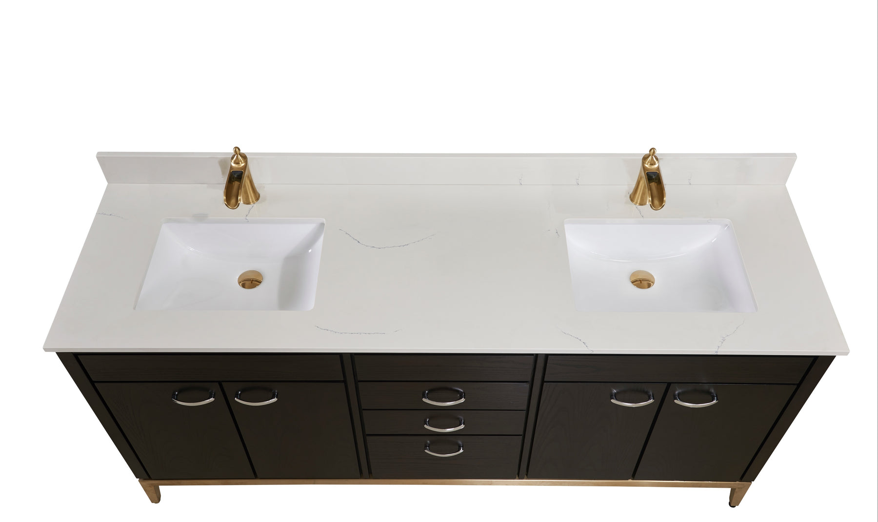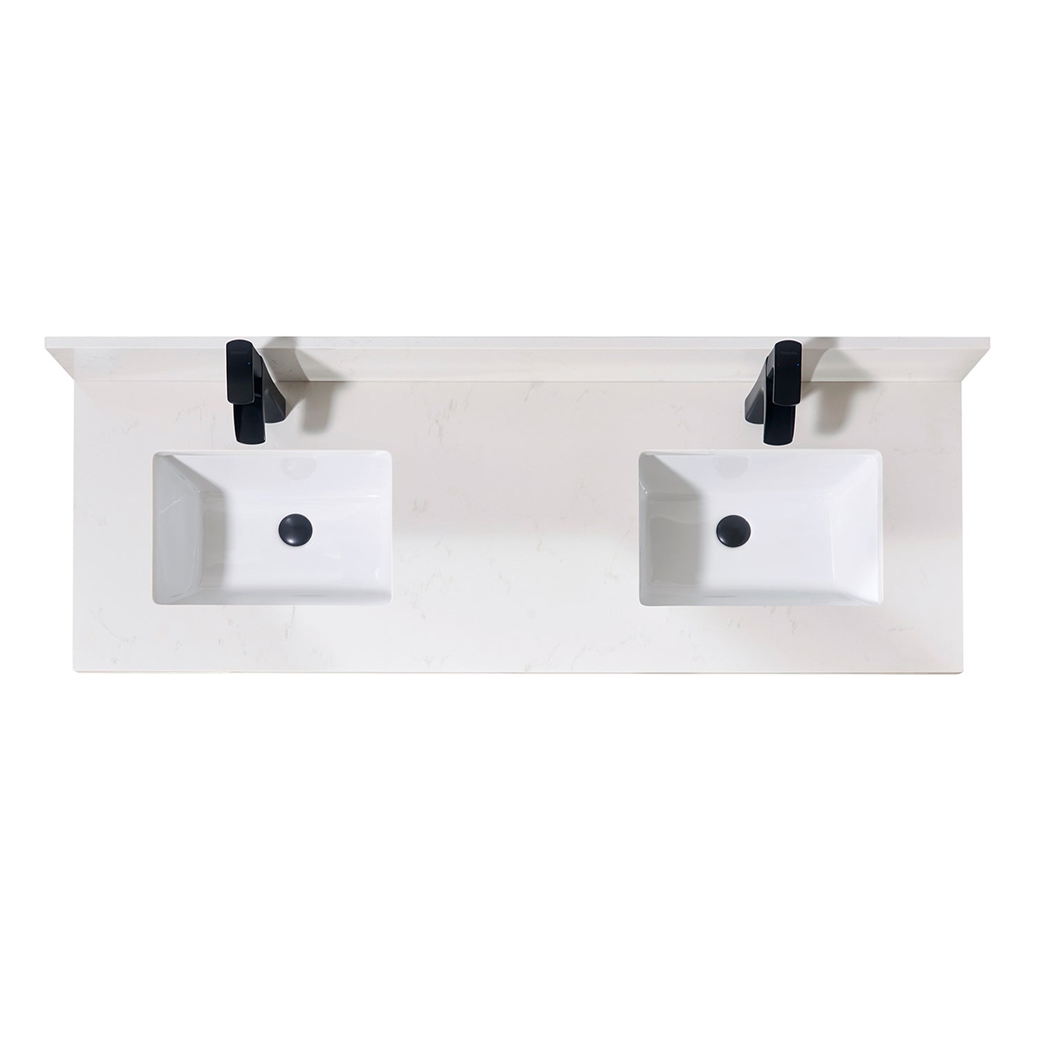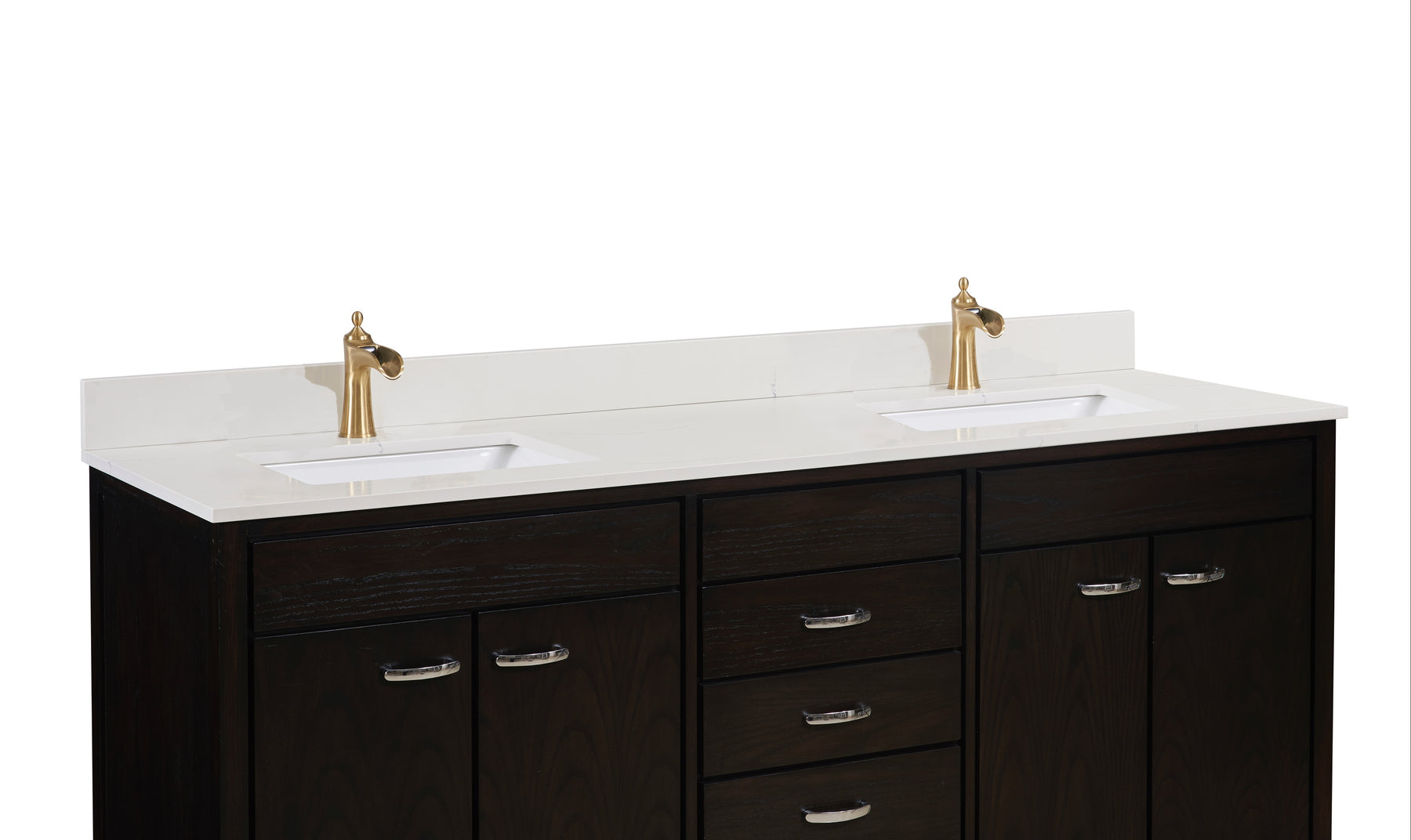 Stunning, refined engineered stone vanity top with undermount sink. Easy to install and perfect for bathroom remodel. It's simple beauty brightens and compliments any bathroom decor.