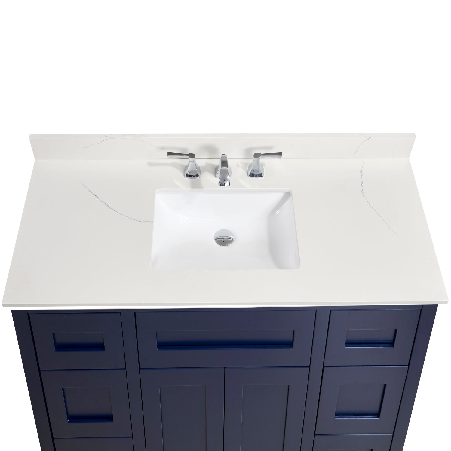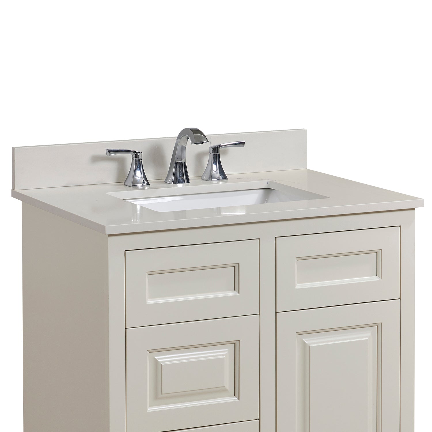 Stunning, refined engineered stone vanity top with undermount sink. Easy to install and perfect for bathroom remodel. It's simple beauty brightens and compliments any bathroom decor.