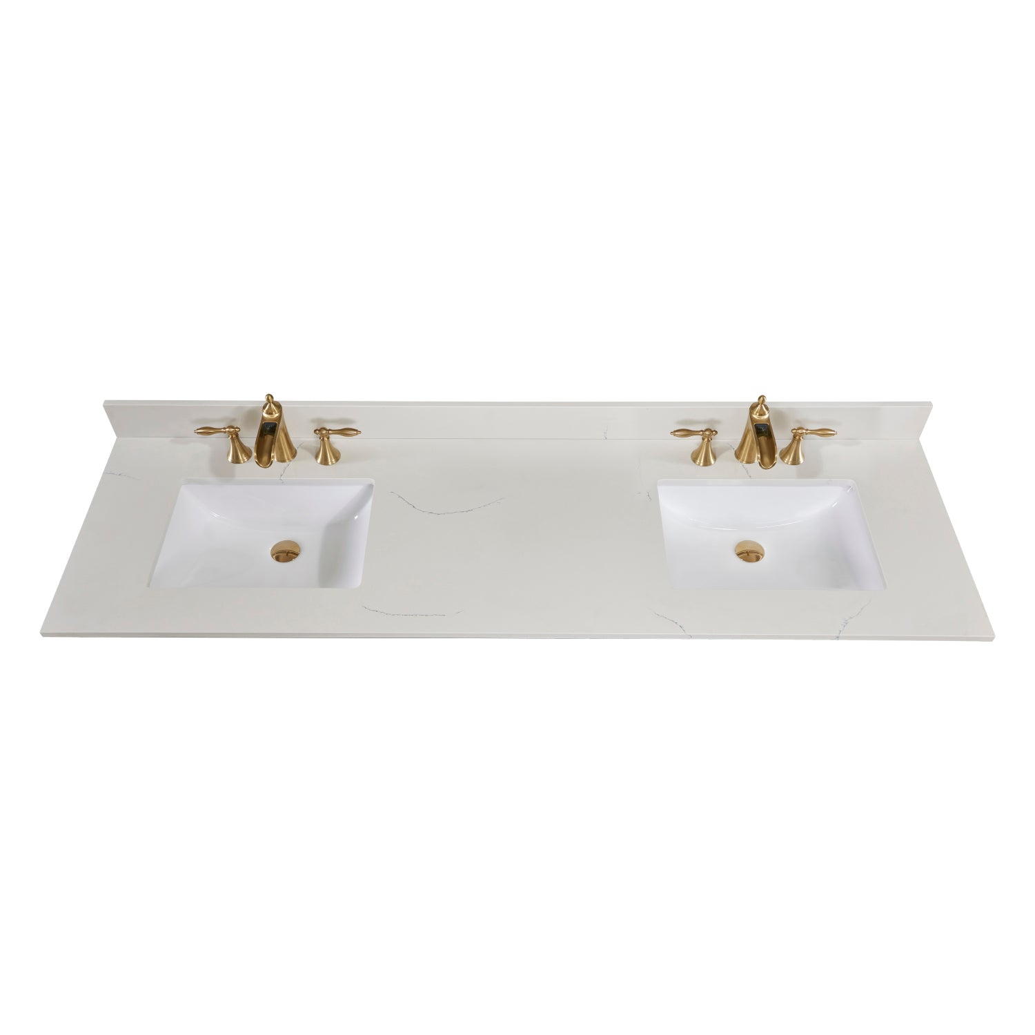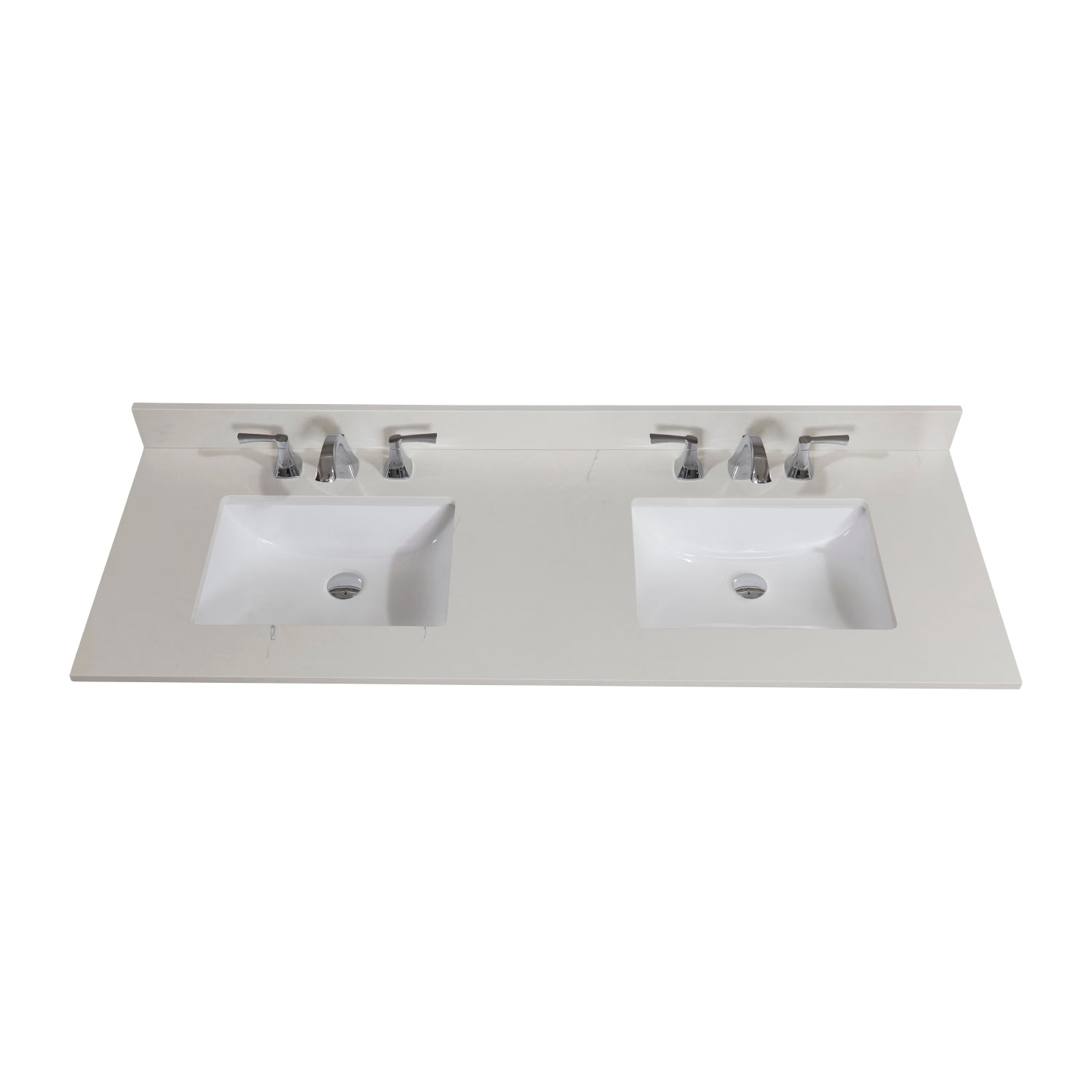 Stunning, refined engineered stone vanity top with undermount sink. Easy to install and perfect for bathroom remodel. It's simple beauty brightens and compliments any bathroom decor.