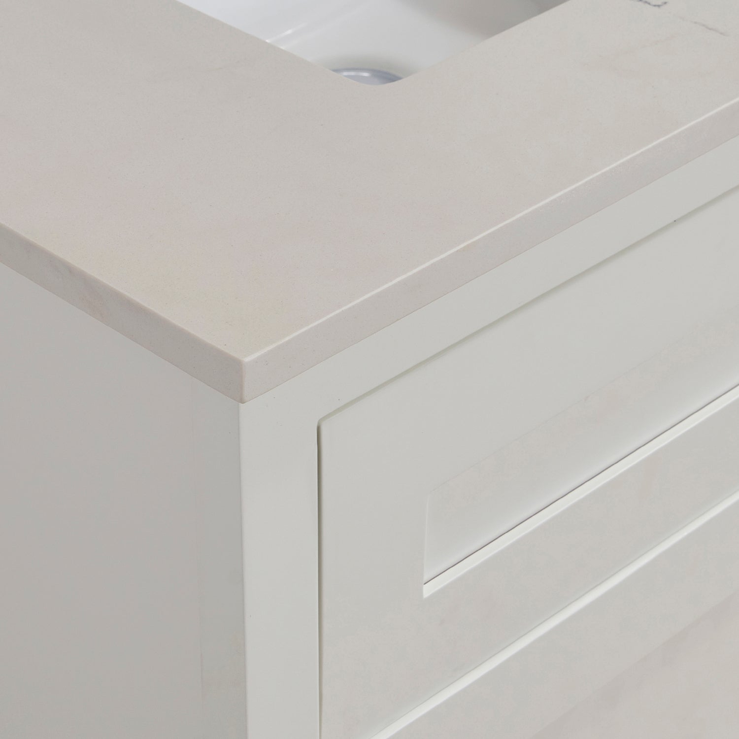 Belluno Composite Stone Vanity Top in Milano White with White Sink - Pre-drilled for an 8 in. widespread faucet
