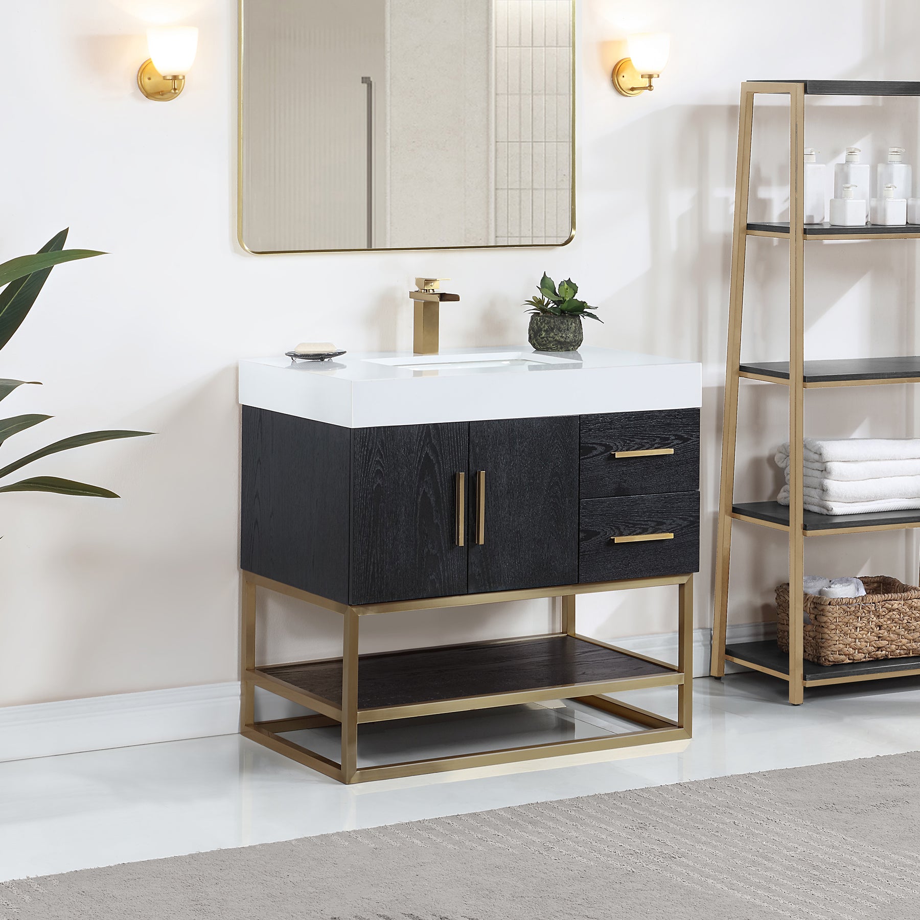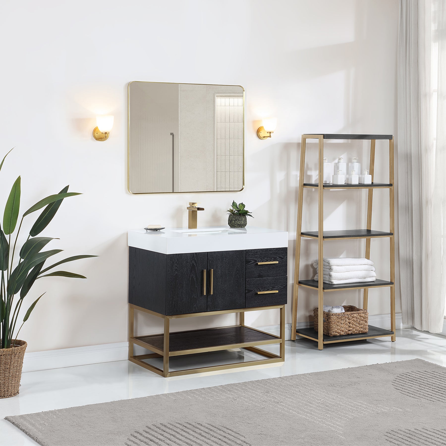 Mirror: Includes single,matching framed aluminum mirror in stylish Matte Black or Brushed Gold finish.