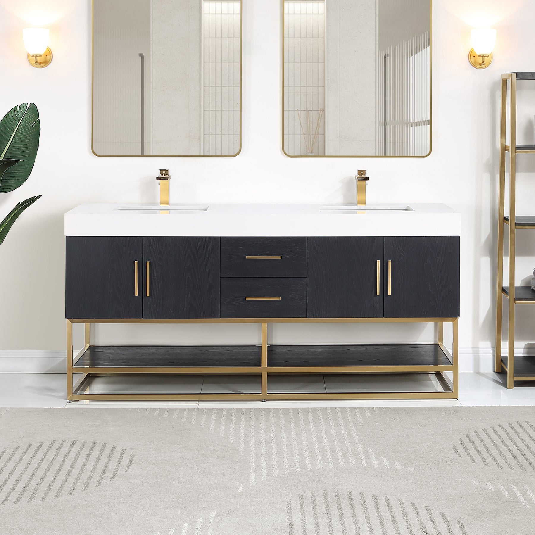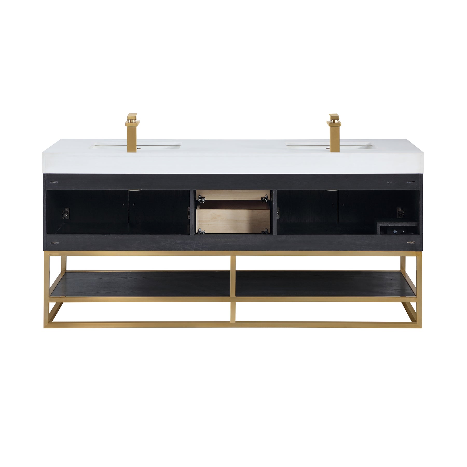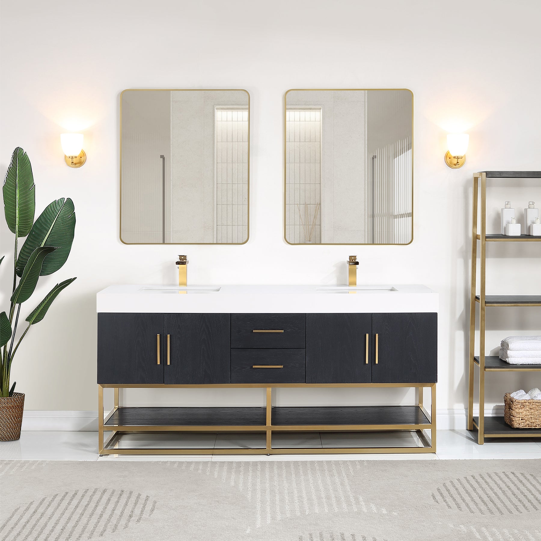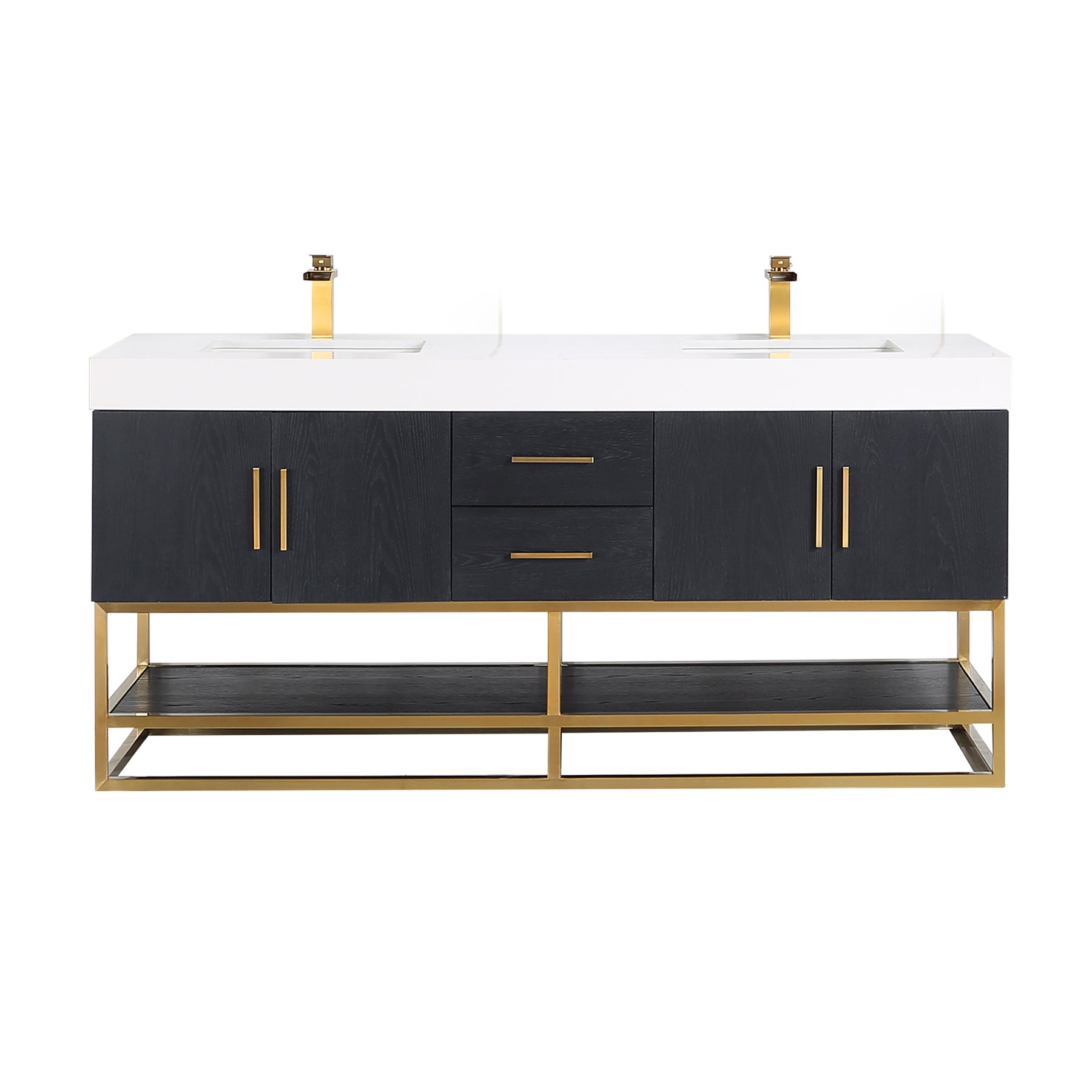 Ready to redefine the look of your guest or master bath? Our Bianco vanity series lends a distinctive contemporary edge to any space,blending the warmth and texture of natural wood with the clean,crisp aesthetic of solid stone. High style doesn’t mean compromising on storage; the Bianco offers ample space for all your accoutrements—with doors and drawers that glide gracefully open and shut. An unconcealed lower shelf provides the perfect spot to customize your vanity with fluffy rolled towels and decorative items.