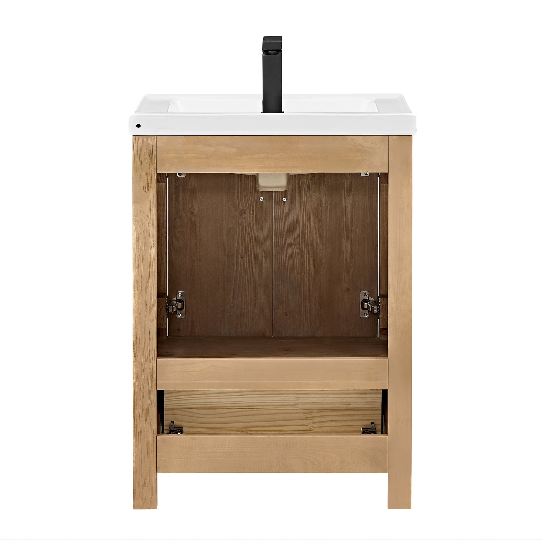 Ceramic Basin: Countertop features a curved edge barrier that prevents water from spilling over, keeping the surface clean.