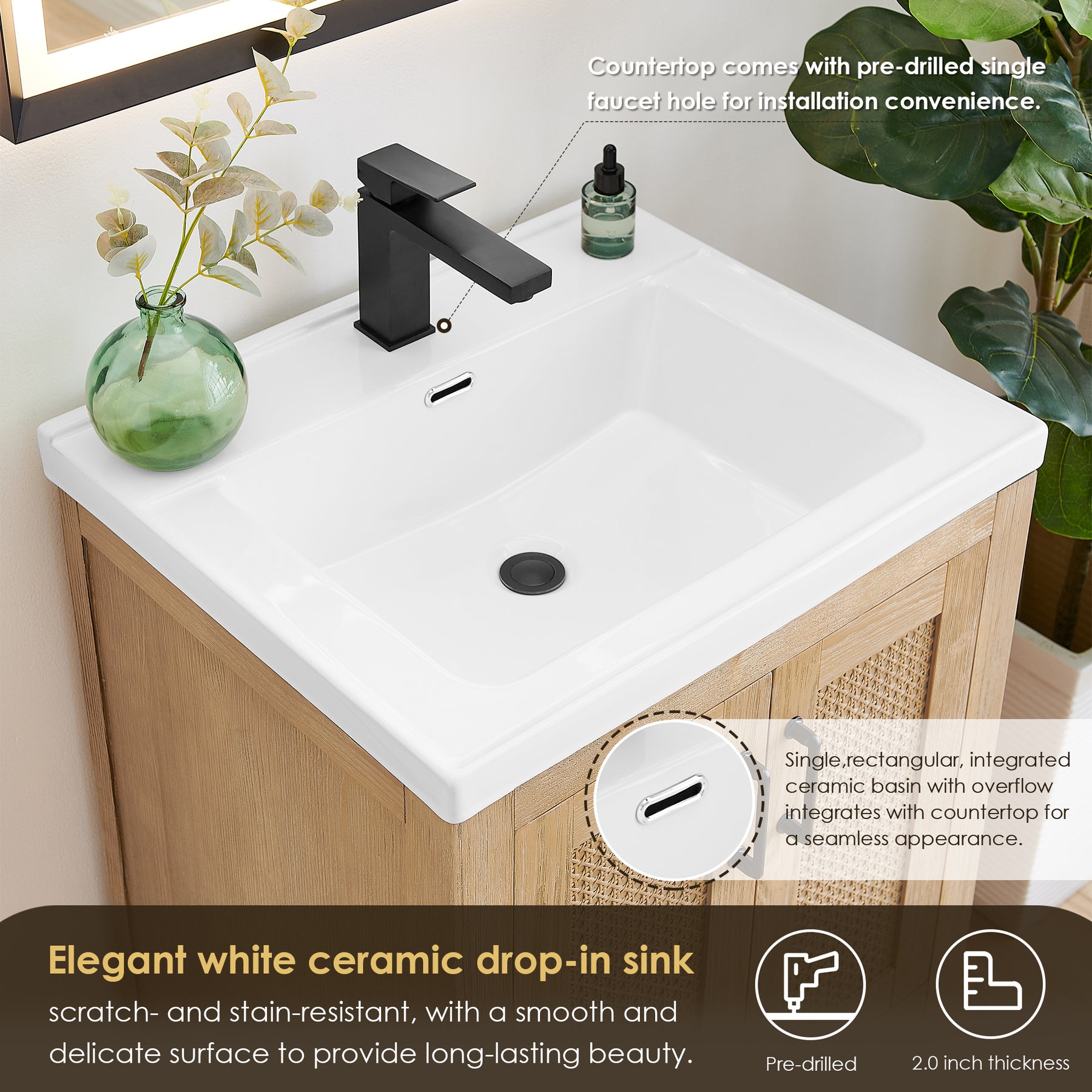Countertop: Elegant white ceramic countertop, scratch- and stain-resistant, with a smooth and delicate surface to provide long-lasting beauty.