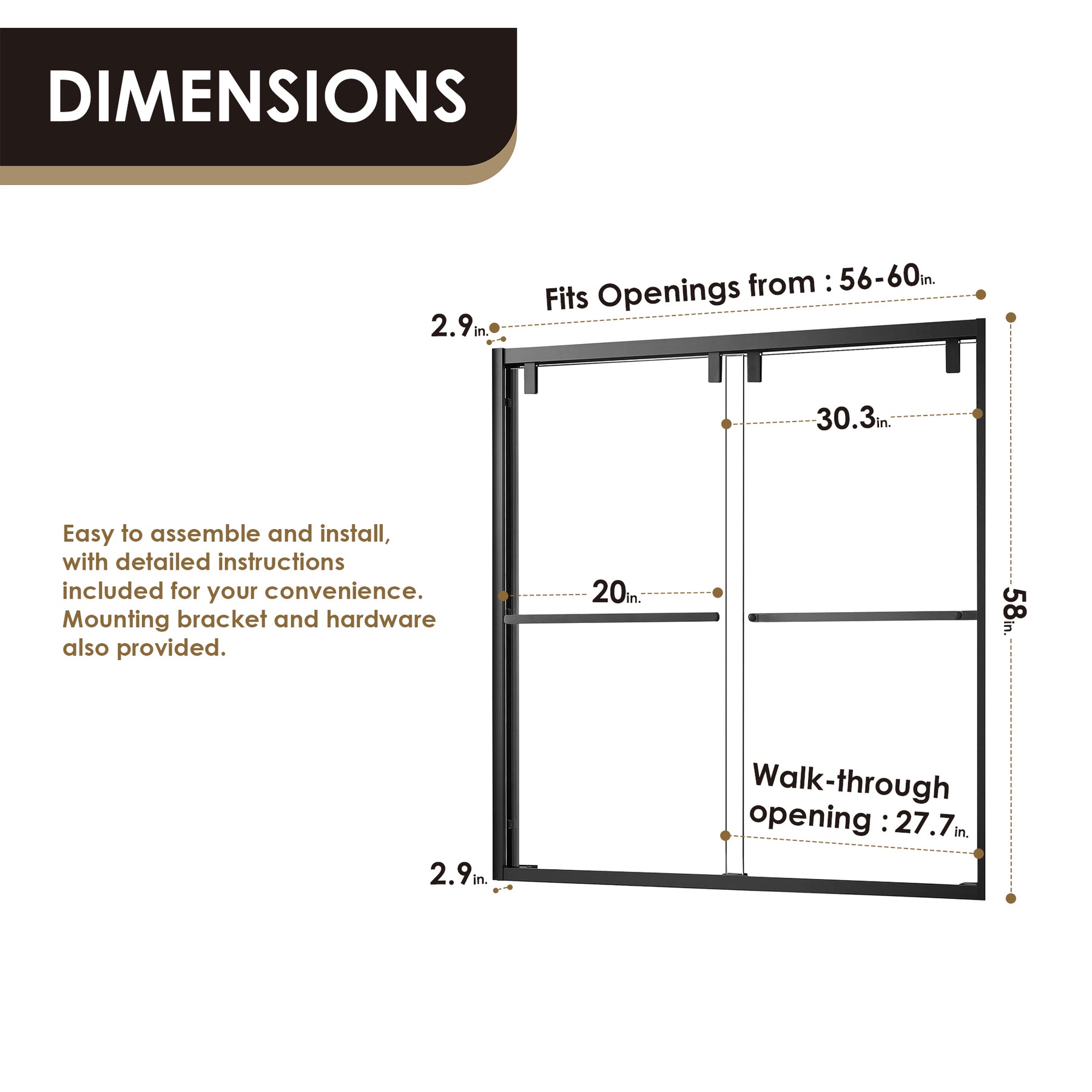 Caspar 60" W x 58" H By Pass Semi Frameless Tub Door