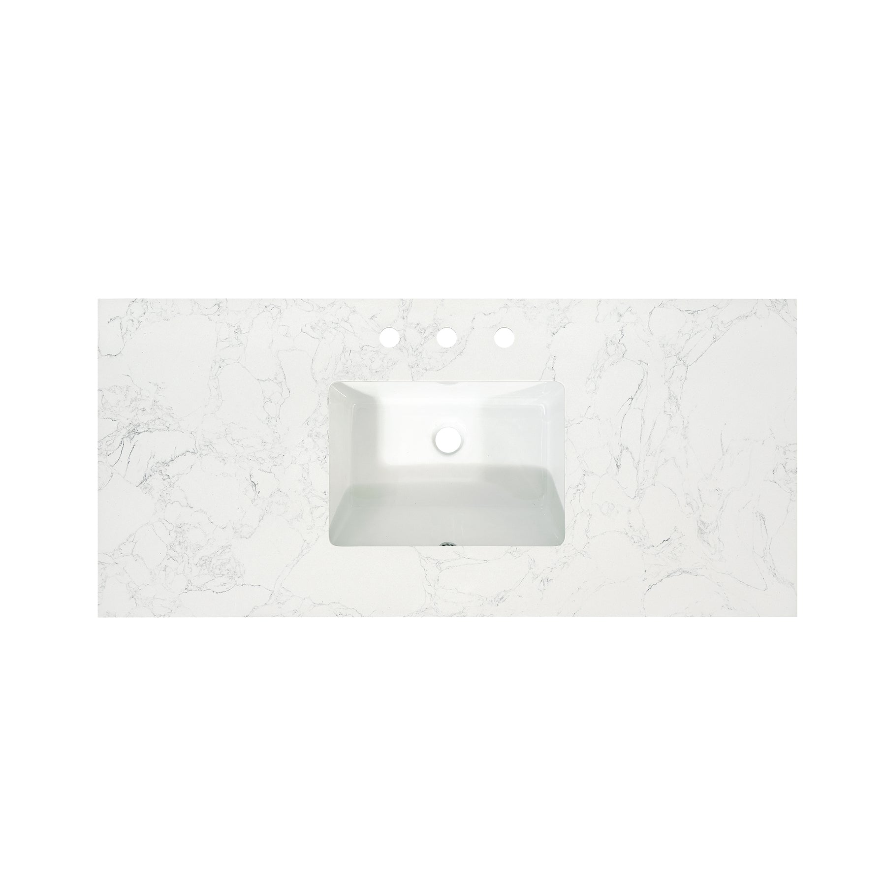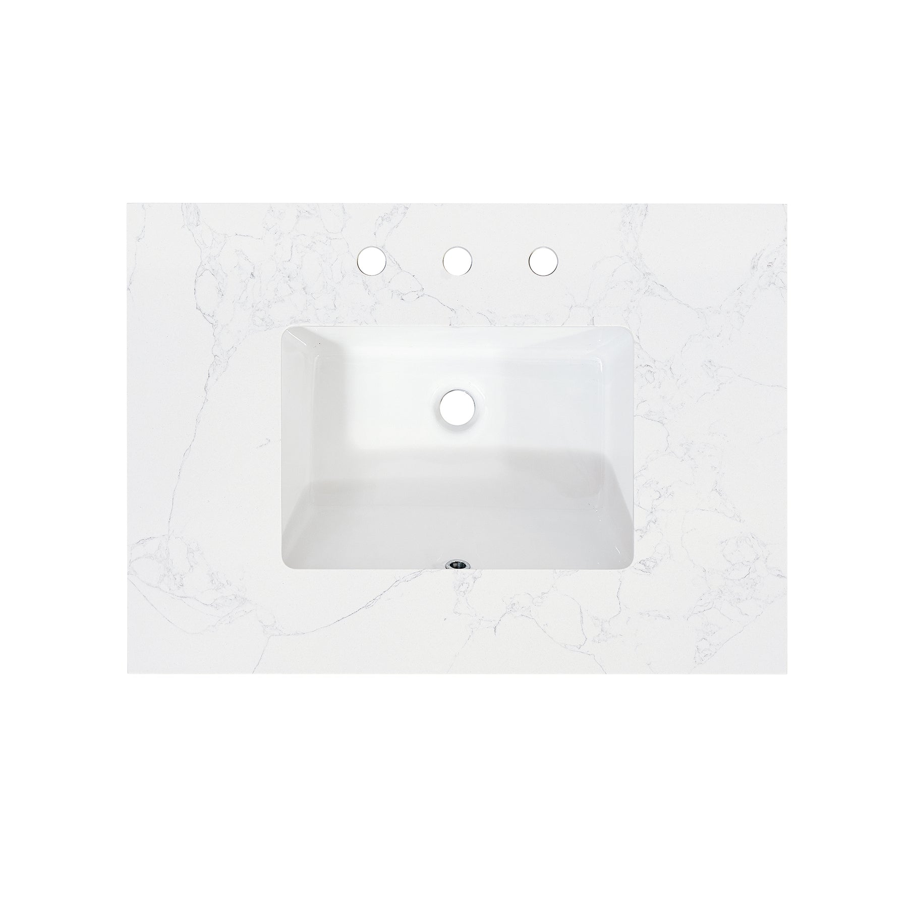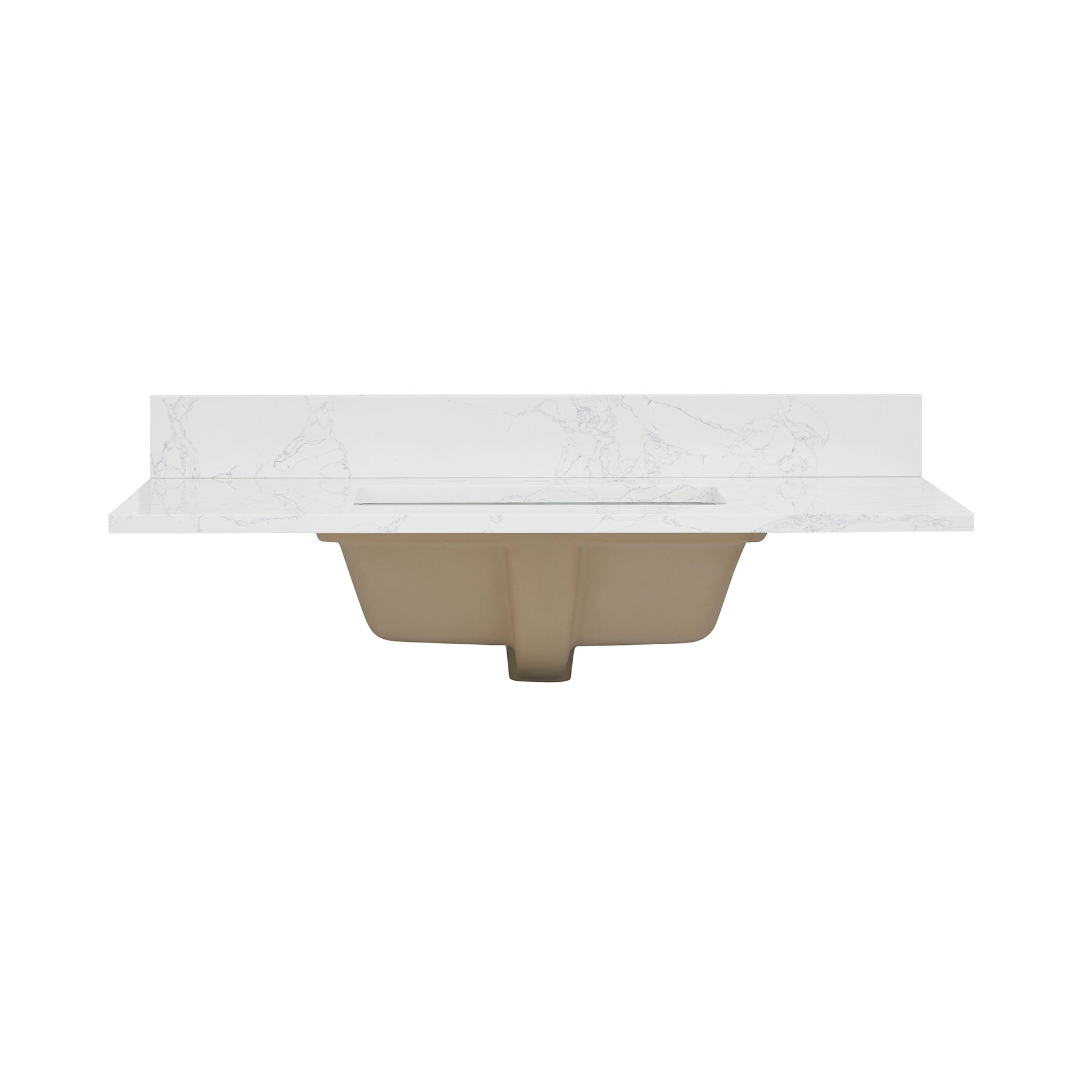 Searching for the perfect console vanity top? Our Ceres Countertop features a natural-looking stone finish that immerses you in its timeless elegance. Engineered with cutting-edge technology, it is highly resistant to scratches, stains, and heat, ensuring long-lasting beauty and easy maintenance. The Ceres Countertop will effortlessly complement your bathroom décor.
