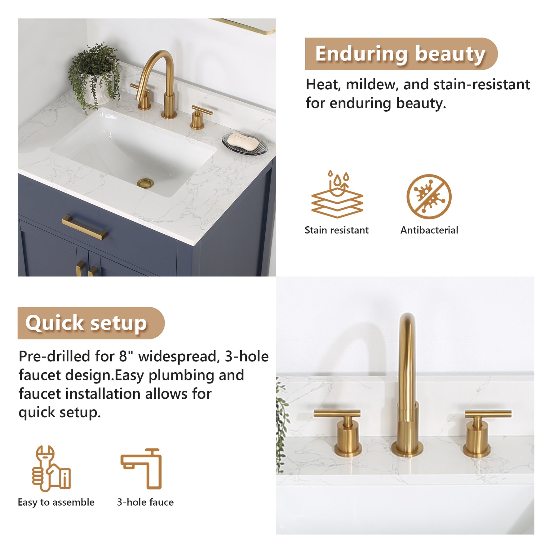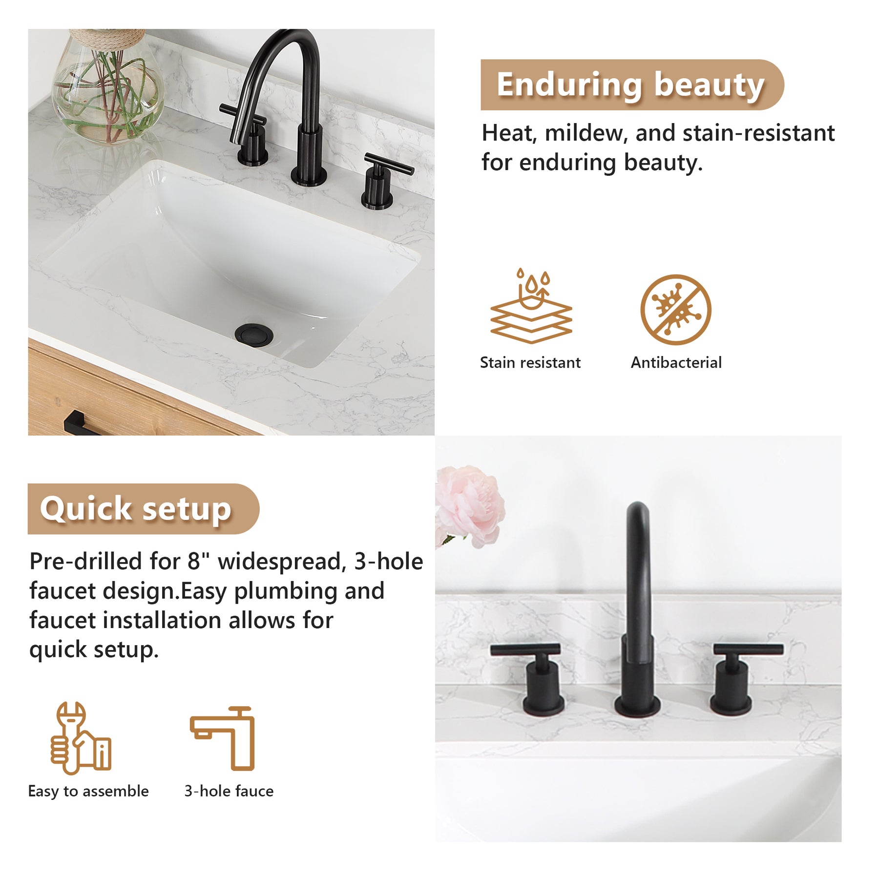 Pre-drilled for 8" widespread, 3-hole faucet design.