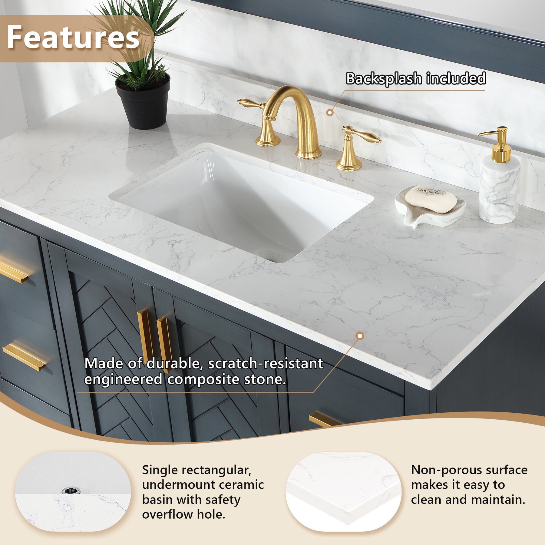 Material: Made of durable, scratch-resistant engineered composite stone.