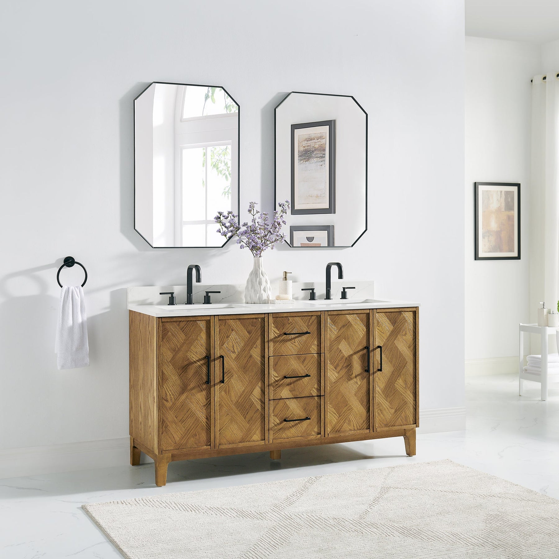 Transform your bathroom into a sanctuary of timeless elegance with our vintage-inspired vanity. Featuring exquisite herring bone striped brown detailing, soft-closing dovetailed drawers, and a sleek quartz countertop, it masterfully blends functionality with artistry. The sturdy wood base adds a touch of modern flair, while the weathered brown finish whispers rustic charm, creating a perfect balance of sophistication and warmth. It’s more than a vanity—it’s a statement of refined living. Redefine your bathroom, one detail at a time.