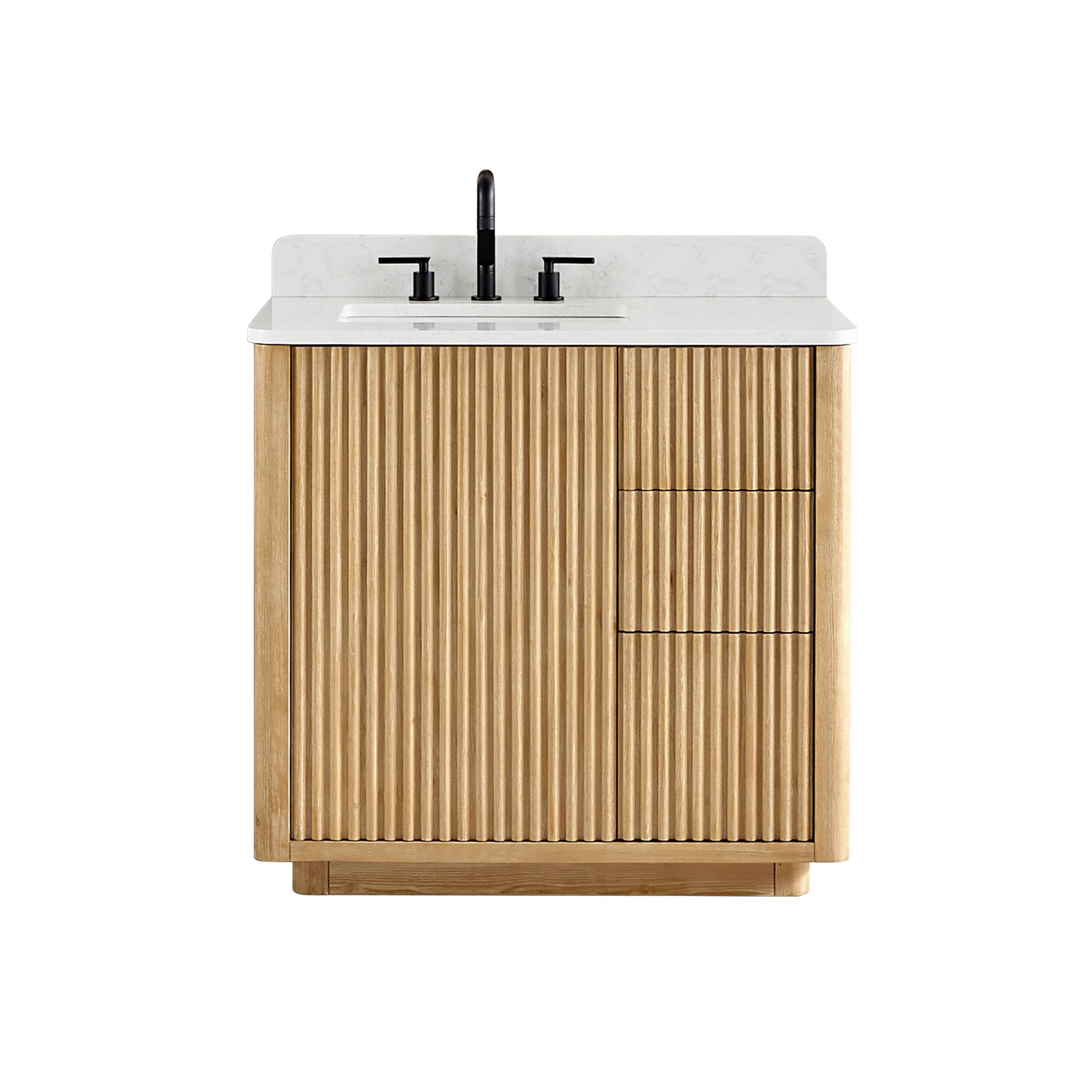 Countertop: Solid Reeding : Intricate solid reeding on front panels adds depth and dimension that enhances the vanity’ s elegant and contemporary appeal.