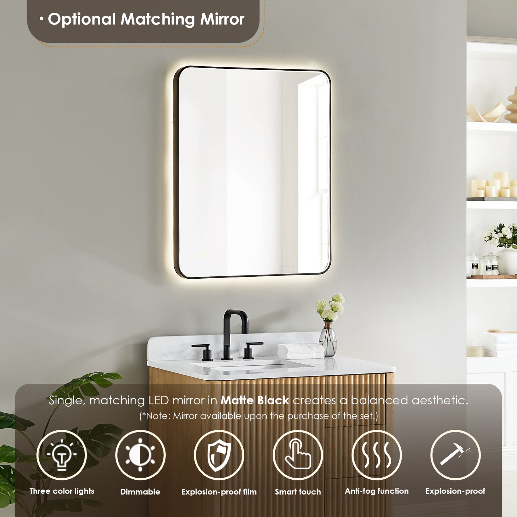 Accessories: Optional Matching Mirror(s): Single, matching LED mirror in Matte Black creates a balanced aesthetic (Mirror available upon the purchase of the set).