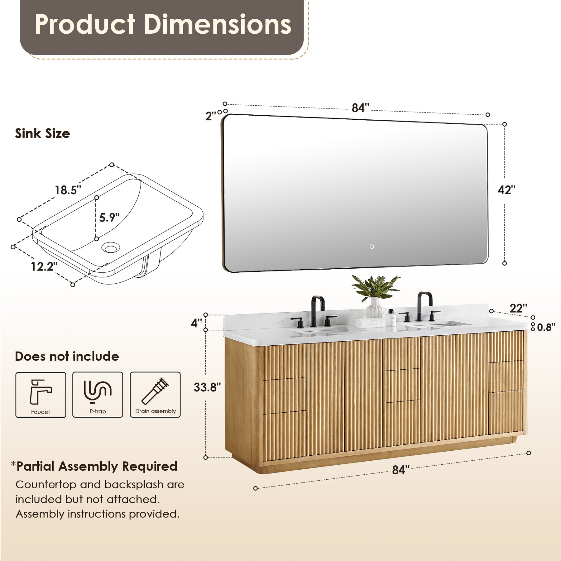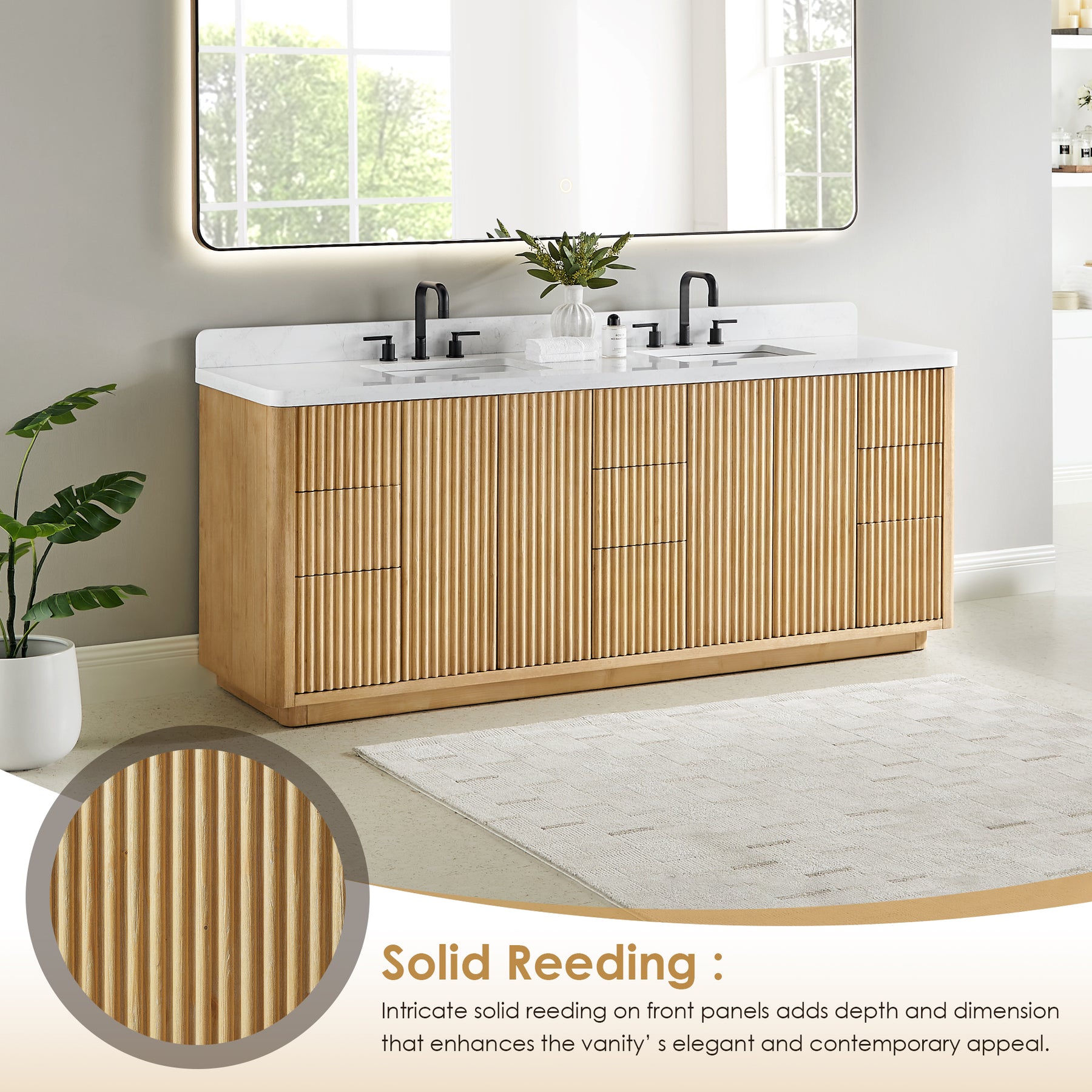 • Countertop: Solid Reeding : Intricate solid reeding on front panels adds depth and dimension that enhances the vanity’ s elegant and contemporary appeal.