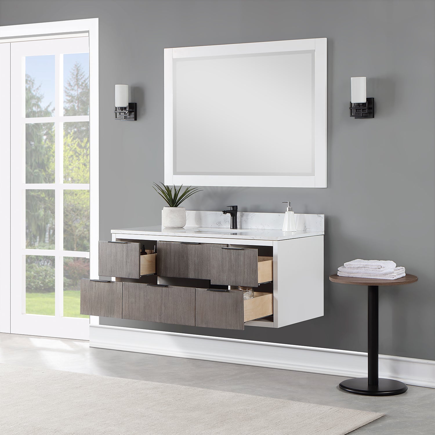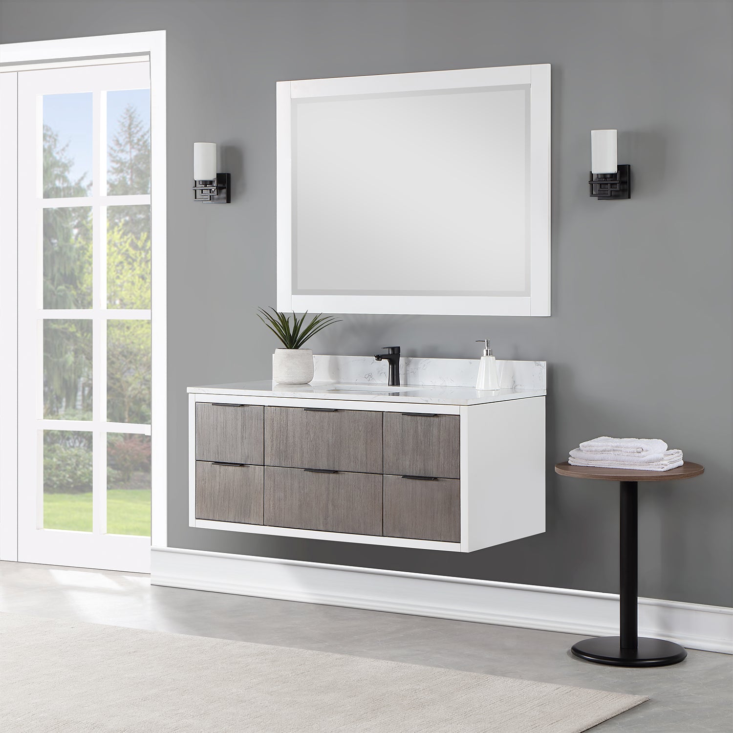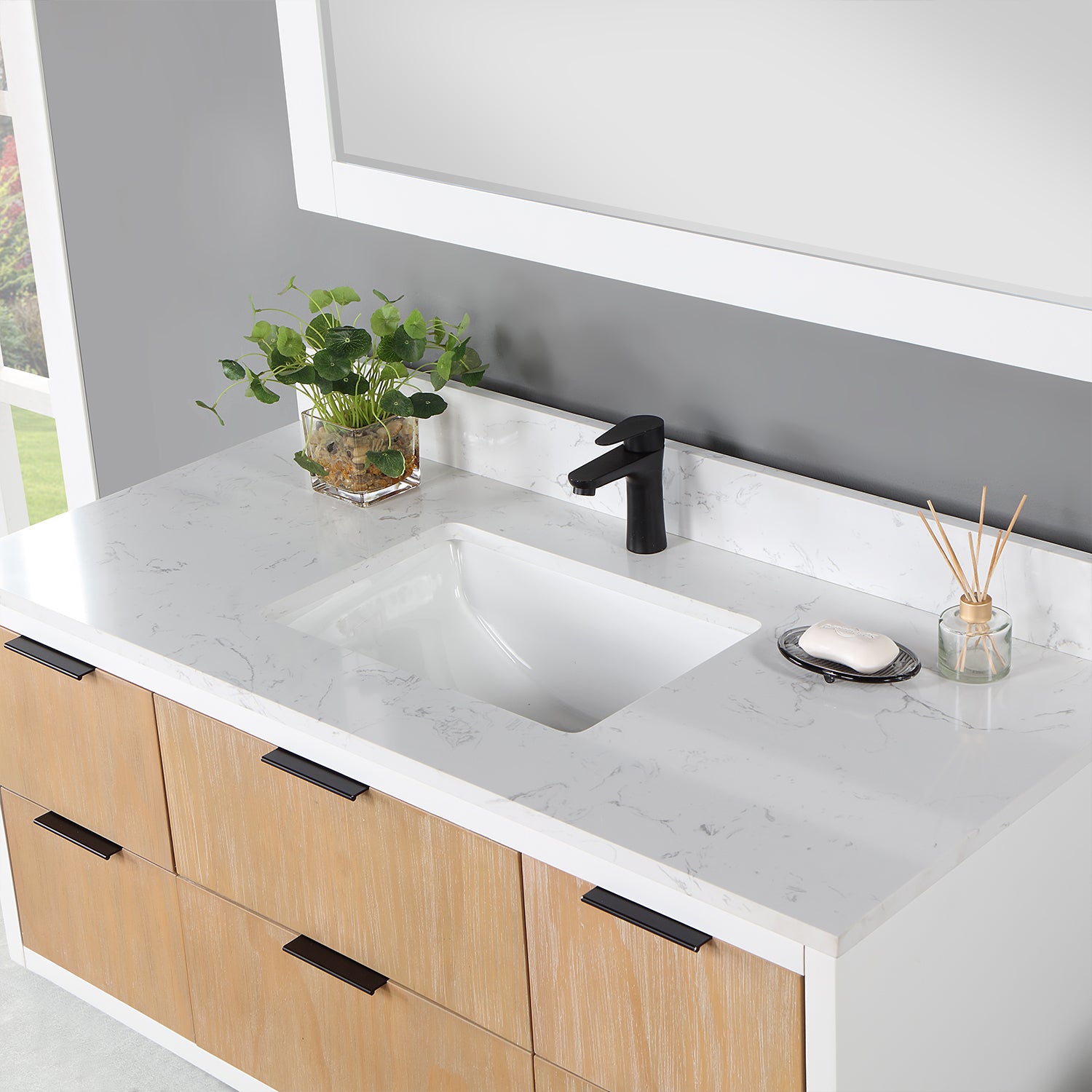 If you’re looking for elegant simplicity in a bathroom vanity, look no further than our Dione series. This simple piece features a two-tone design scheme that lends beautiful contrast and balance to your space. It has dual spacious drawers with invisible pulls that provide a seamless, contemporary aesthetic along with ample storage. With a beautifully marbled Engineered Stone Countertop, the Dione vanity adds class, distinction, and functionality to any guest or master bath in your home.