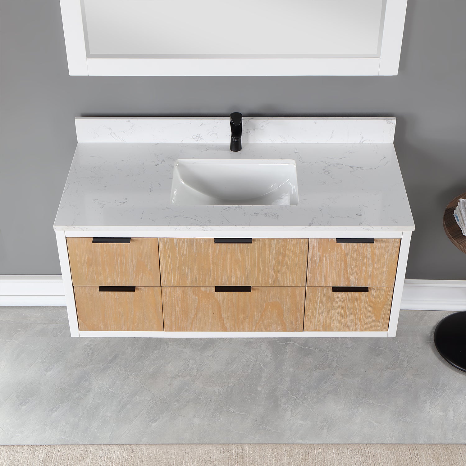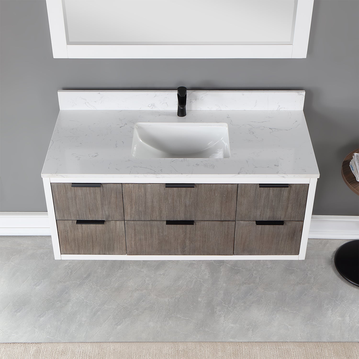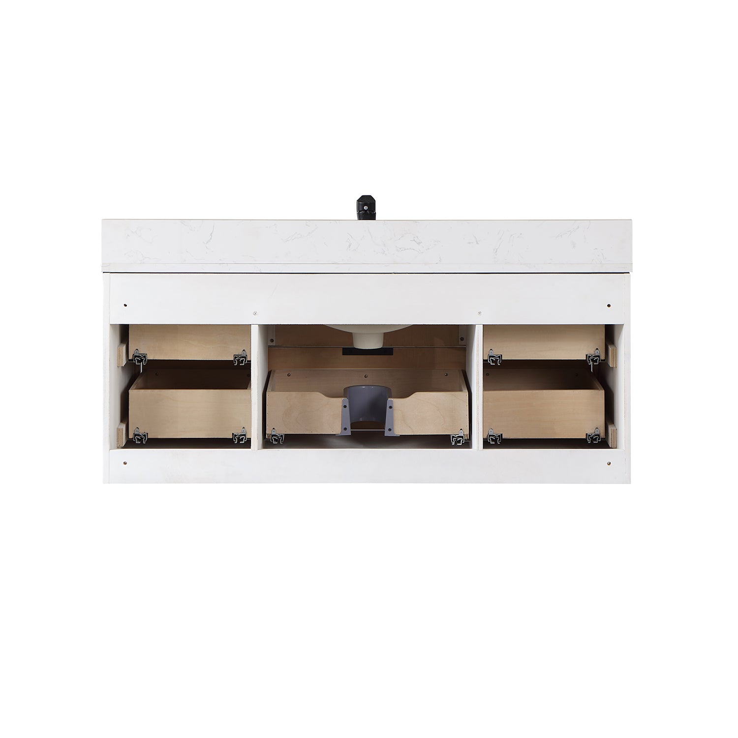 If you’re looking for elegant simplicity in a bathroom vanity, look no further than our Dione series. This simple piece features a two-tone design scheme that lends beautiful contrast and balance to your space. It has dual spacious drawers with invisible pulls that provide a seamless, contemporary aesthetic along with ample storage. With a beautifully marbled Engineered Stone Countertop, the Dione vanity adds class, distinction, and functionality to any guest or master bath in your home.
