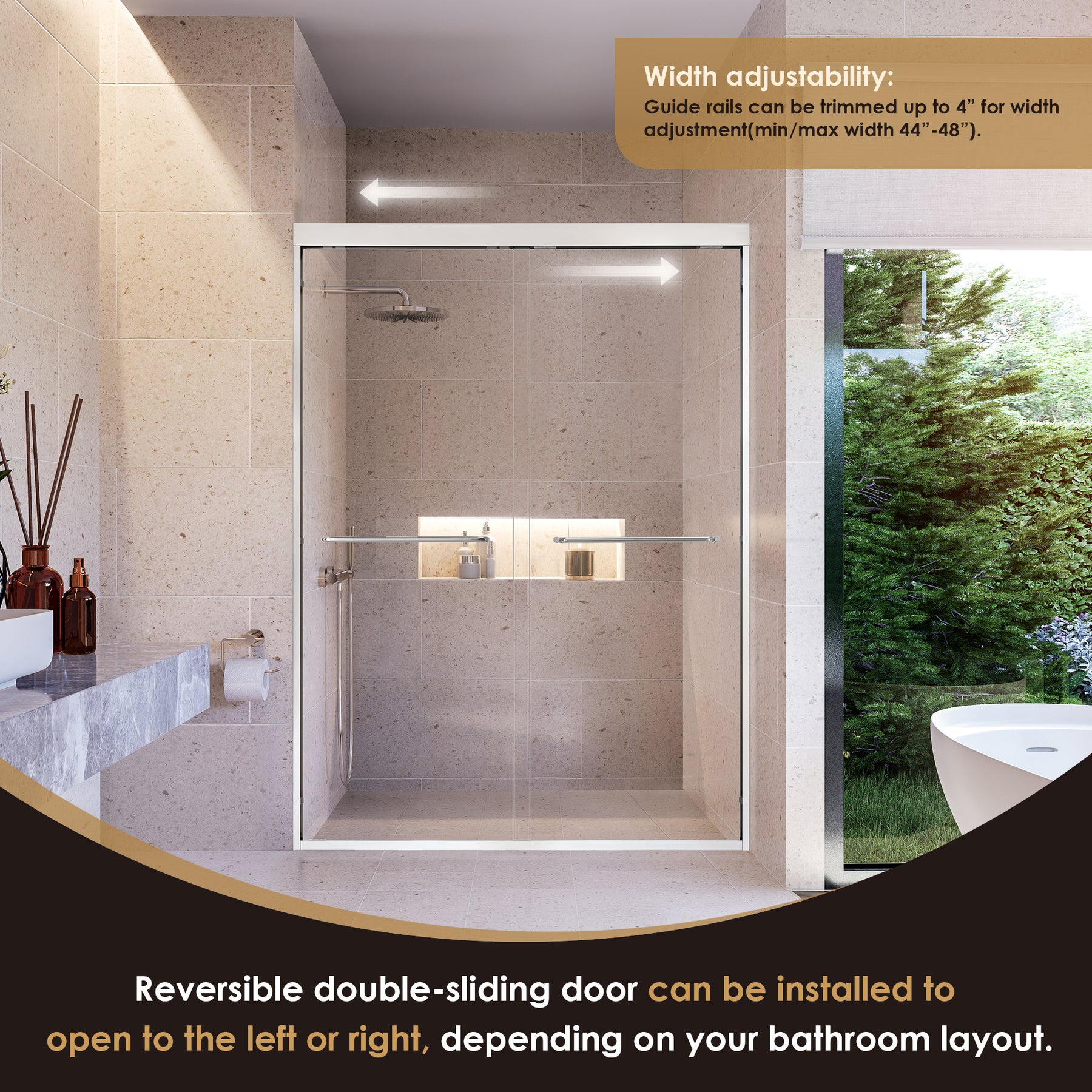 Reversible double-sliding door can be installed to open to the left or right, depending on your bathroom layout.