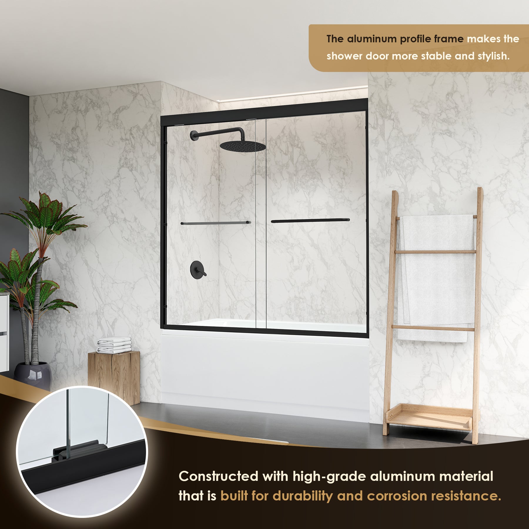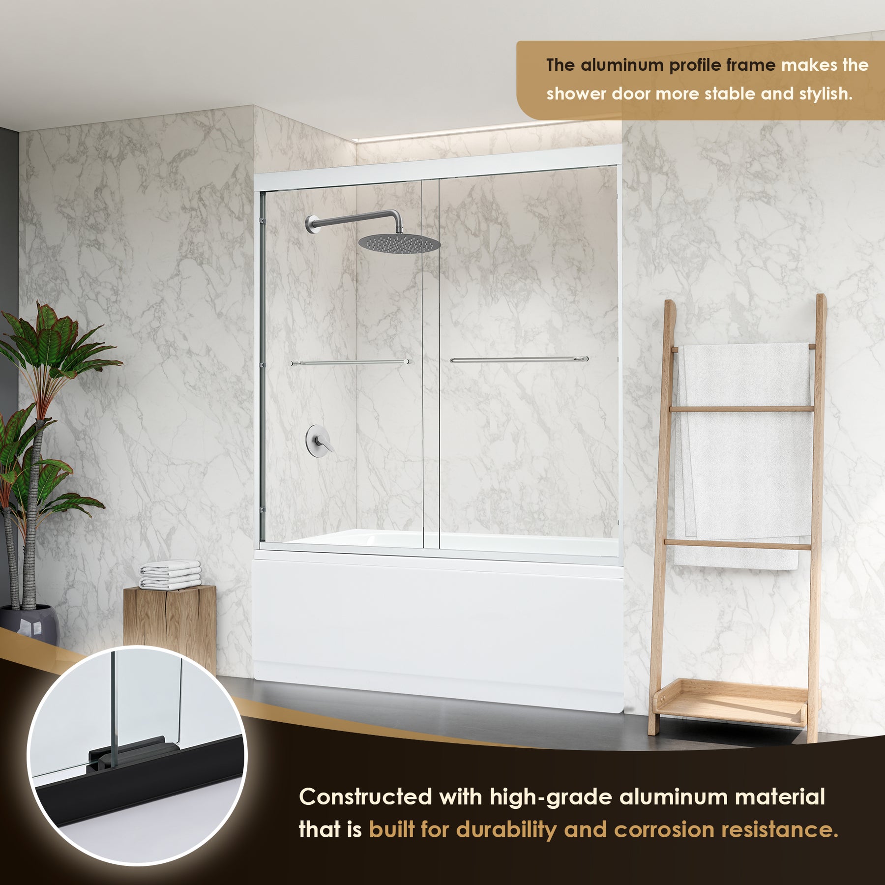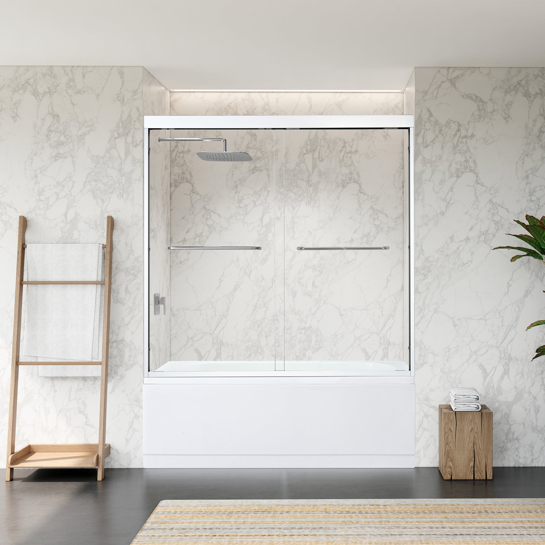 Reversible double-sliding door can be installed to open to the left or right, depending on your bathroom layout.