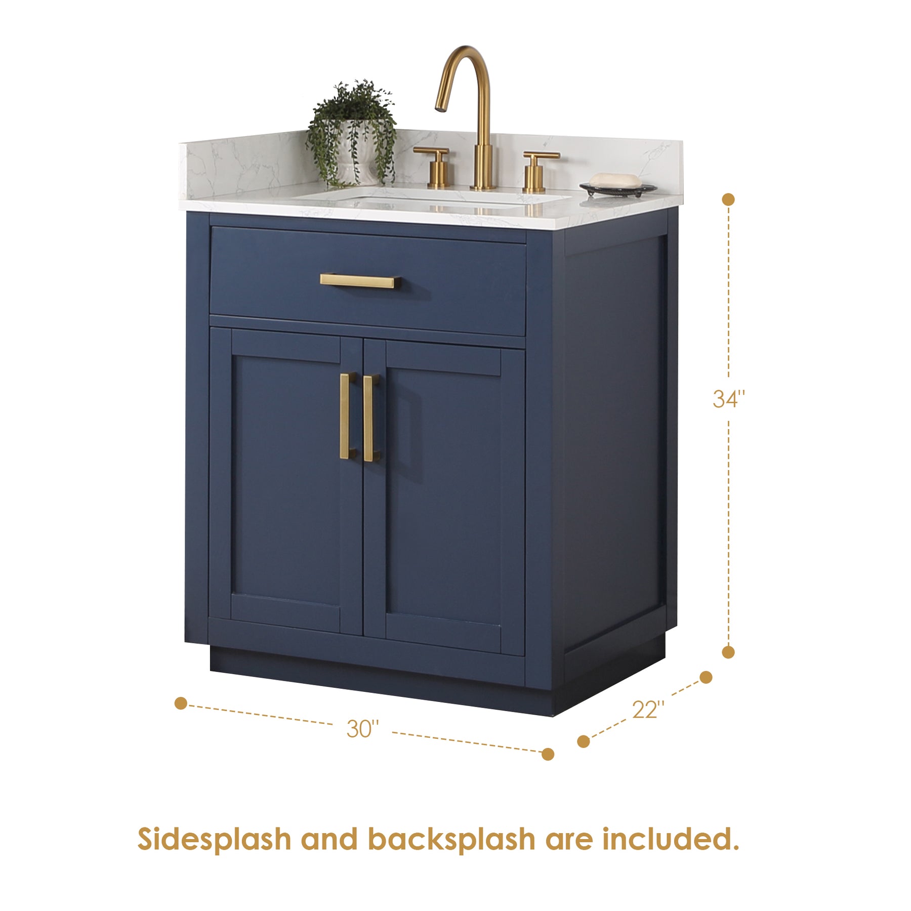 Hardware: Includes modern,zinc alloy hardware in Brushed Gold finish.