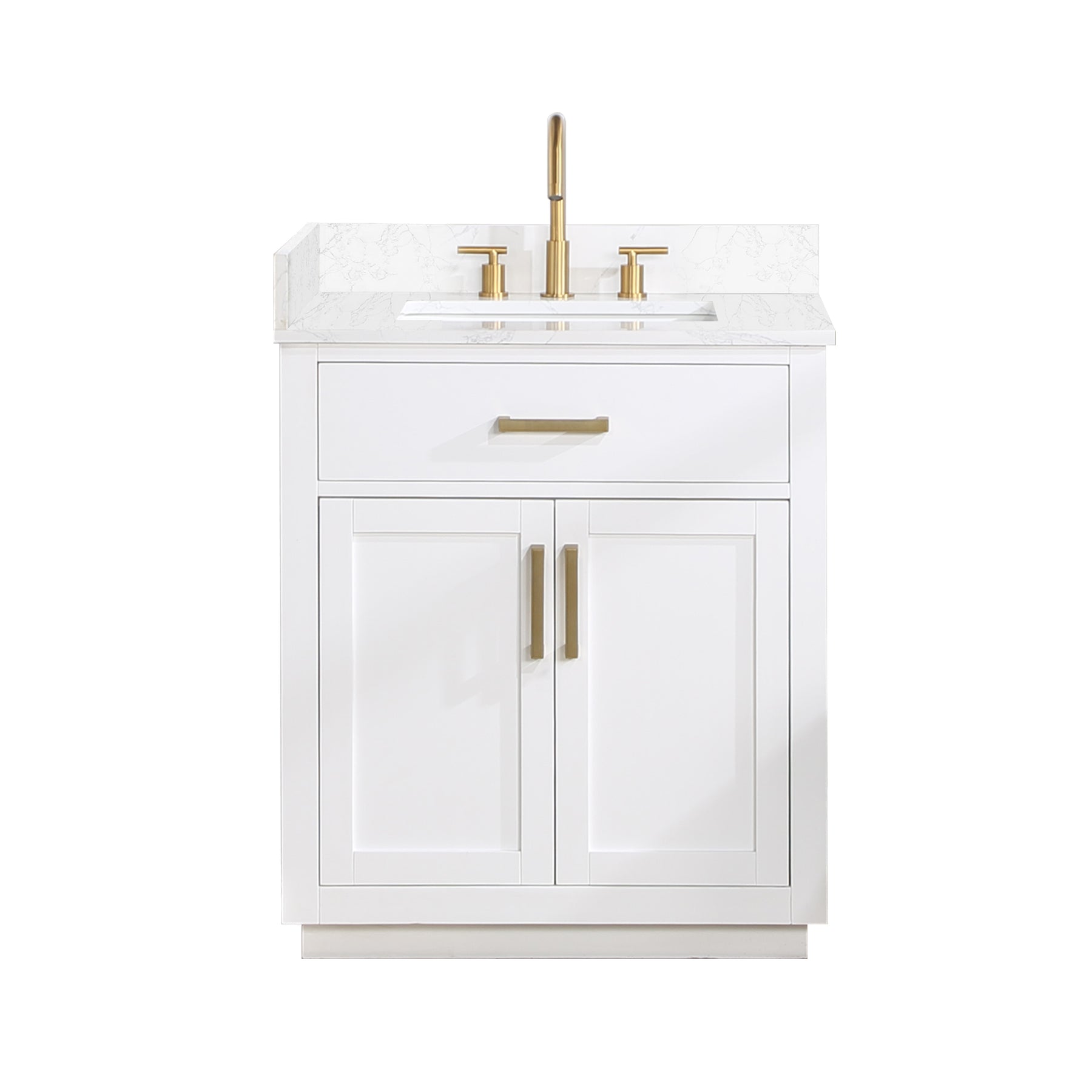 Love the fresh,clean,classic look? Our Gavino vanity series delivers timeless sophistication with a modern twist—from the simple,bar-style pulls to the gorgeous grain of the countertop. Superior craftsmanship is at the heart of this piece,featuring premium,durable materials that guarantee long-lasting beauty and functionality. The Gavino is also ripe with thoughtful details like a flip-down drawer that maximizes storage space,whisper-quiet door hinges,and a matching mirror that ties this stylish ensemble together.