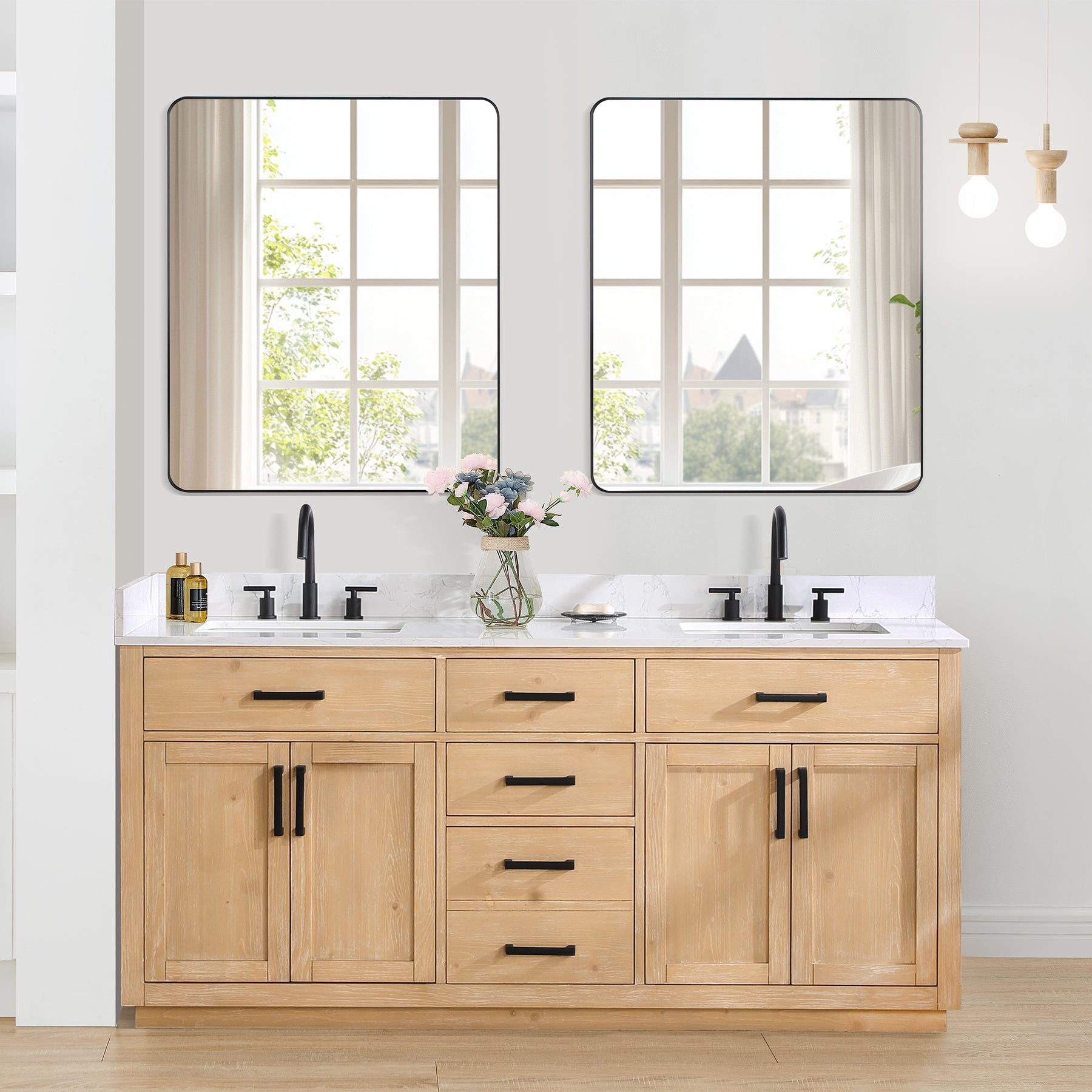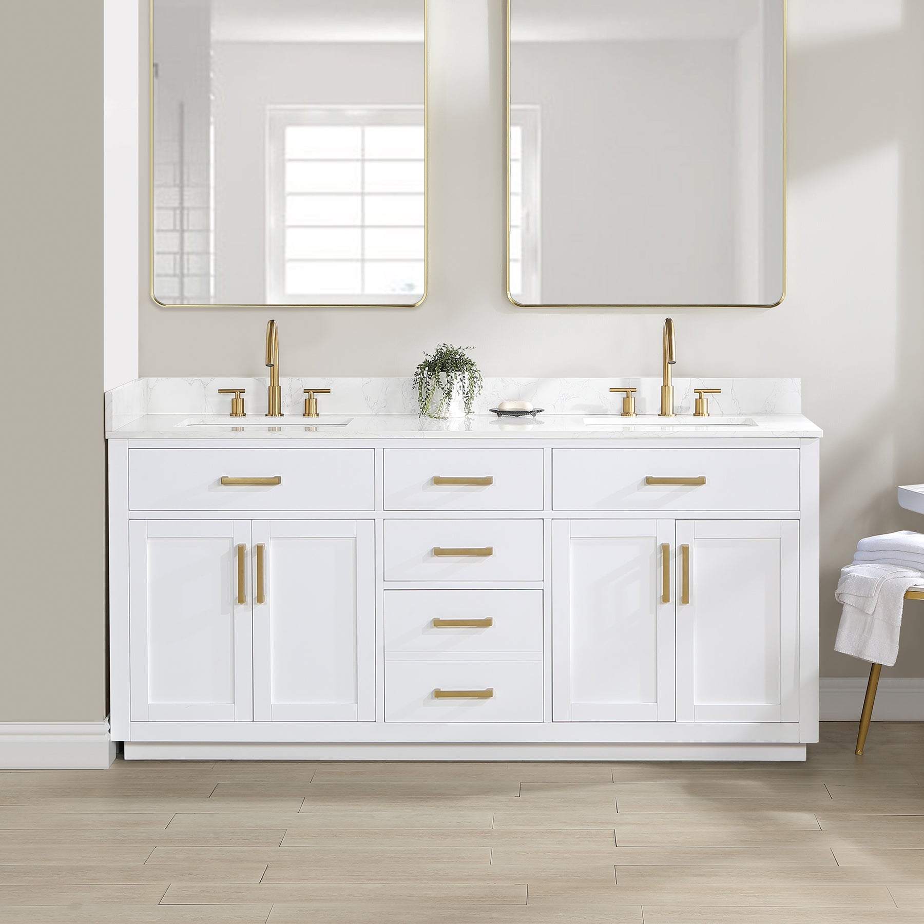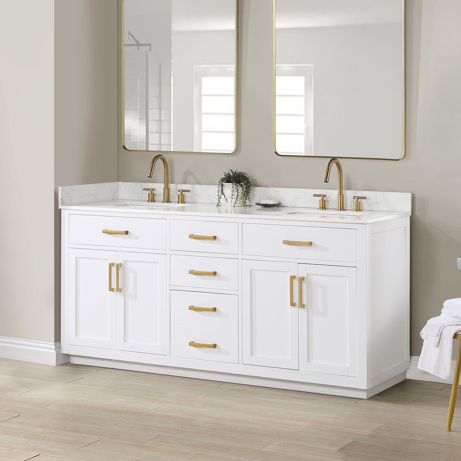 Love the fresh,clean,classic look? Our Gavino vanity series delivers timeless sophistication with a modern twist—from the simple,bar-style pulls to the gorgeous grain of the countertop. Superior craftsmanship is at the heart of this piece,featuring premium,durable materials that guarantee long-lasting beauty and functionality. The Gavino is also ripe with thoughtful details like a flip-down drawer that maximizes storage space,whisper-quiet door hinges,and a matching mirror that ties this stylish ensemble together.