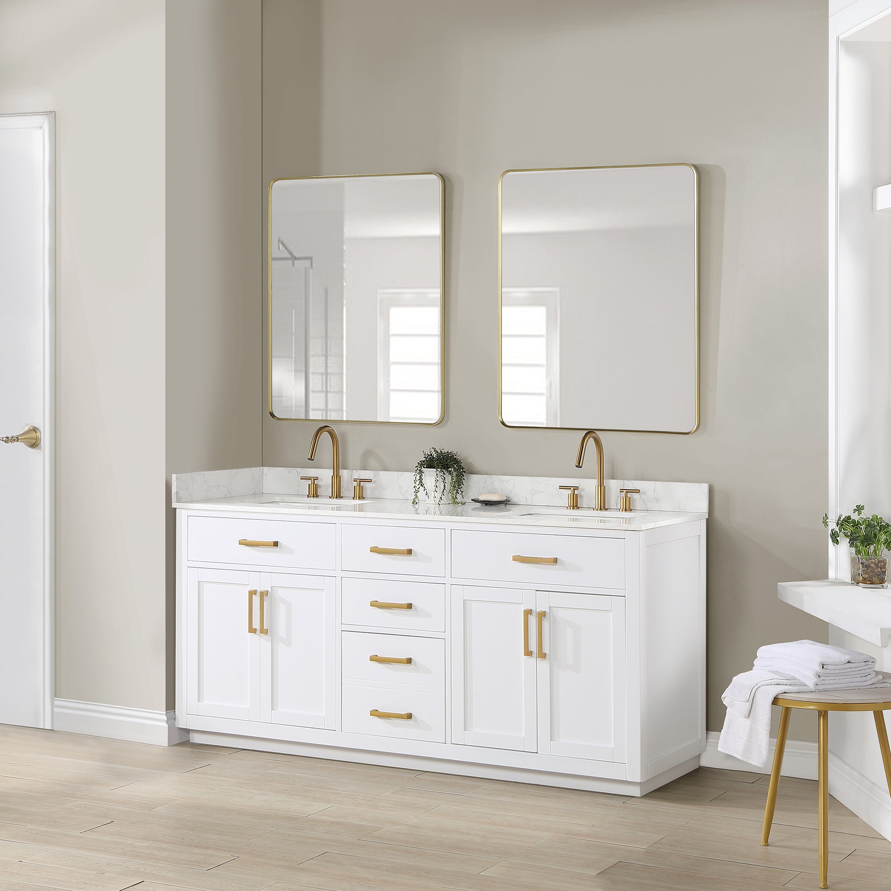 Mirror: Includes two,matching mirrors with stylish aluminum Brushed Gold or Matte Black frame.