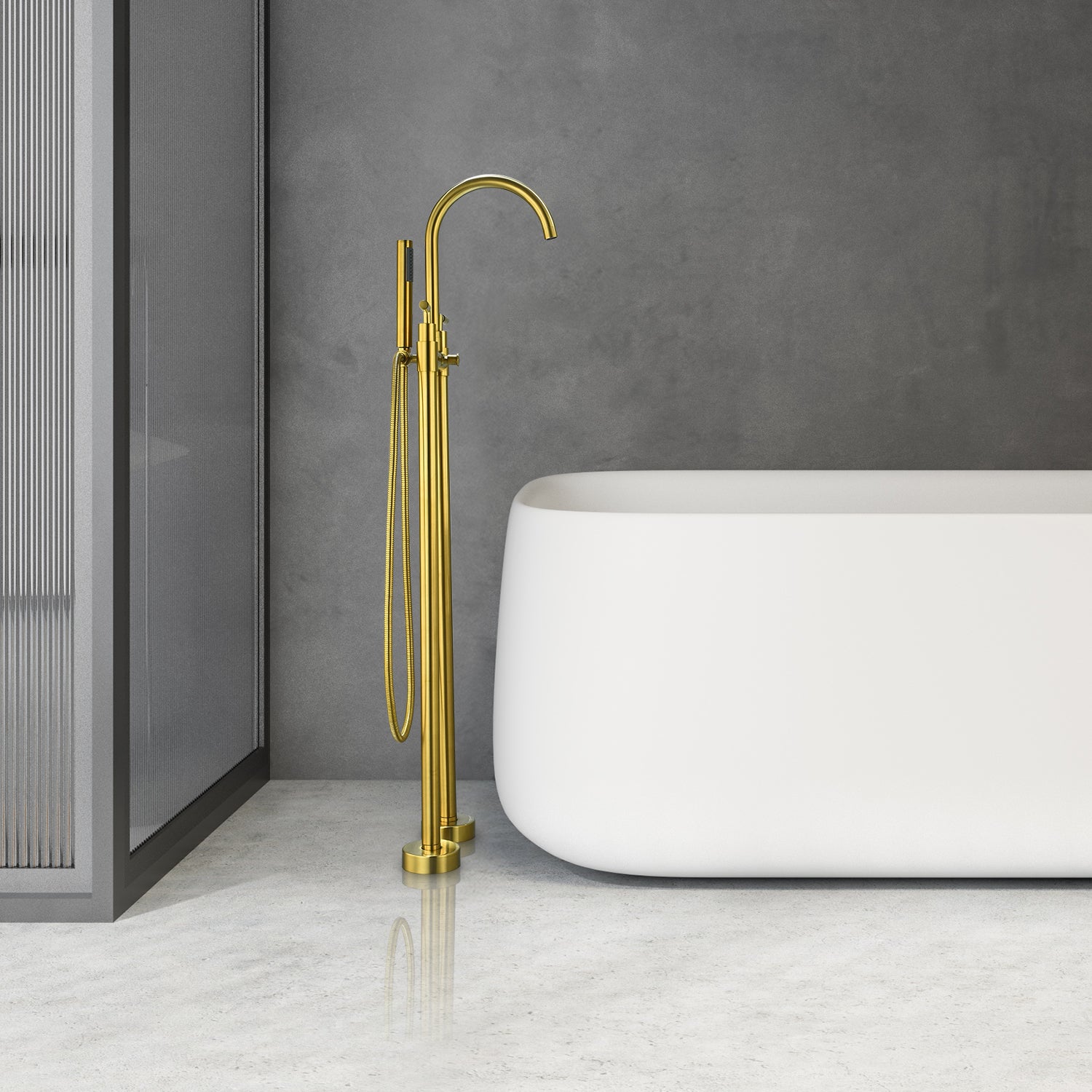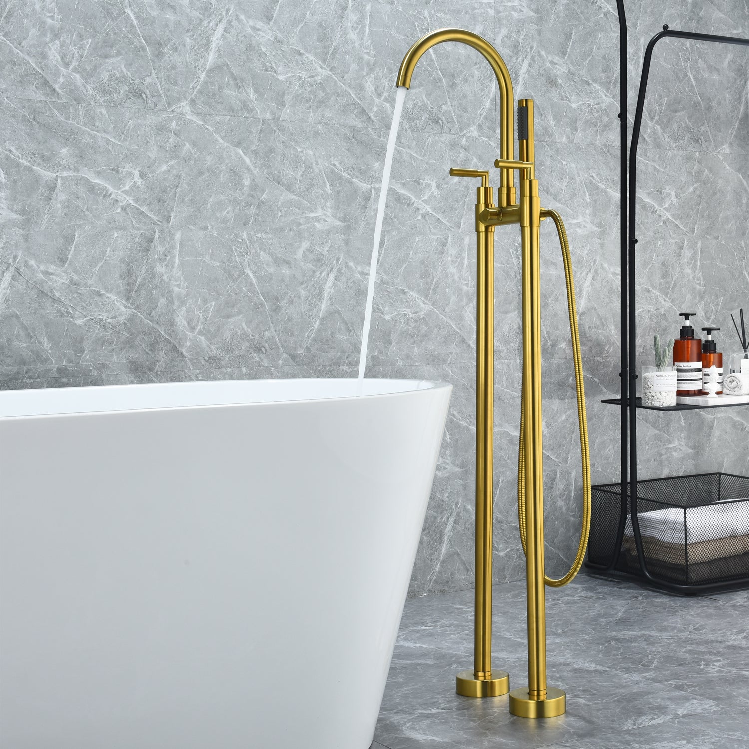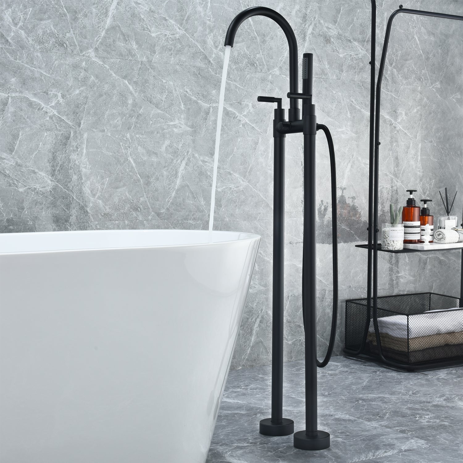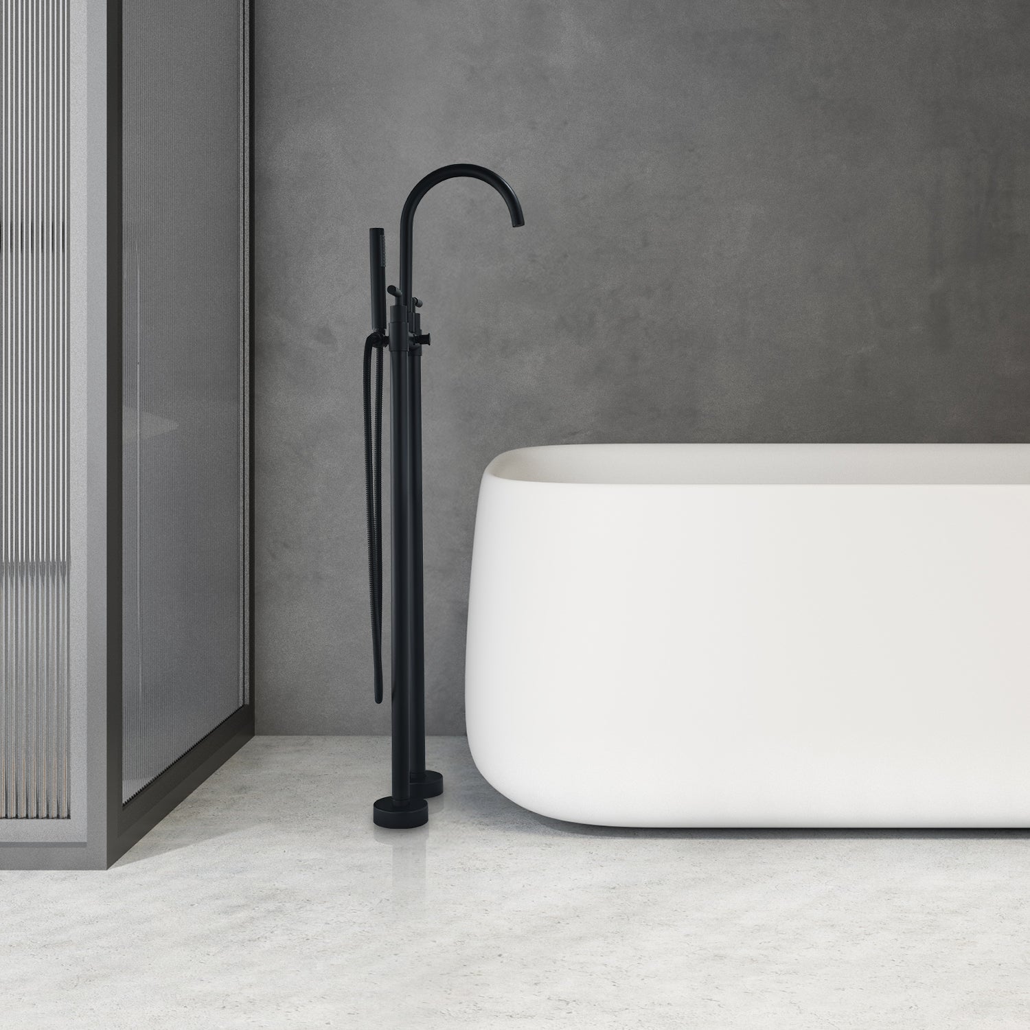 Searching for the perfect complement to your freestanding bathtub? Mountable to the floor, our Gnosall Freestanding Bathtub Faucet lends supreme style and functionality to your bathtime setup. It’s highly maneuverable, with a generous hose and handheld shower wand that lets you direct the water exactly where you want it. Create a relaxing, spa-like experience in your very own bathroom.
