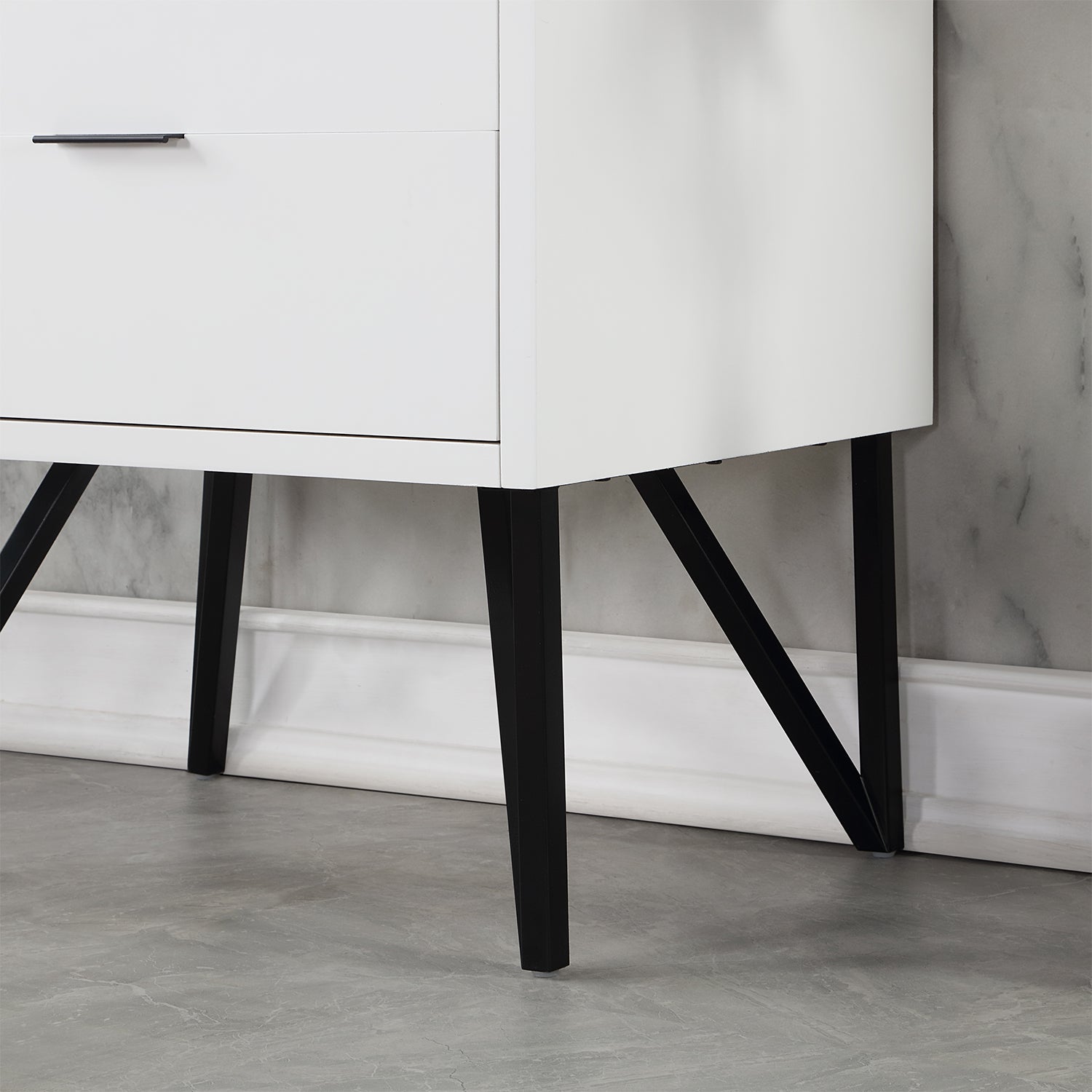 Hardware: Aluminum contracted invisible drawer pull handles in Matte Black finish provide a streamlined look.