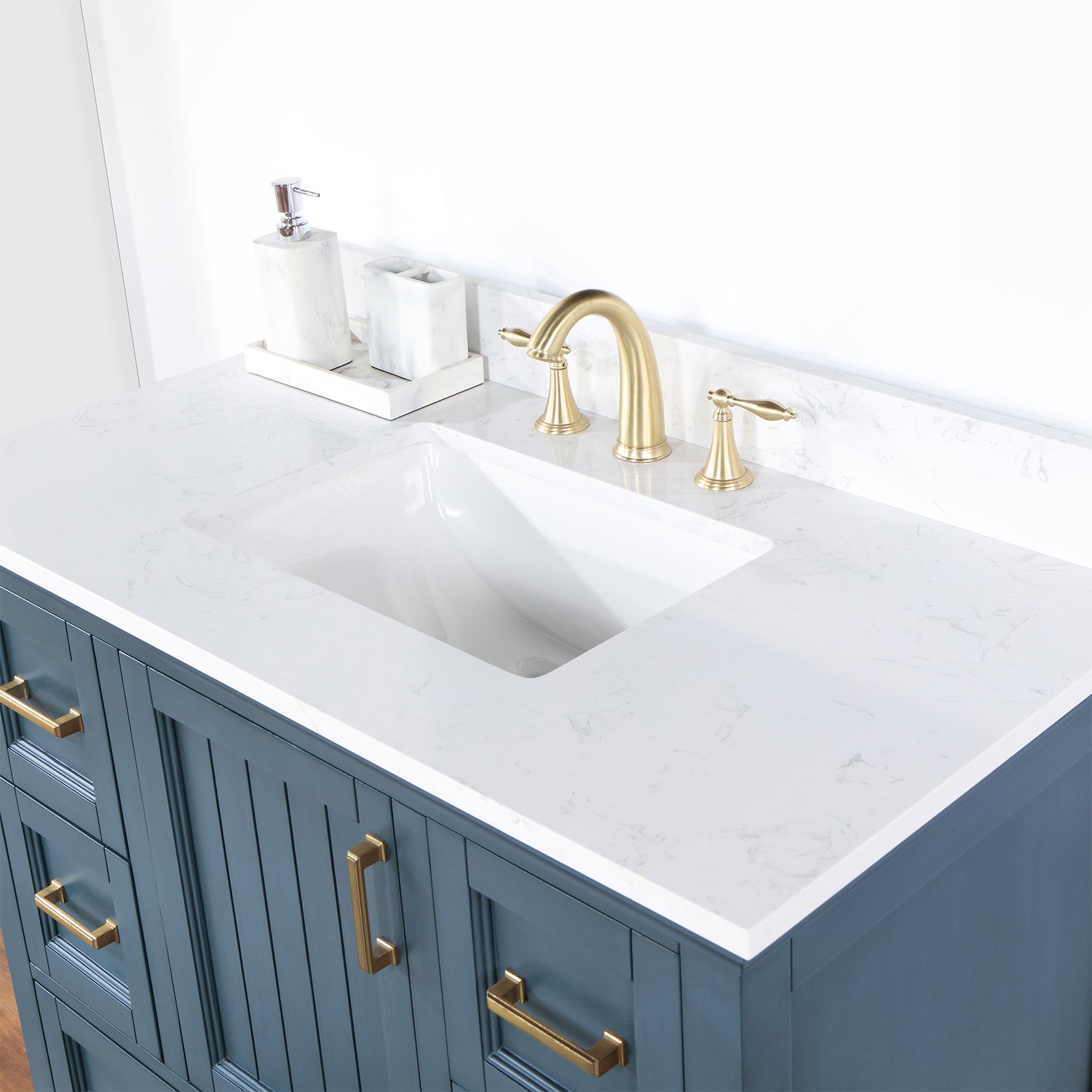 • Hardware: Brushed brass finish hardware