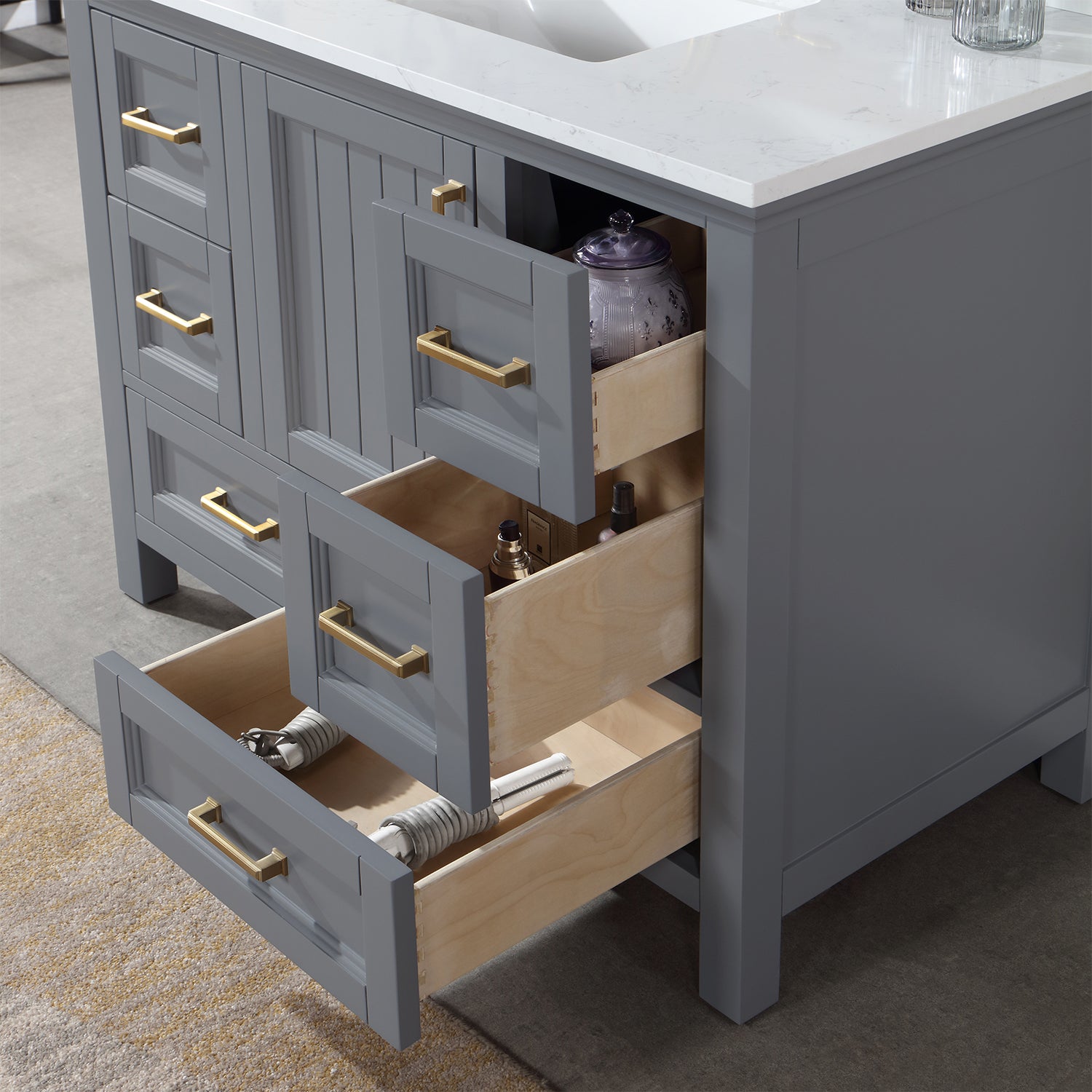 • Drawer & Door: 6 soft-closing drawers (4 small, 2 large) and 1 soft-closing door