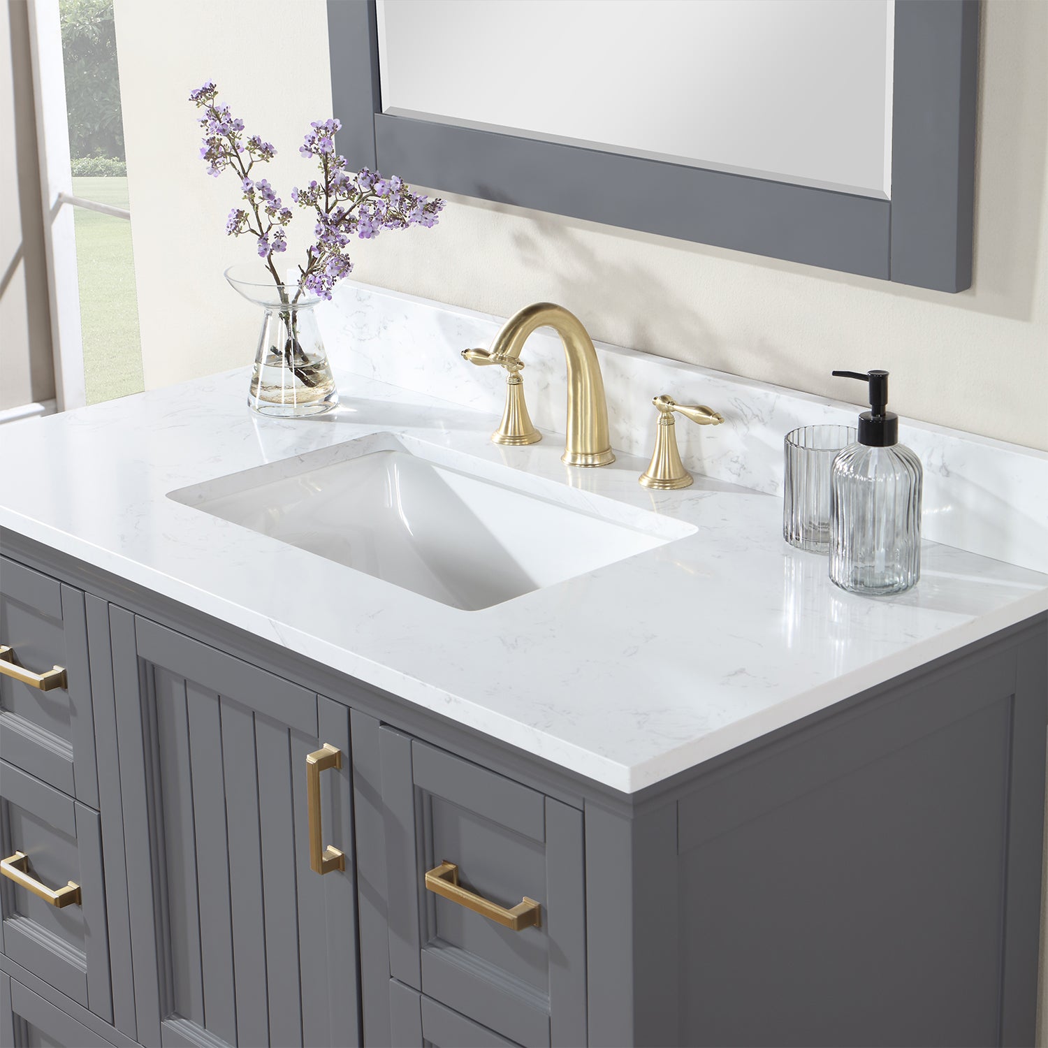 The elegance and classic craftsman style is what makes the Isla vanity one of our most popular. A minimalist appearance blended with a stunning and luxurious Aosta White Engineered Stone Countertop creates a gorgeous simple farmhouse vanity design. The abundance of cabinet space gives you plenty of room for towels and other bathroom accessories.