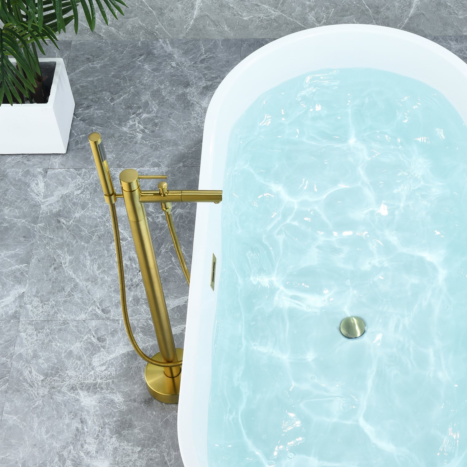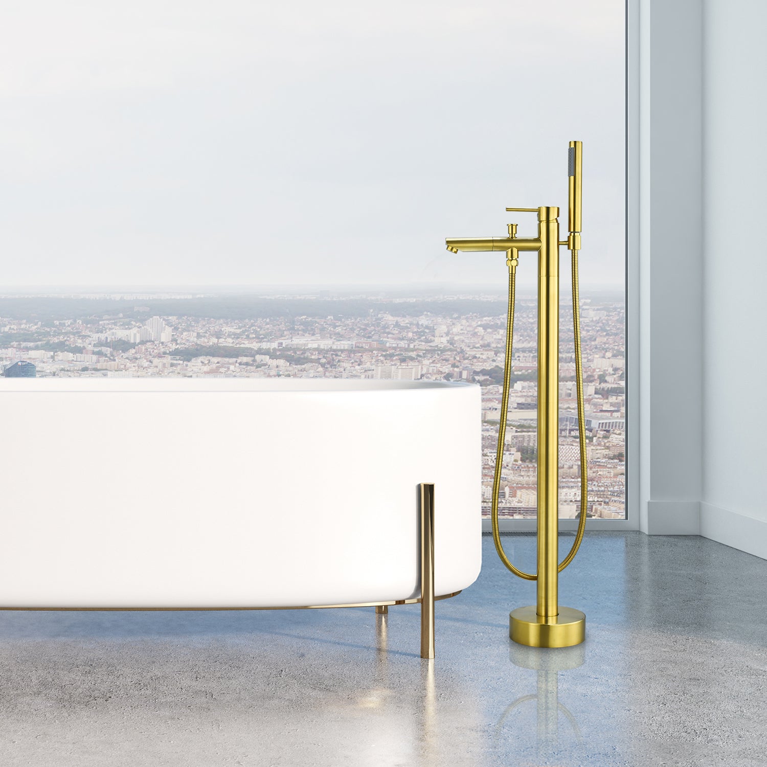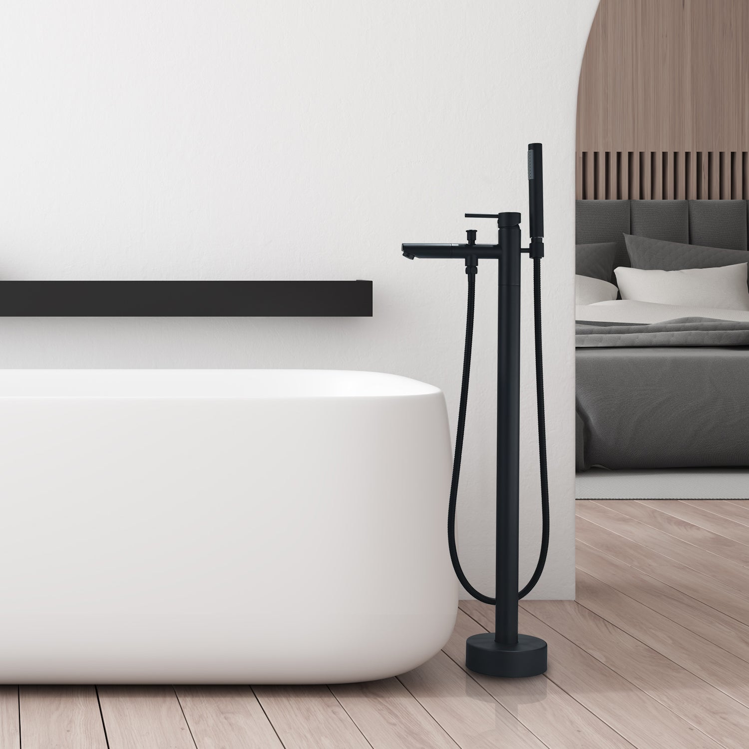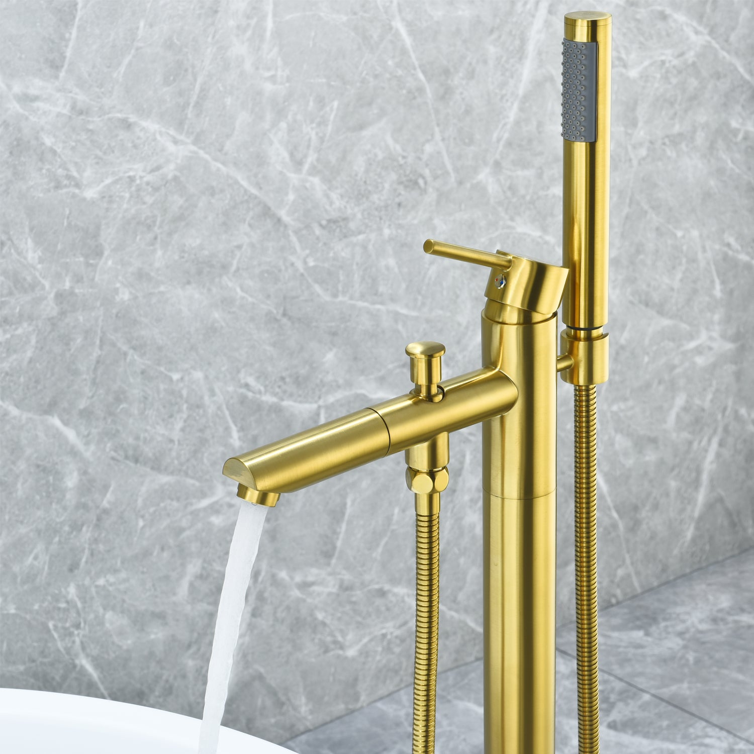 A bathtub faucet that’s as exquisitely beautiful as it is functional? Our Larod Freestanding Bathtub Faucet provides a stylish accent to your contemporary bath while taking your bathing experience to a whole new level. It’s designed with your comfort in mind, featuring a handheld shower wand and precision controls for complete customization of water flow and temperature. This faucet is made of heavy-duty brass to deliver years of optimal performance.
