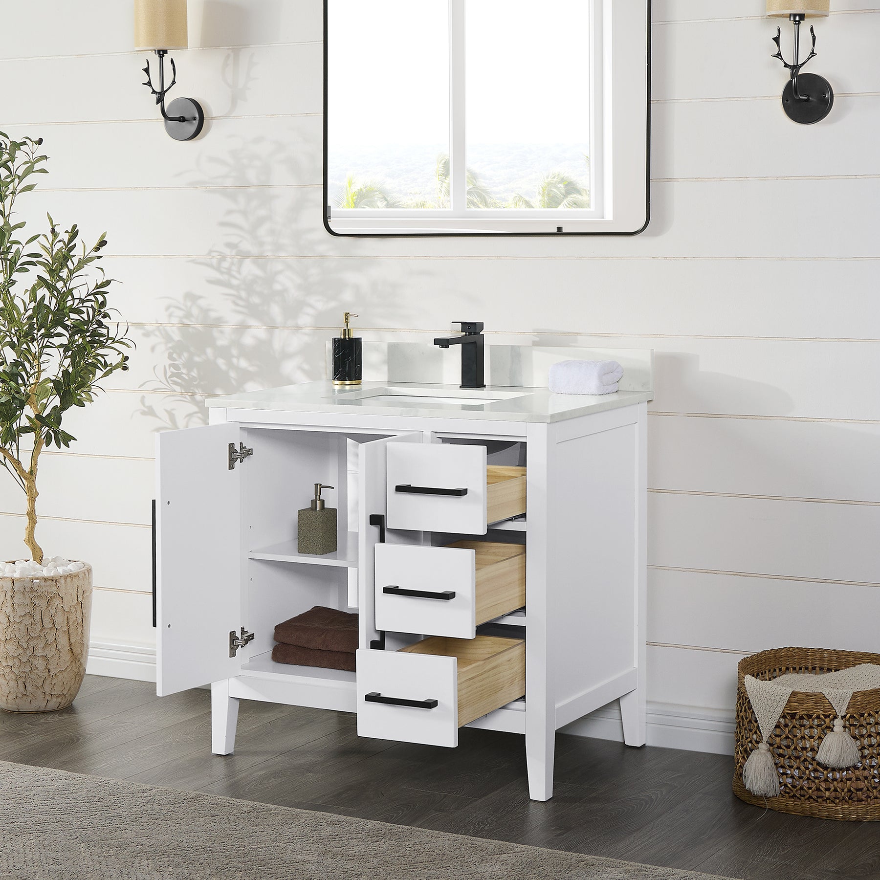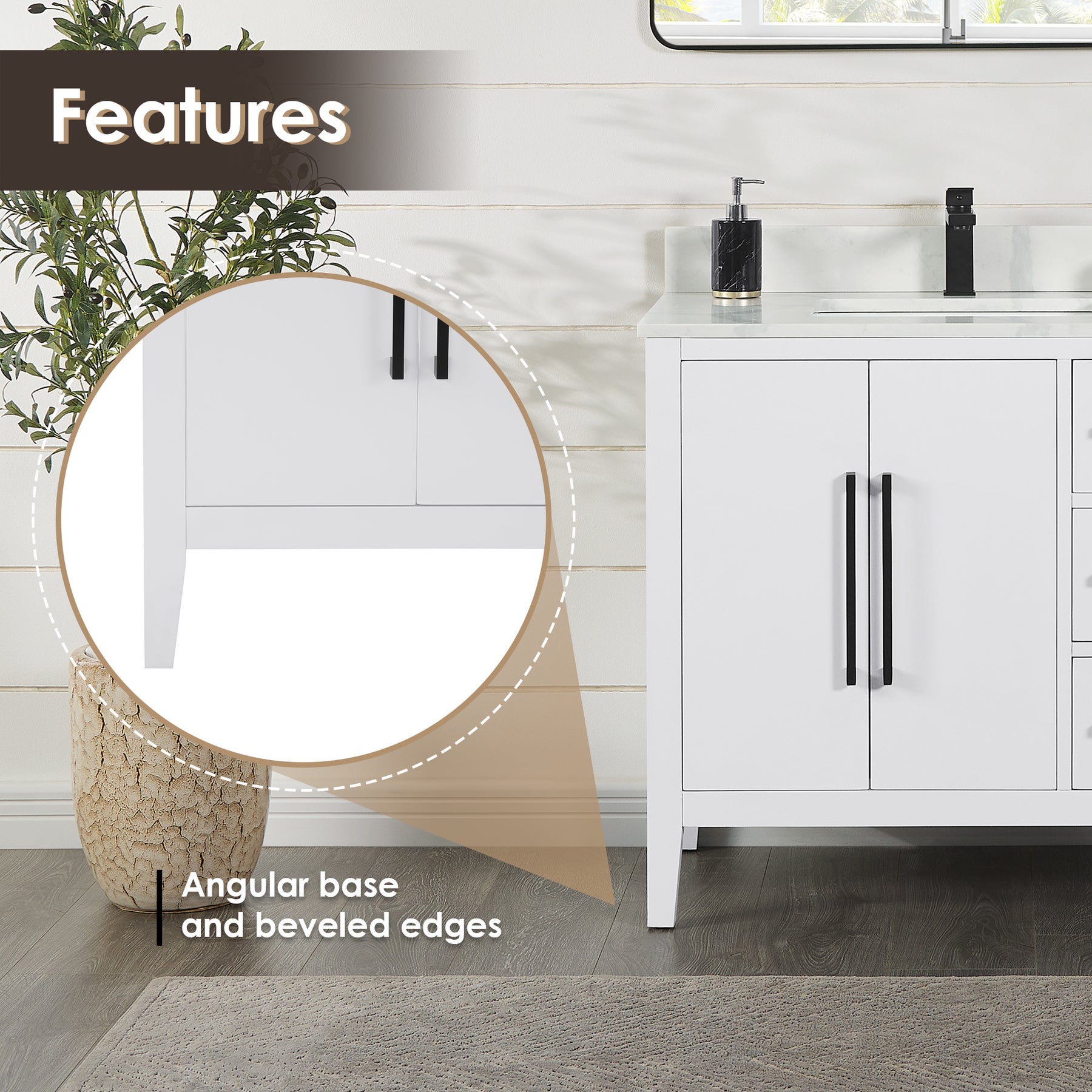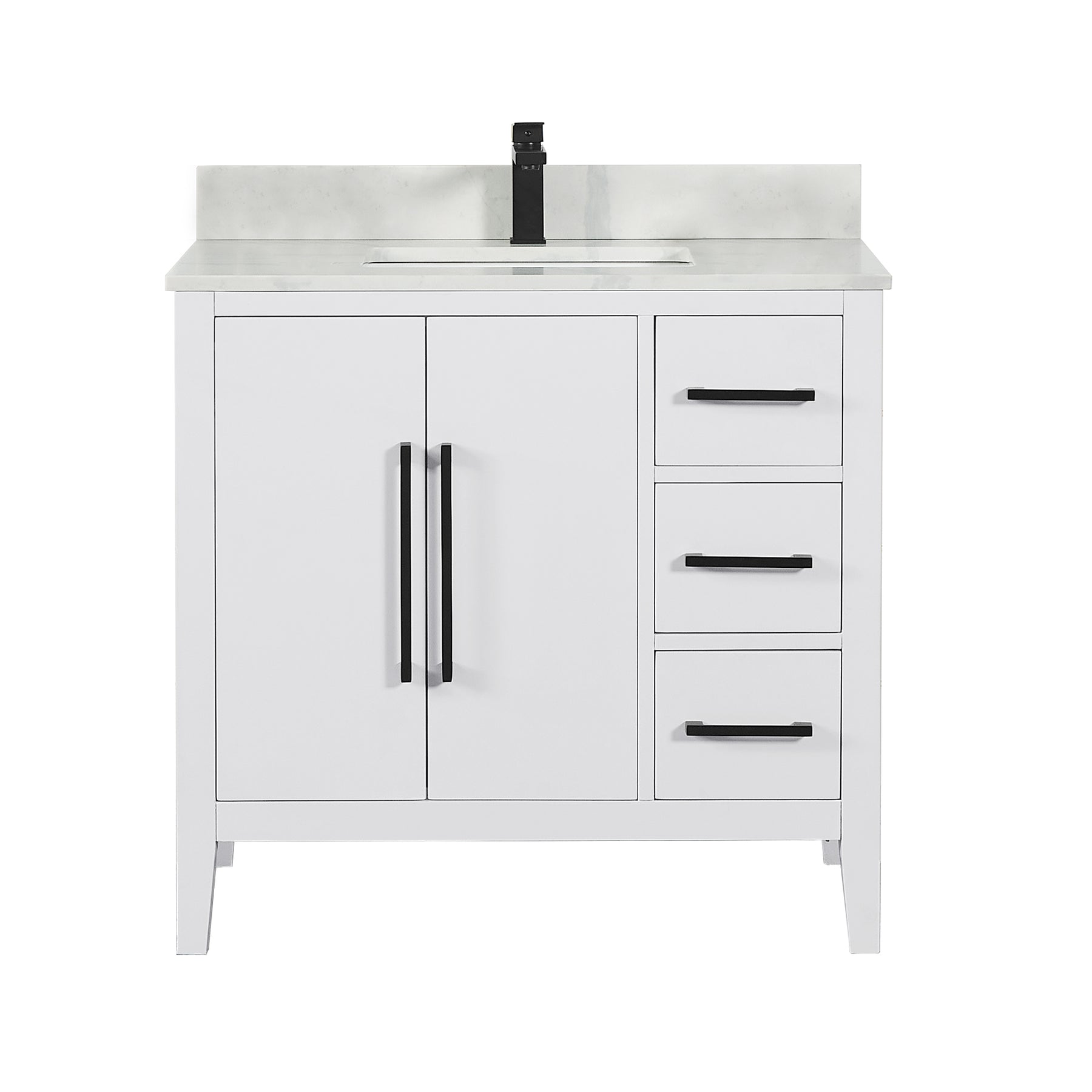 Drawer & Door: 3 soft-closing drawers with dovetail joint and 2 soft-closing doors maximize your bathroom storage space. Flat, ultra-modern cabinet doors accentuate the contemporary design.