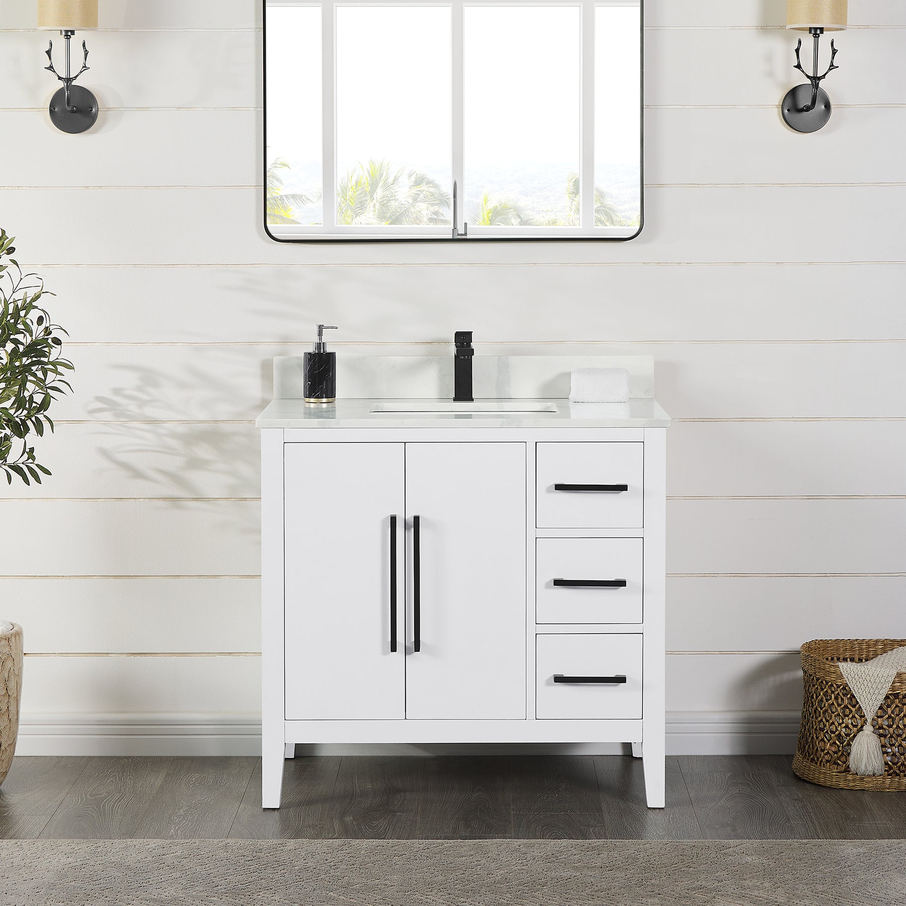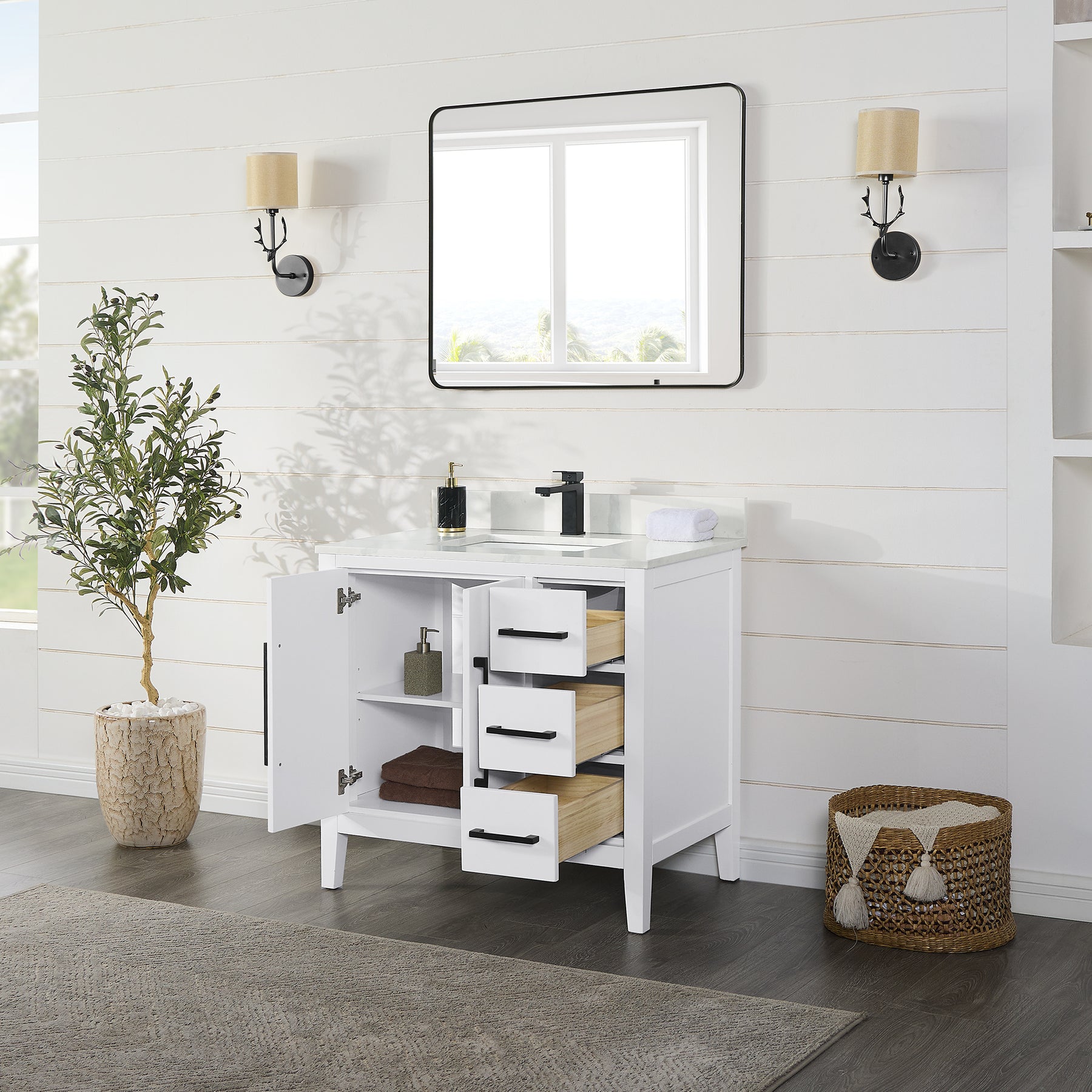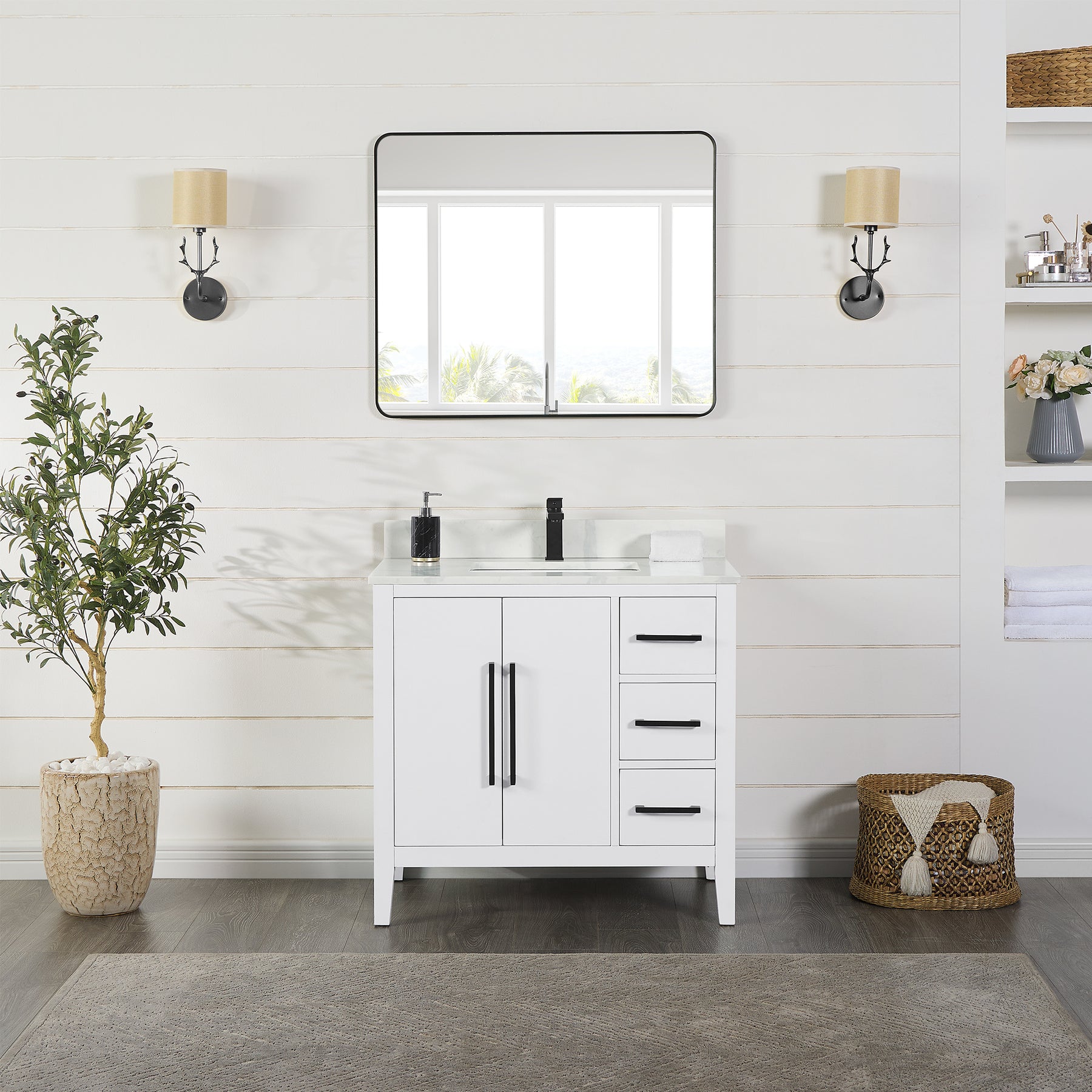 Mirror: Includes single, matching aluminum-framed mirror in stylish Matte Black finish.