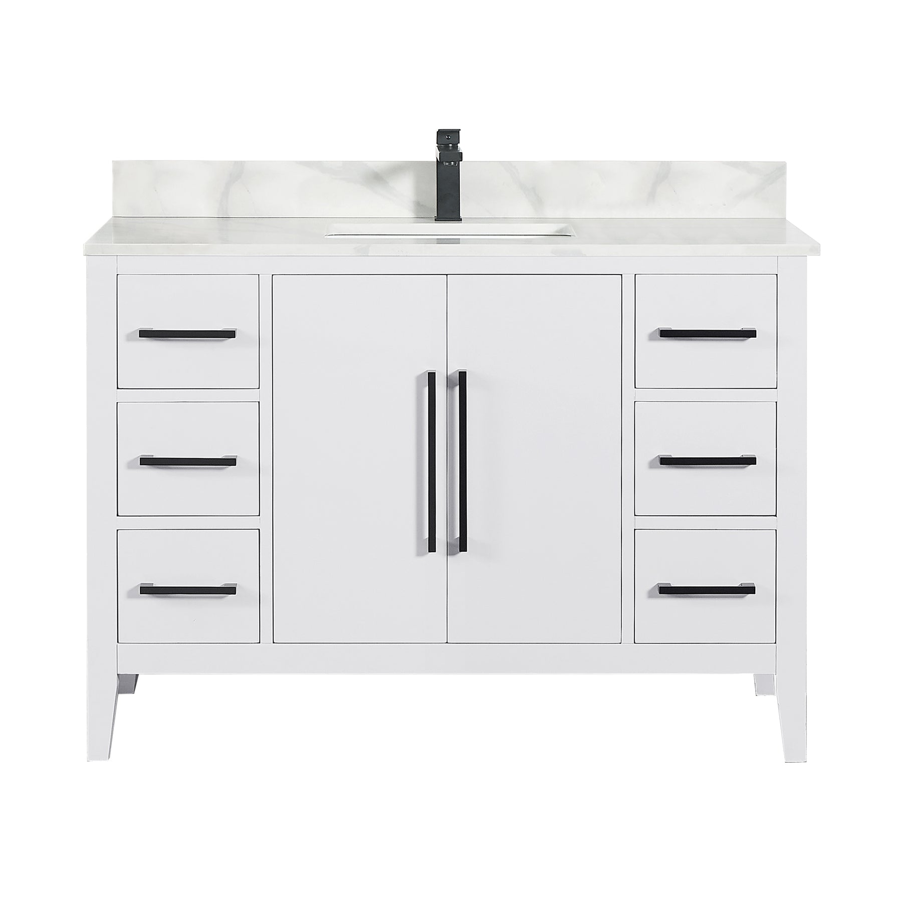Drawer & Door: 6 soft-closing drawers with dovetail joint and 2 soft-closing doors maximize your bathroom storage space. Flat, ultra-modern cabinet doors accentuate the contemporary design.