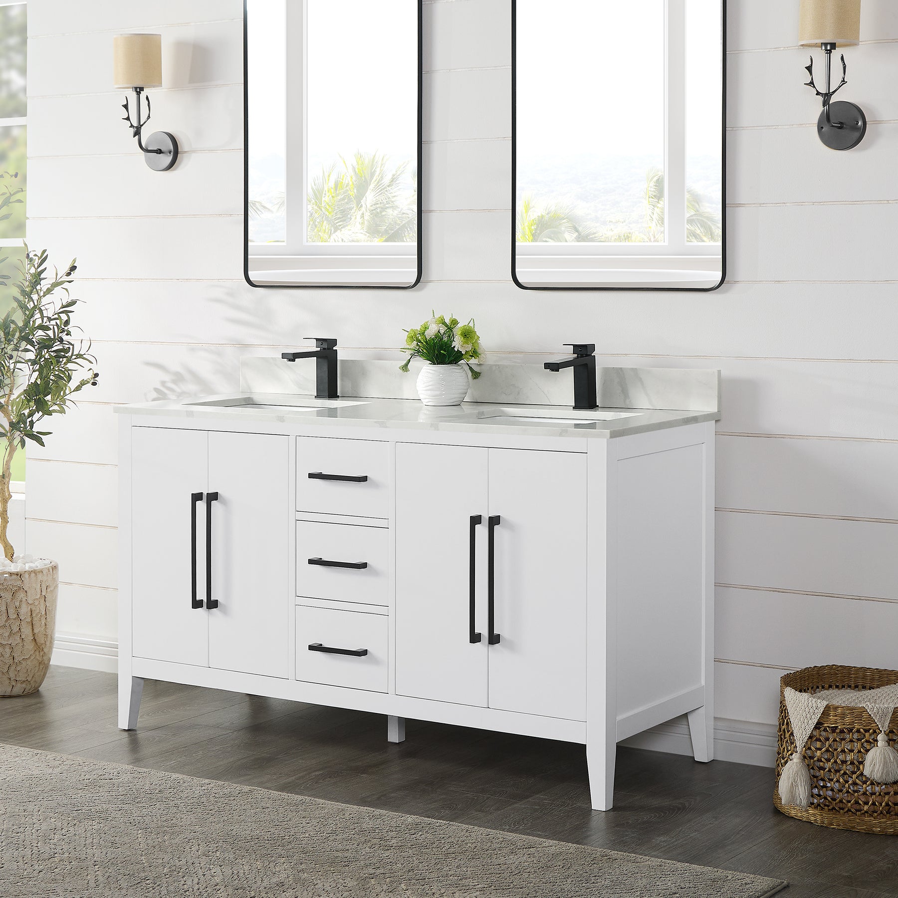 Countertop: Calacatta White Quartz countertop with backsplash is highly resilient, nonporous, and scratch- and stain-resistant to provide long-lasting beauty.