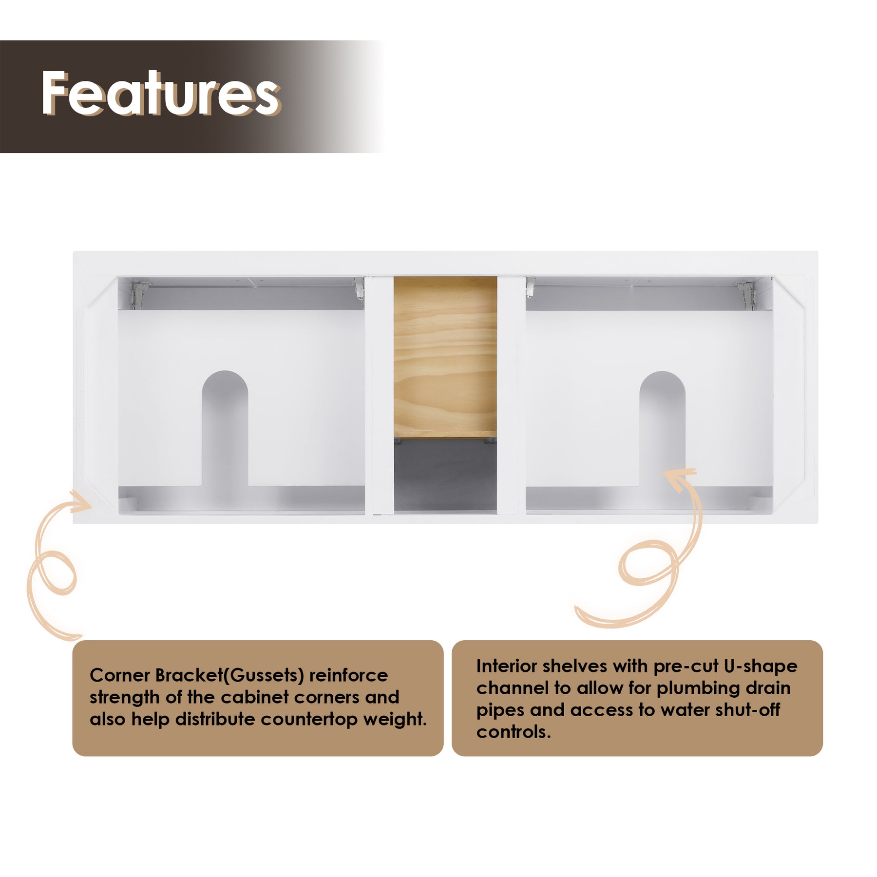 Drawer & Door: 3 soft-closing drawers with dovetail joint and 4 soft-closing doors maximize your bathroom storage space. Flat, ultra-modern cabinet doors accentuate the contemporary design.