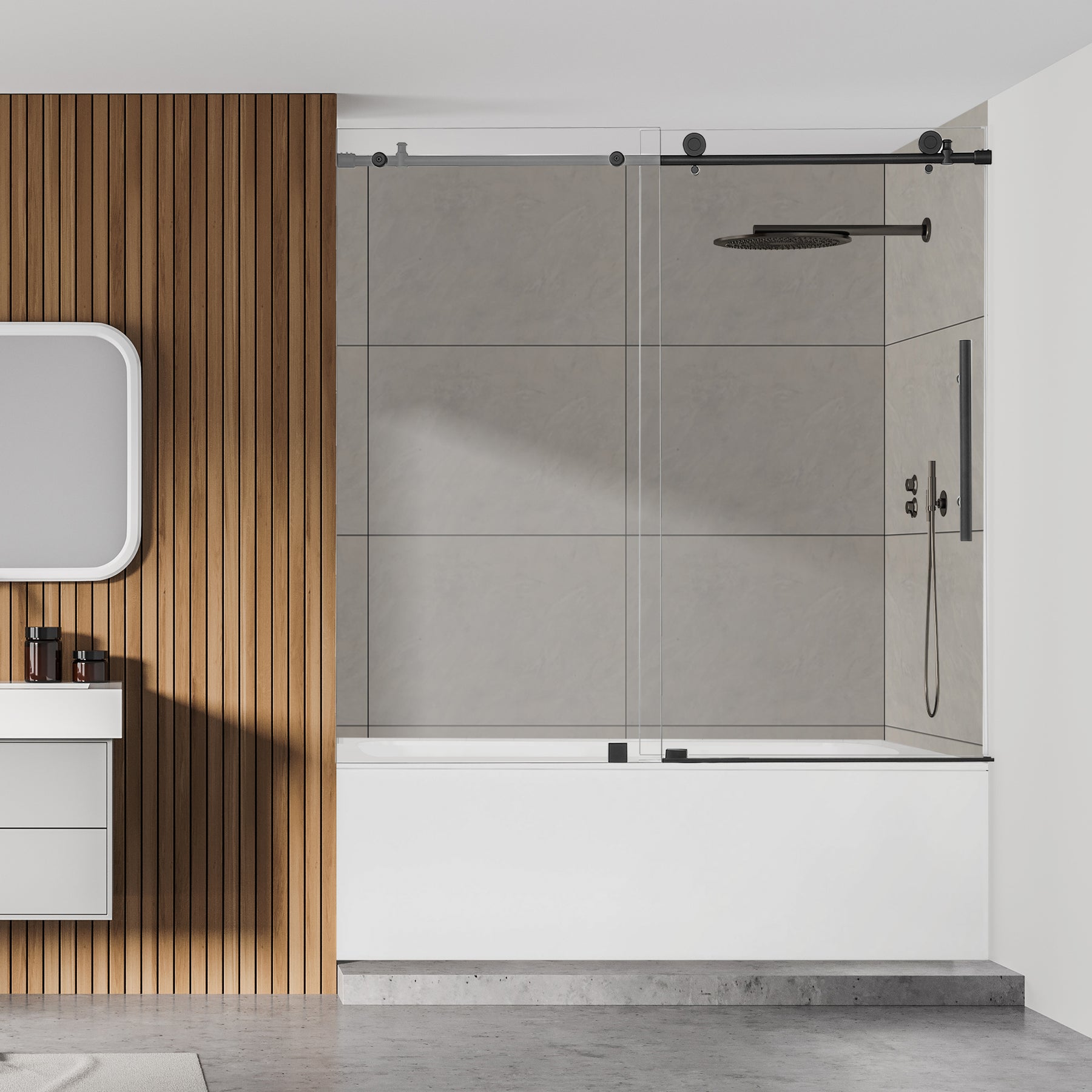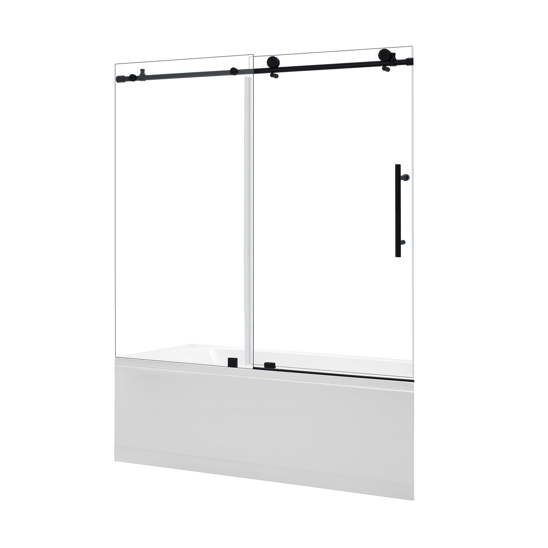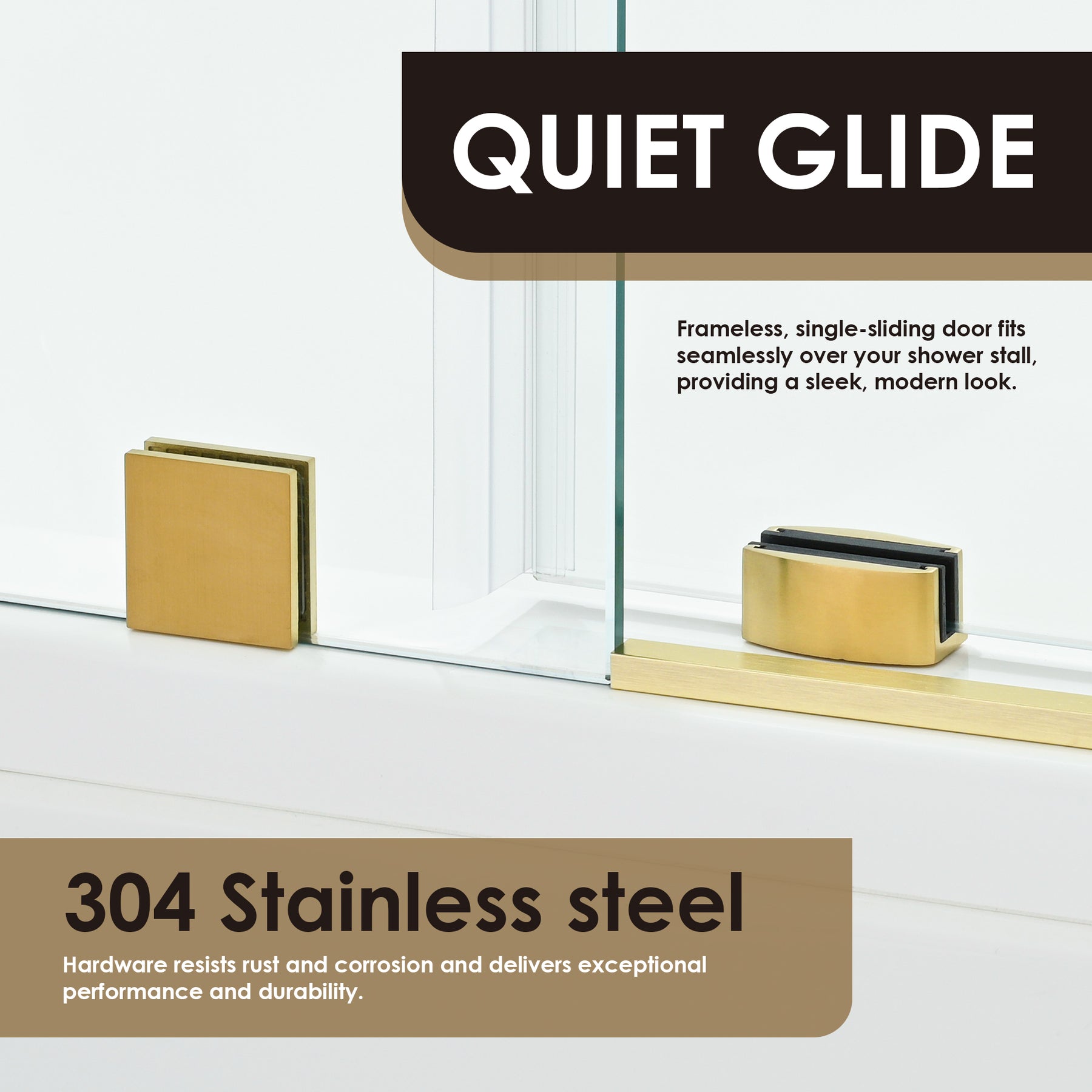 Frameless, single-sliding tub door fits seamlessly over your shower stall, providing a sleek, modern look.