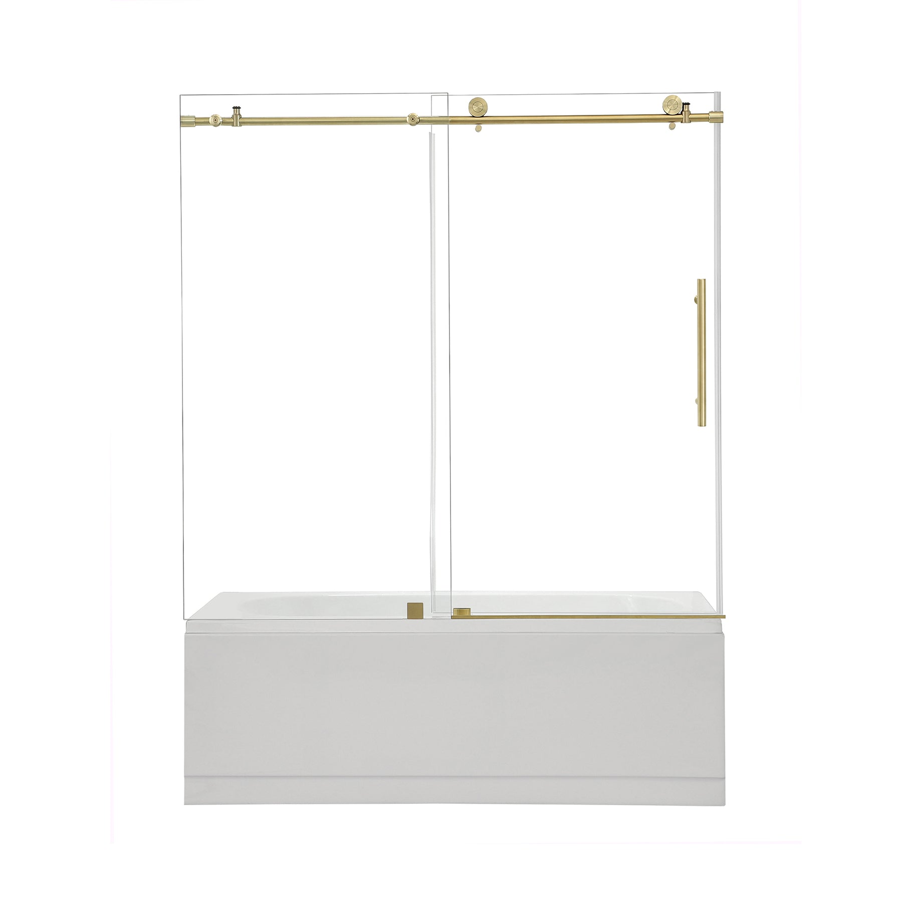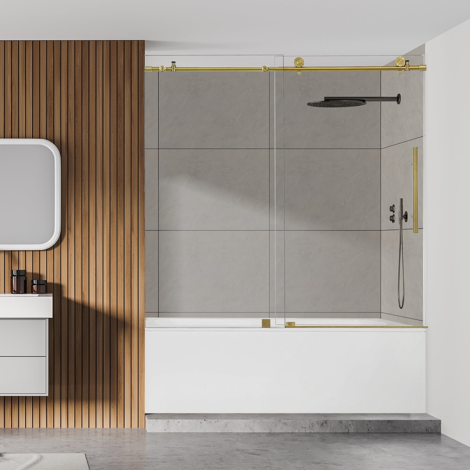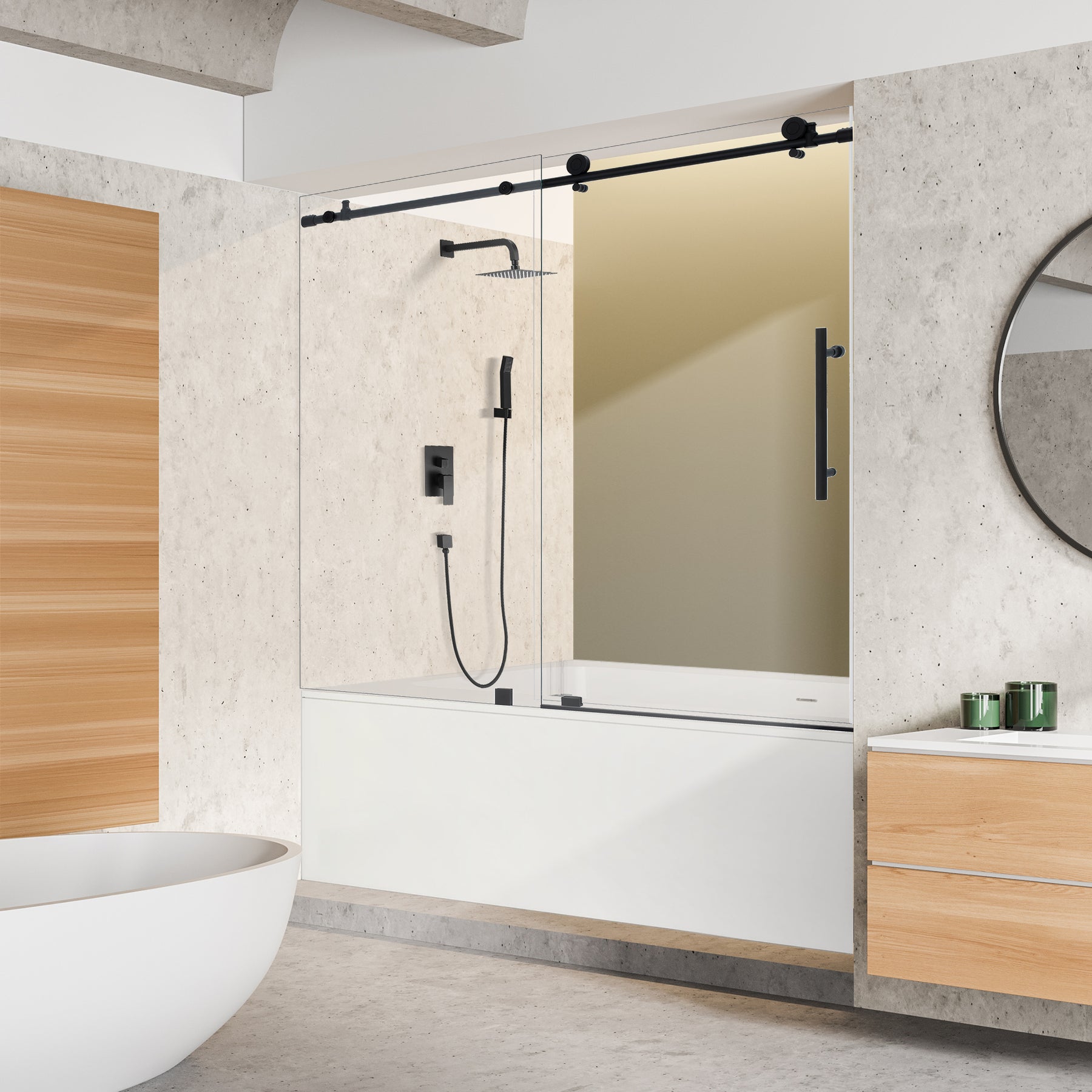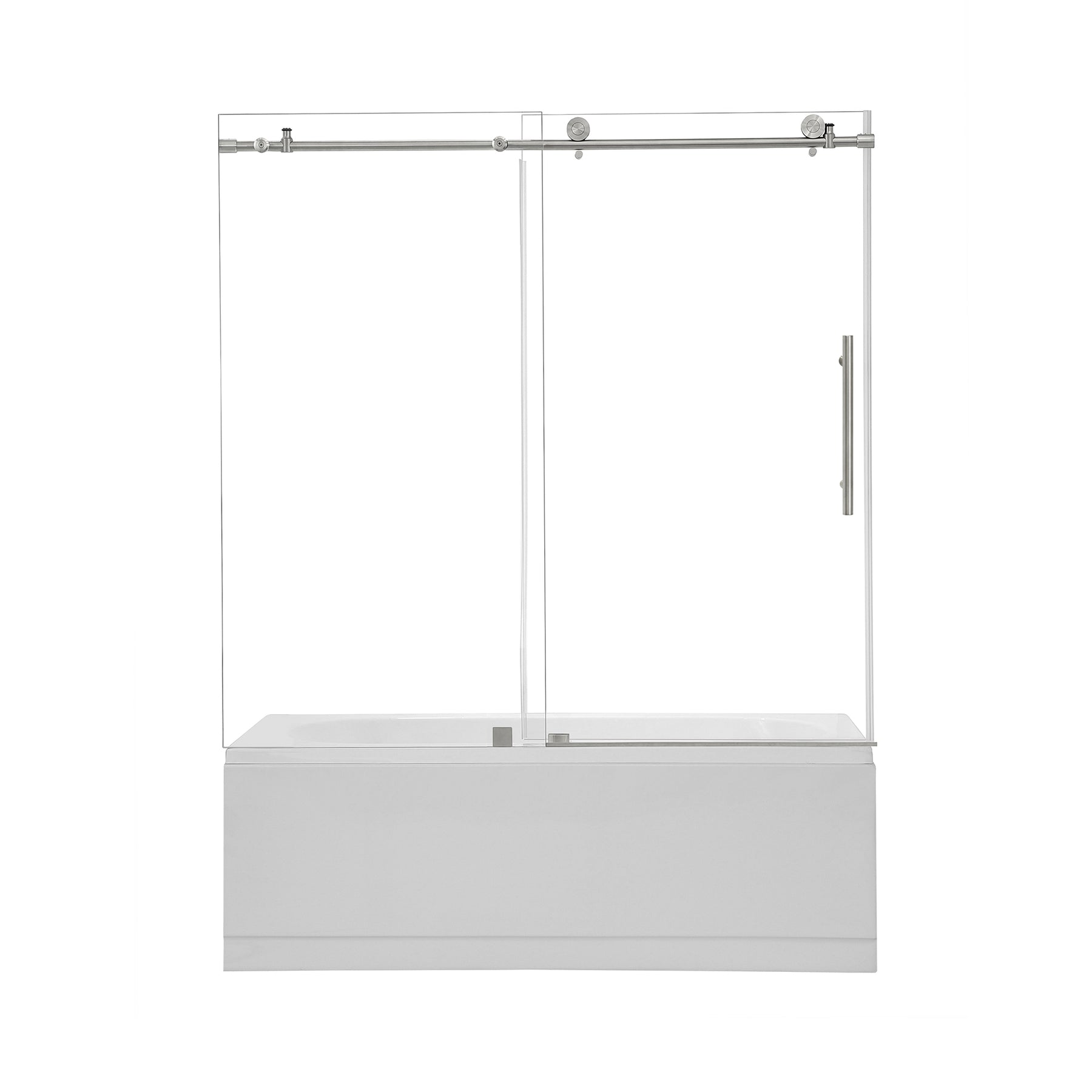 Frameless, single-sliding tub door fits seamlessly over your shower stall, providing a sleek, modern look.