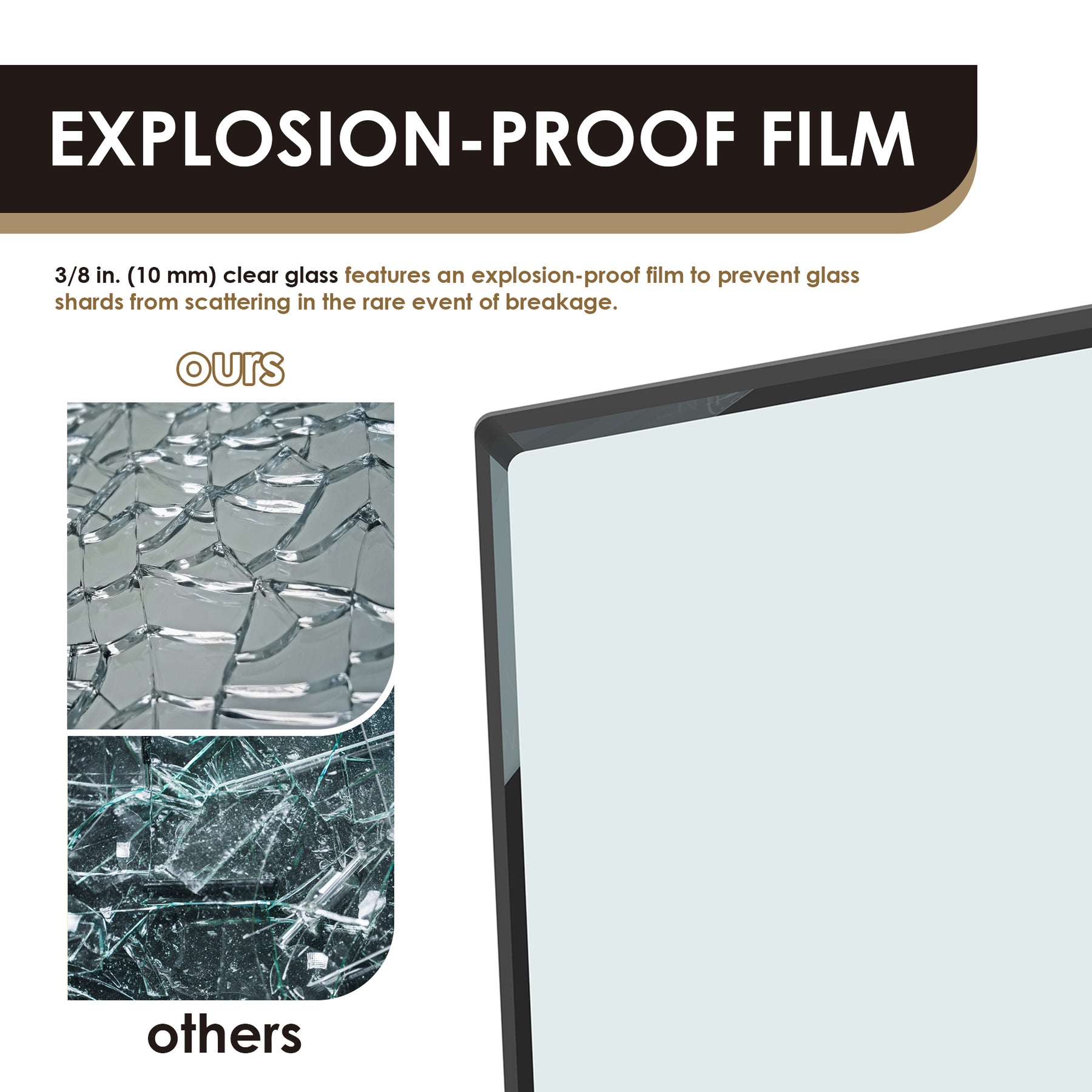 5/16 in. (8 mm) clear glass features an explosion-proof film to prevent glass shards from scattering in the rare event of breakage.