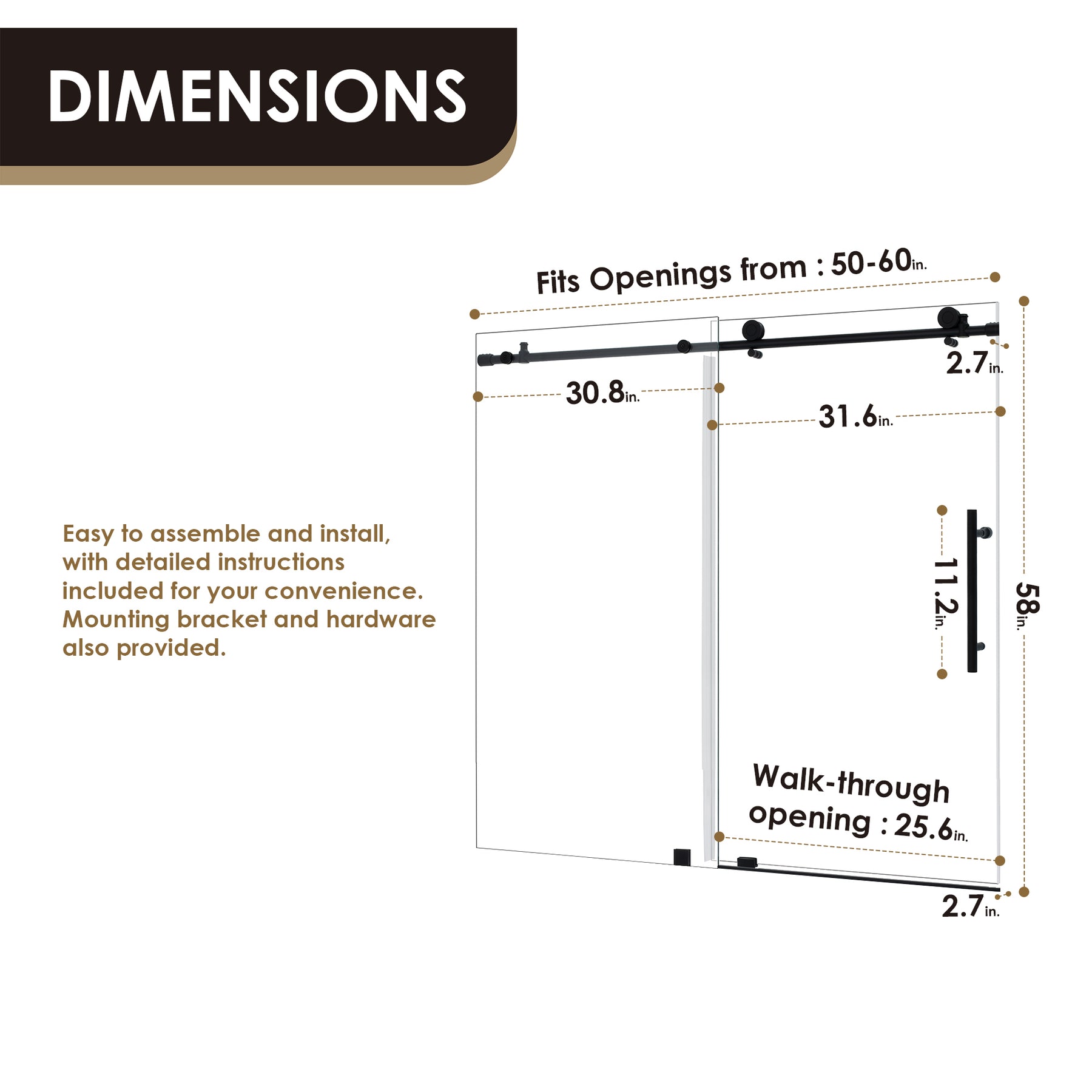 Width can be adjusted 4" to minimum of 56", allowing for easy customization to your shower stall.