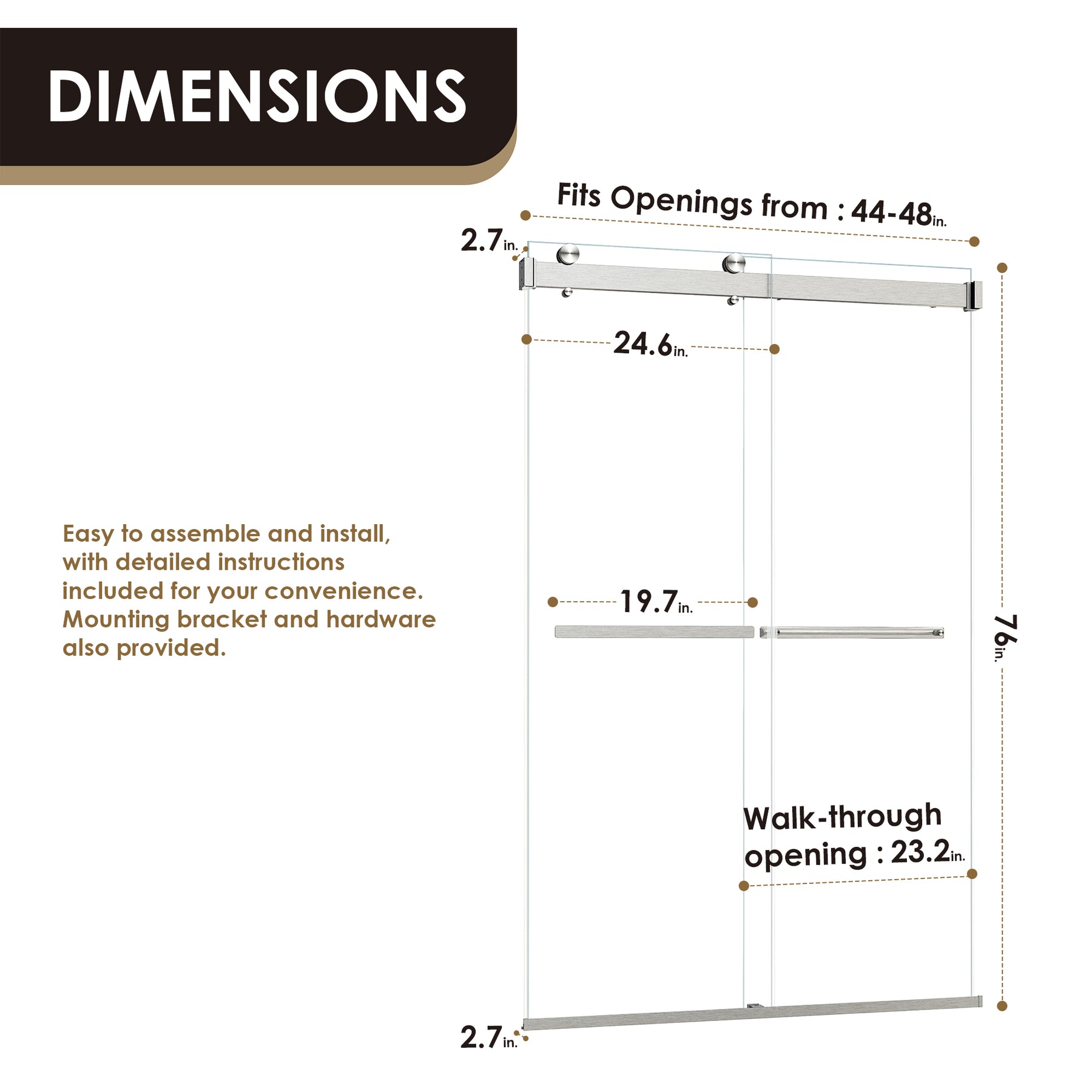 Width can be adjusted 4" to a minimum of 44", allowing for easy customization to your shower stall.