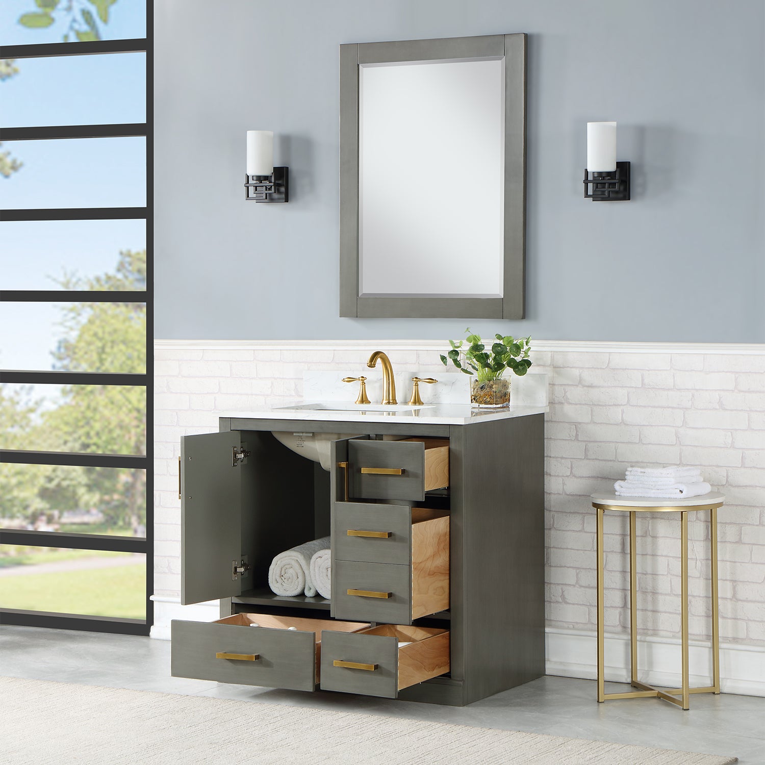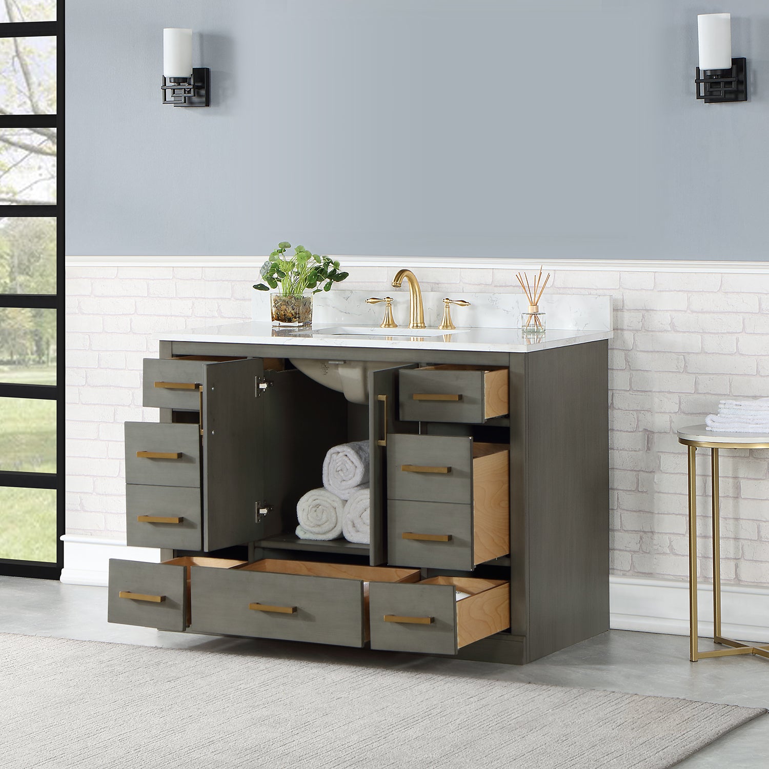 • Countertop: Stylish composite Carrara White or Concrete Grey stone countertop with backsplash