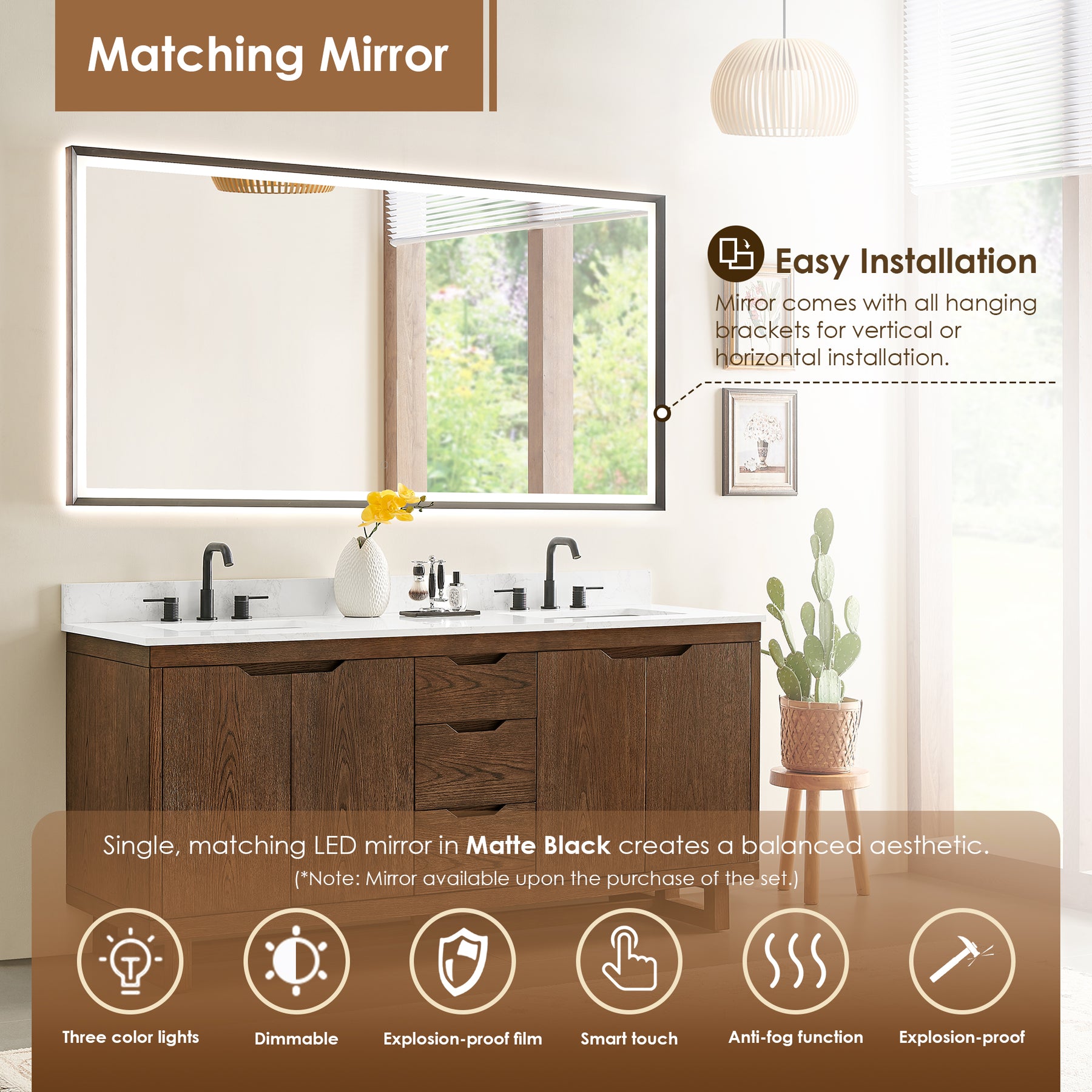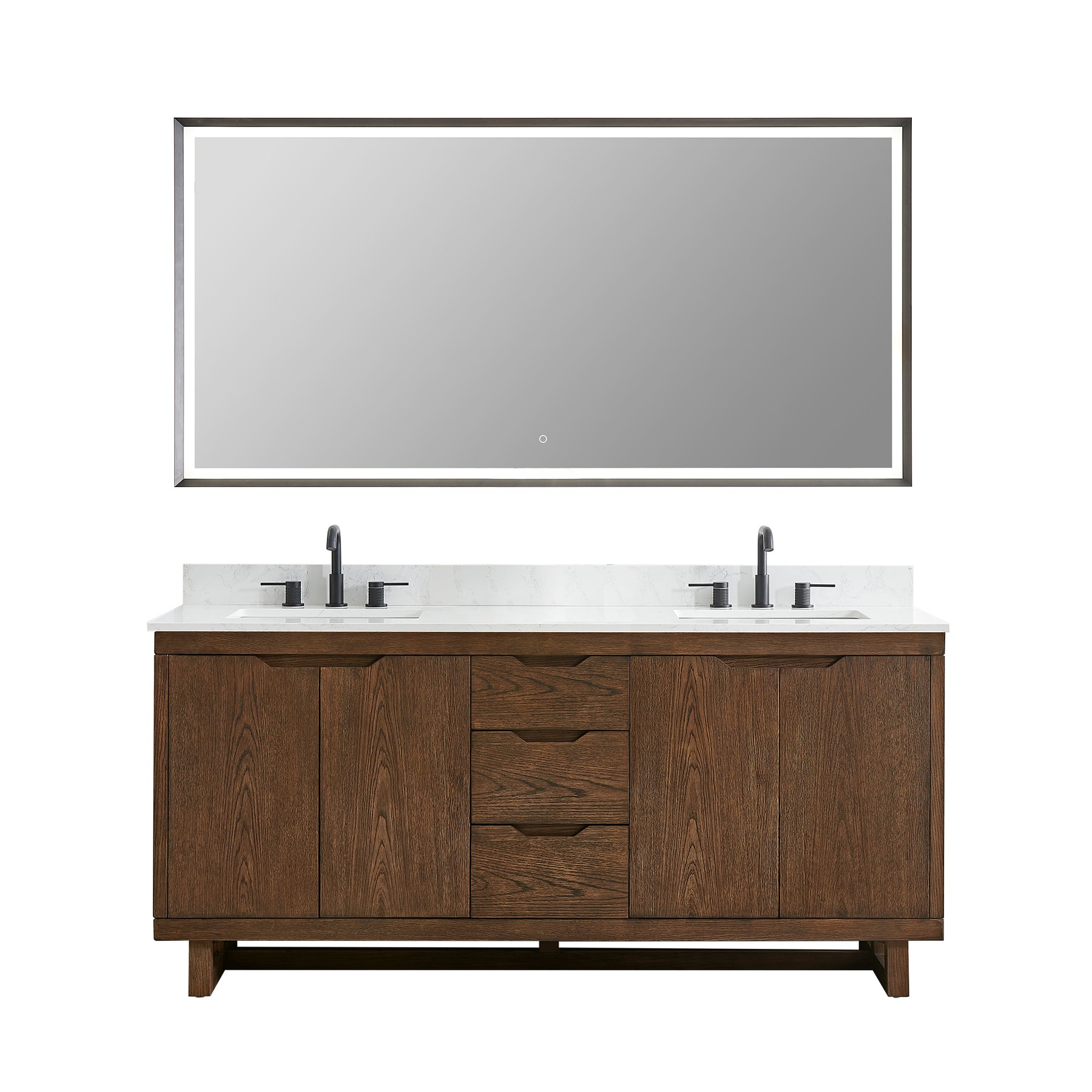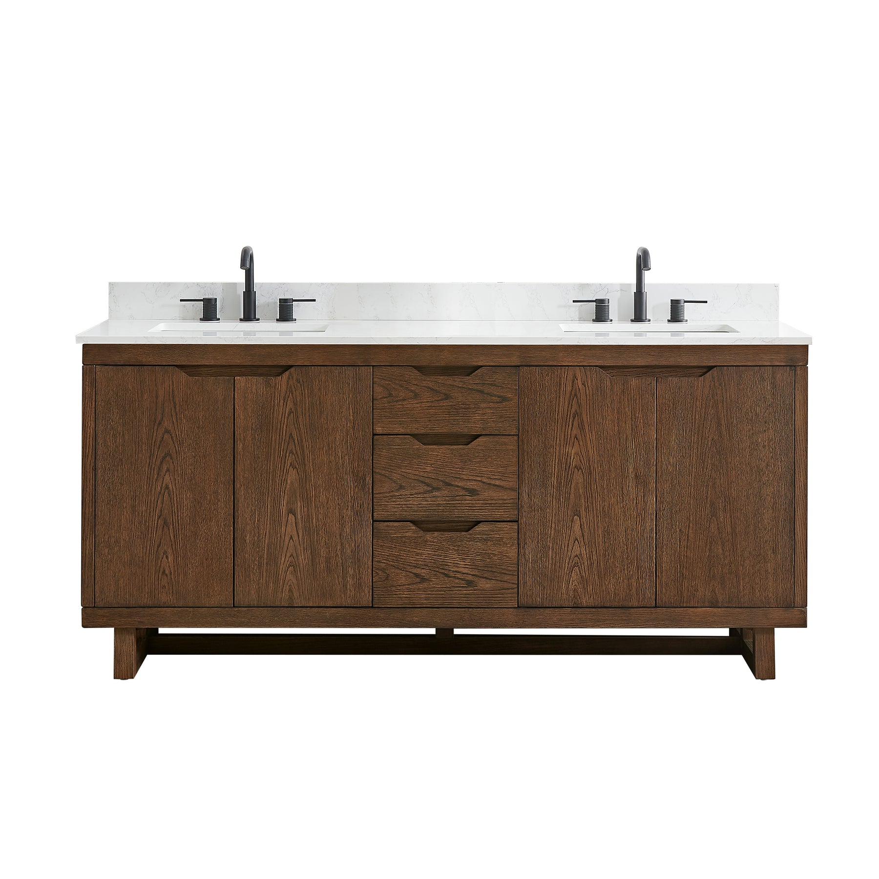 Crafted from rich, poplar wood and plywood, our Mowry bathroom vanity brings warmth and sophistication to your space with its refined, rustic design. Featuring soft-close drawers and doors with integrated finger-pull handles, this vanity is thoughtfully designed for functionality and ease, offering generous storage while maintaining a sleek, uncluttered look. Topped with a crisp white countertop, this vanity perfectly blends modern and earthy elements for a balanced, inviting aesthetic. Built to impress, our vanity offers convenient features like hair dryer stands and removable partitions, along with UL-certified power outlets and USB ports for added safety.