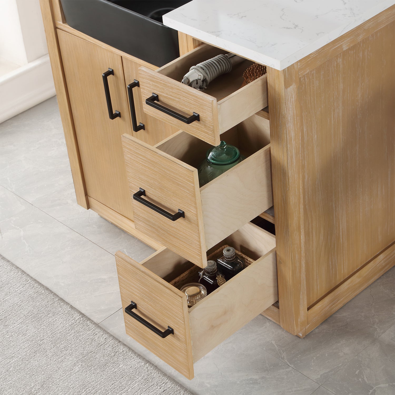 Drawer & Door: 2 doors with adjustable, Euro-style, soft-closing hinges provide a sleek, seamless appearance.3 soft-closing drawers with high-quality, full-extension slides maximize your storage space.